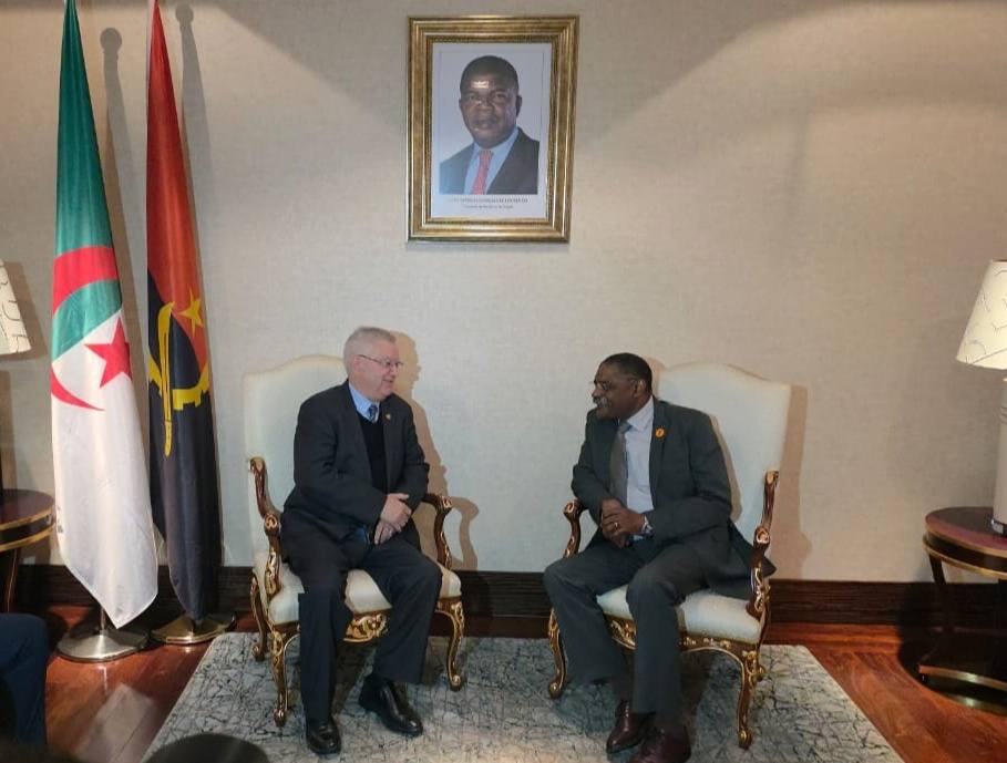 السيد عزوز ناصري، الذي كان مرفوقا بالبروفيسور مخلوف ساحل، رئيس ديوان، رئيس مجلس الأمة ، كان في إستقباله بمطار كواترو فيفيريرو الدولي، كاتب الدولة للتعاون الدولي والجاليات الأنغولية السيد دومينغوس كوستوديو فييرا لوباش، و سعادة السيد منير بوروبة، سفير الجمهورية الجزائرية الديمقراطية الشعبية لدى جمهورية انغولا.