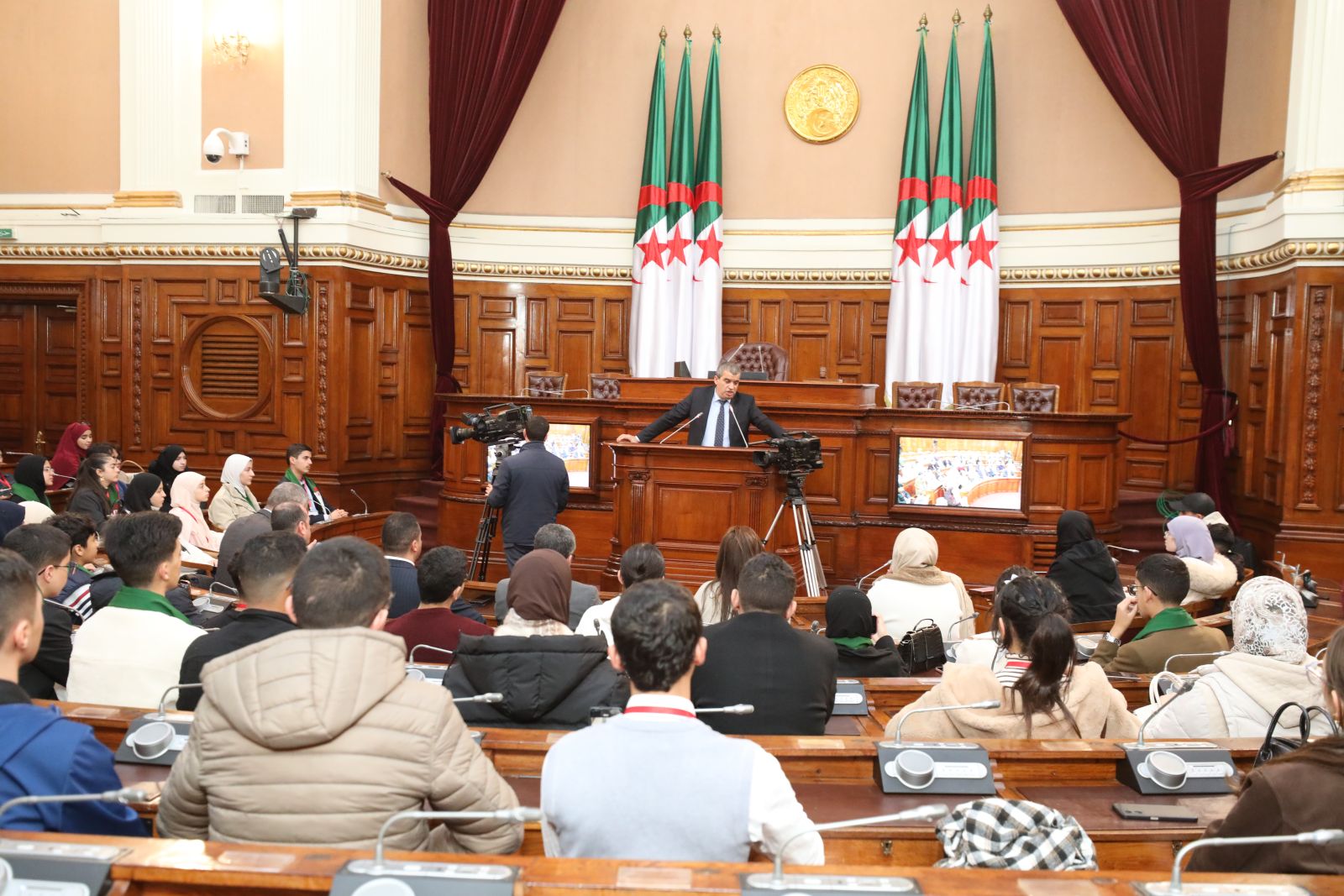 السيد عزوز ناصري ألقى بالمناسبة كلمة شدد فيها على أهمية هذه الهيئة التشريعية التي تعد تجربة فريدة في حياة هؤلاء الشابات و الشبان مبديا اعتزازه بمستوى النضج الذي ابانوا عنه و بدرجة الوعي الذي أظهروه فيما يخص قضايا المجتمع عامة و فئتي الطفولة و الشباب خاصة مصرحا بأن ما لمسه منهم يجعله يصرح بأنه لا خوف على الجزائر، داعيا إياهم بالمناسبة بالتمسك بمبادئ رسالة نوفمبر و الاعتزاز بوطنهم و بأمجاد اجدادهم التي يجب عليهم ان يجعلوا منها نبراسا من اجل مستقبل الجزائر المنتصرة التي يرسي دعائمها السيد عبد المجيد تبون، رئيس الجمهورية.