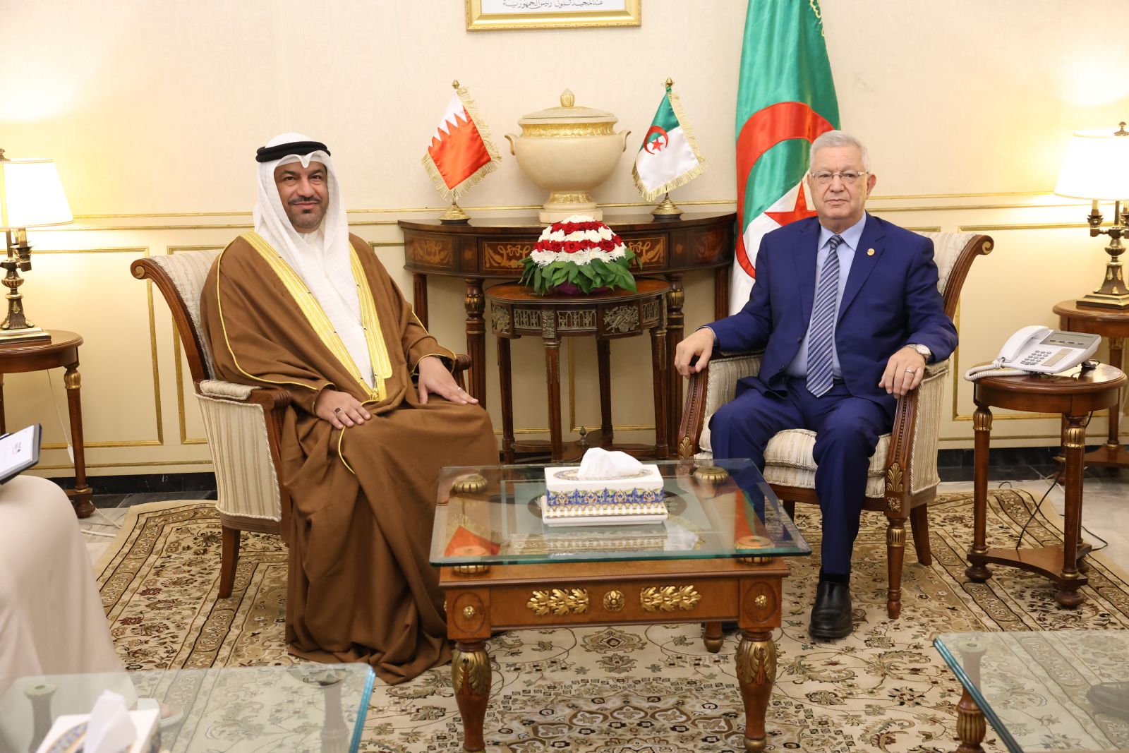 وفي ختام اللقاء، أعرب الجانبان عن تطلعهما إلى ضرورة الارتقاء بالتعاون البرلماني إلى مستوى يليق بعمق العلاقات الأخوية بين الجزائر والبحرين، وتوسيع فضاءات التشاور والتنسيق في مختلف المحافل الإقليمية والدولية، بما يعزز وحدة الصف في الدفاع عن القضايا العربية وفي مقدمتها القضية الفلسطينية. كما شدّدا على أهمية تفعيل دور لجان الصداقة وتكثيف تبادل الزيارات والخبرات، باعتبارها جسورًا متينة لترسيخ التضامن وتعميق الشراكة، خدمةً للمصالح العليا للشعبين الشقيقين وسعيهما نحو مستقبل أكثر تكاملاً وازدهارًا.
