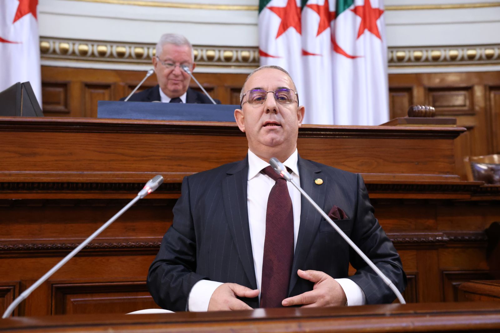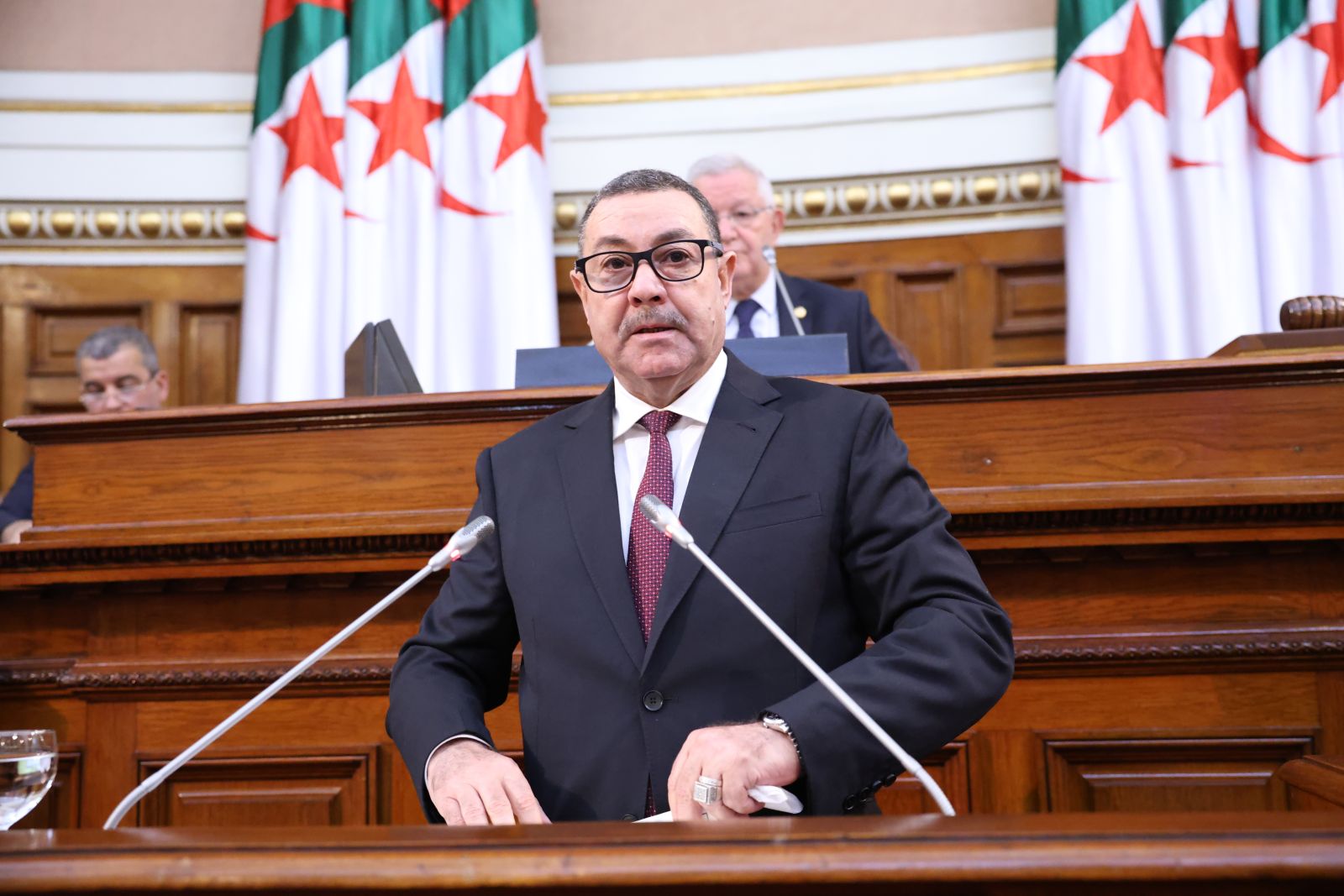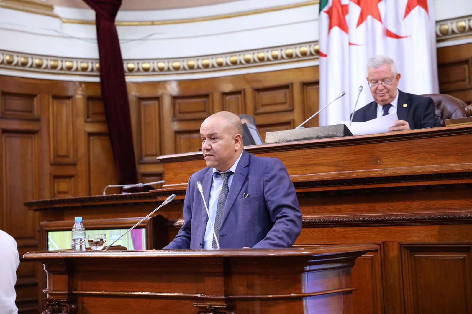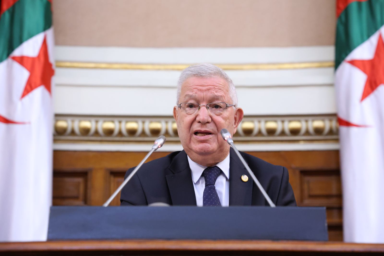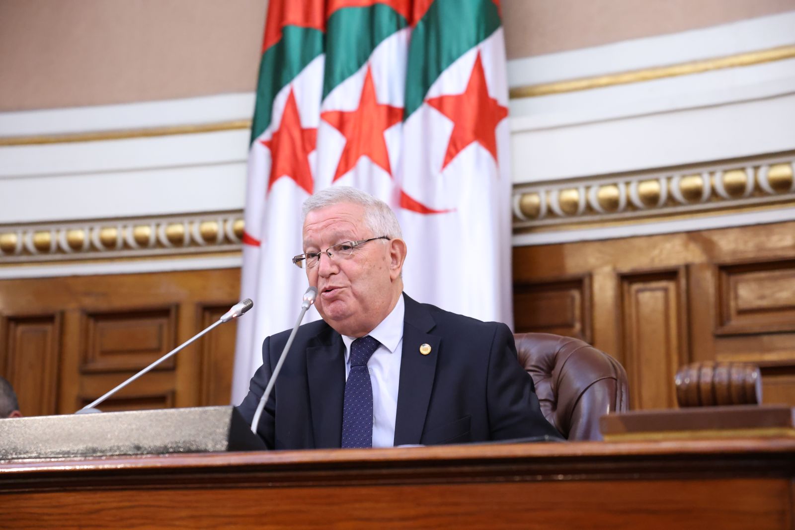 ترأّس السيد عزوز ناصري، رئيس مجلس الأمة، الجلسة العامة التي عقدها المجلس، صبيحة اليوم الخميس 13 نوفمبر 2025، والتي خُصصت لتوجيه خمسة عشر (15) سؤالاً شفوياً إلى خمسة (5) أعضاء في الحكومة، تخصّ قطاعات: الداخلية والجماعات المحلية والنقل، الصحة، المجاهدين وذوي الحقوق، الصناعة، والسياحة والصناعة التقليدية، وذلك بحضور وزراء القطاعات المعنية ممثلين في السيدة والسّادة، السعيد سعيود، وزير الداخلية والجماعات المحلية والنقل، محمد الصديق آيت مسعودان، وزير الصحة، عبد المالك تاشريفت، وزير المجاهدين وذوي الحقوق، يحيى بشير، وزير الصناعة، حورية مداحي، وزيرة السياحة والصناعة التقليدية، وكذا السيدة نجيبة جيلالي، وزيرة العلاقات مع البرلمان؛ وقد جاءت الأسئلة الموجّهة من السيدة والسادة أعضاء المجلس، على النحو التالي: