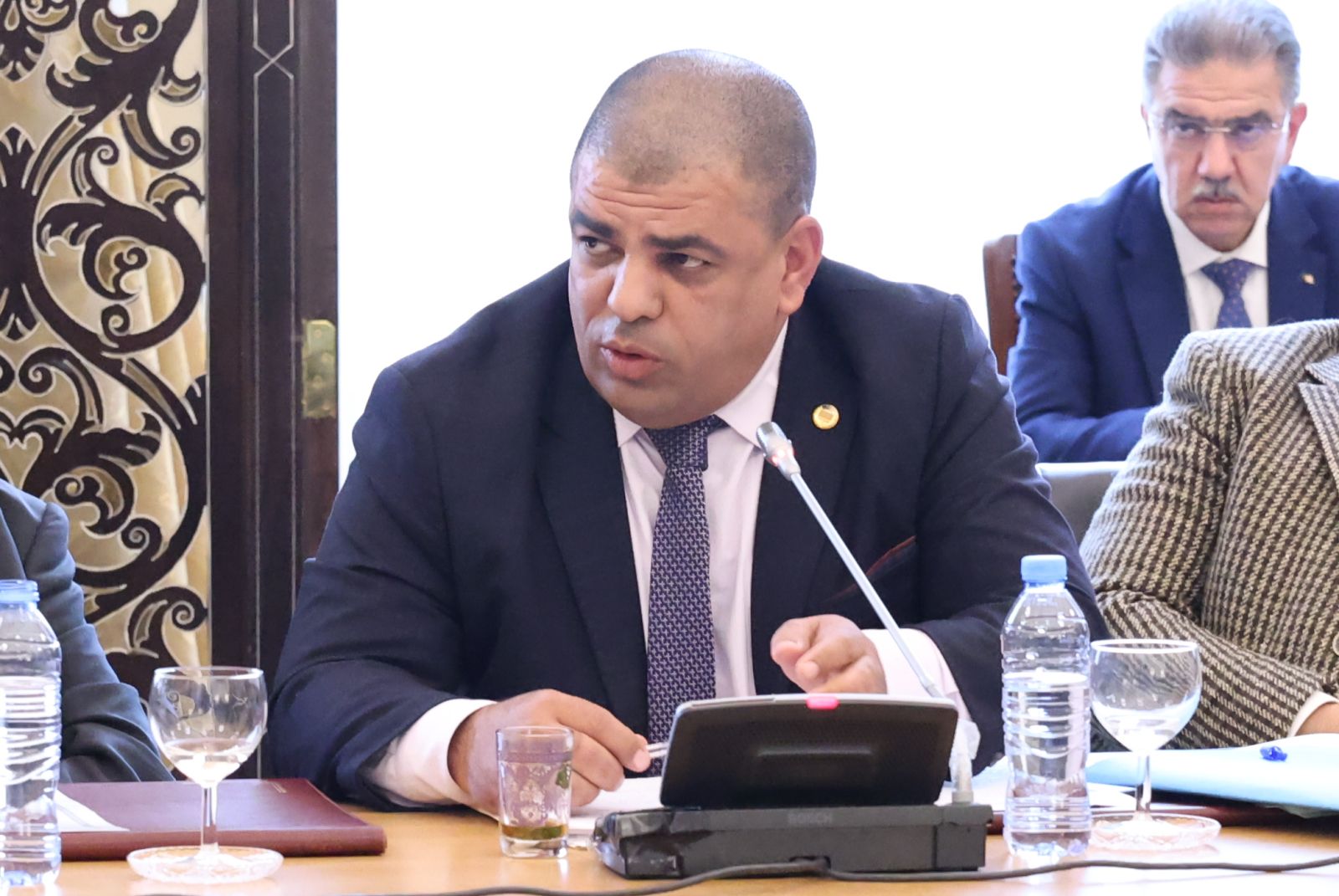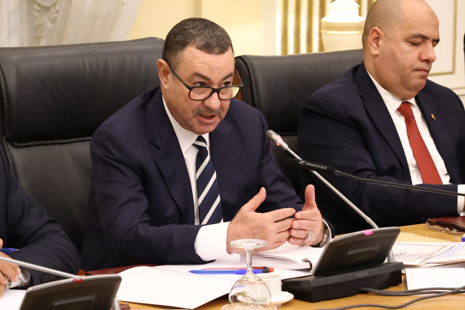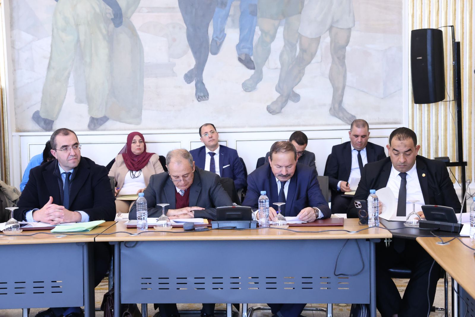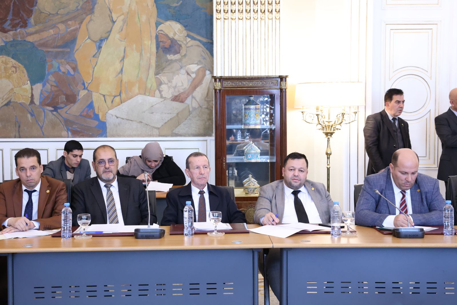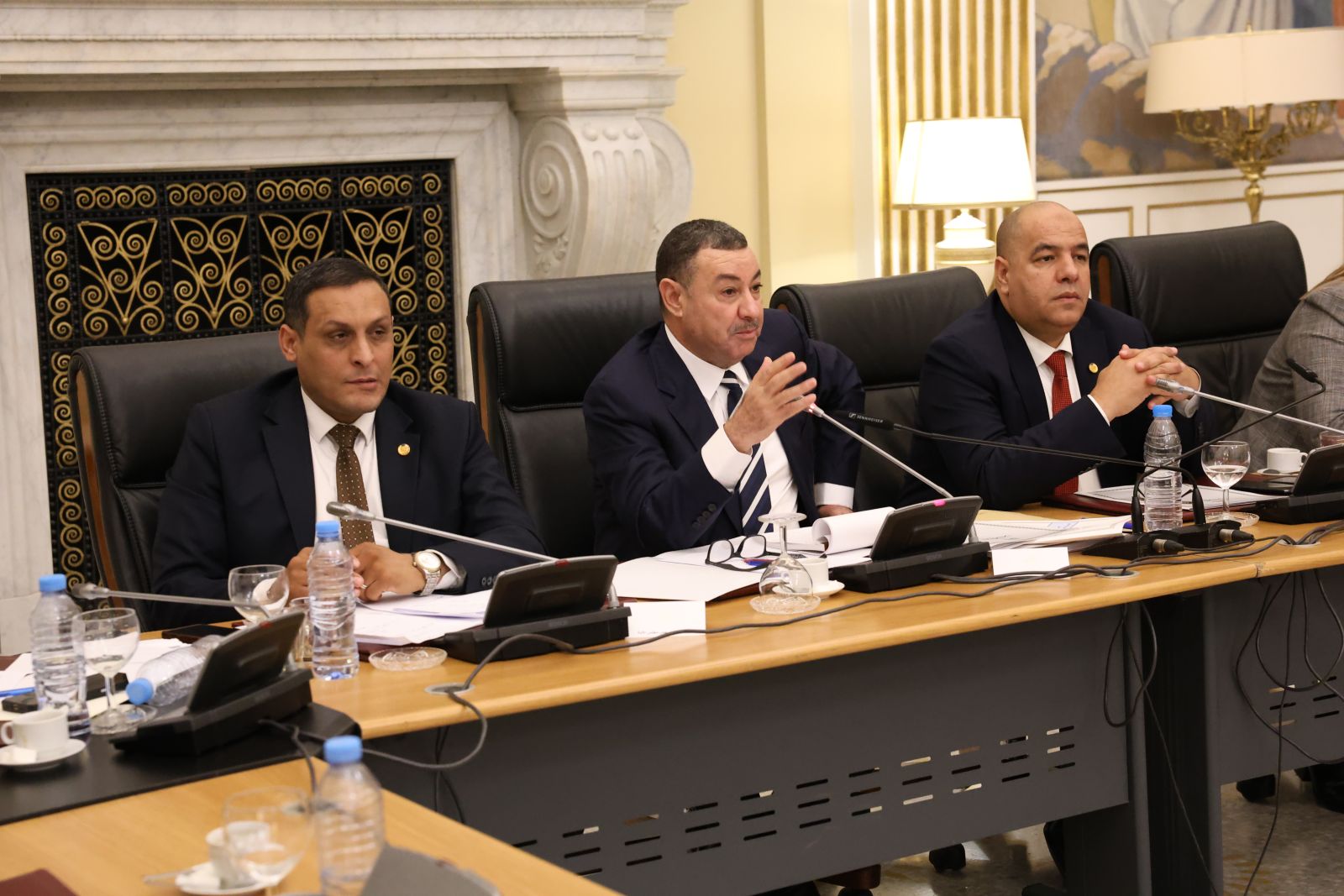 عقدت لجنة الشؤون القانونية والإدارية وحقوق الإنسان والتنظيم المحلي وتهيئة الإقليم والتقسيم الإقليمي لمجلس الأمة، أمسية اليوم الخميس 04 ديسمبر 2025، اجتماعًا برئاسة السيد محمد رباح، رئيس اللجنة، وحضور السيد مراد لكحل، نائب رئيس مجلس الأمة، المكلف بشؤون التشريع والعلاقات مع الحكومة والمجلس الشعبي الوطني؛ بالقاعة الشرفية الكبرى "الشهيد مصطفى بن بولعيد"، بمقر المجلس، خصصته للاستماع إلى ممثل الحكومة، السيد السعيد سعيود، وزير الداخلية والجماعات المحلية والنقل، وذلك في إطار دراستها لمشروع القانون الذي يعدل ويتمم القانون رقم 84-09 المؤرخ في 02 جمادى الأولى عام 1404 الموافق 4 فبراير سنة 1984 والمتعلق بالتنظيم الإقليمي للبلاد، الجلسة حضرتها السيدة نجيبة جيلالي، وزيرة العلاقات مع البرلمان.