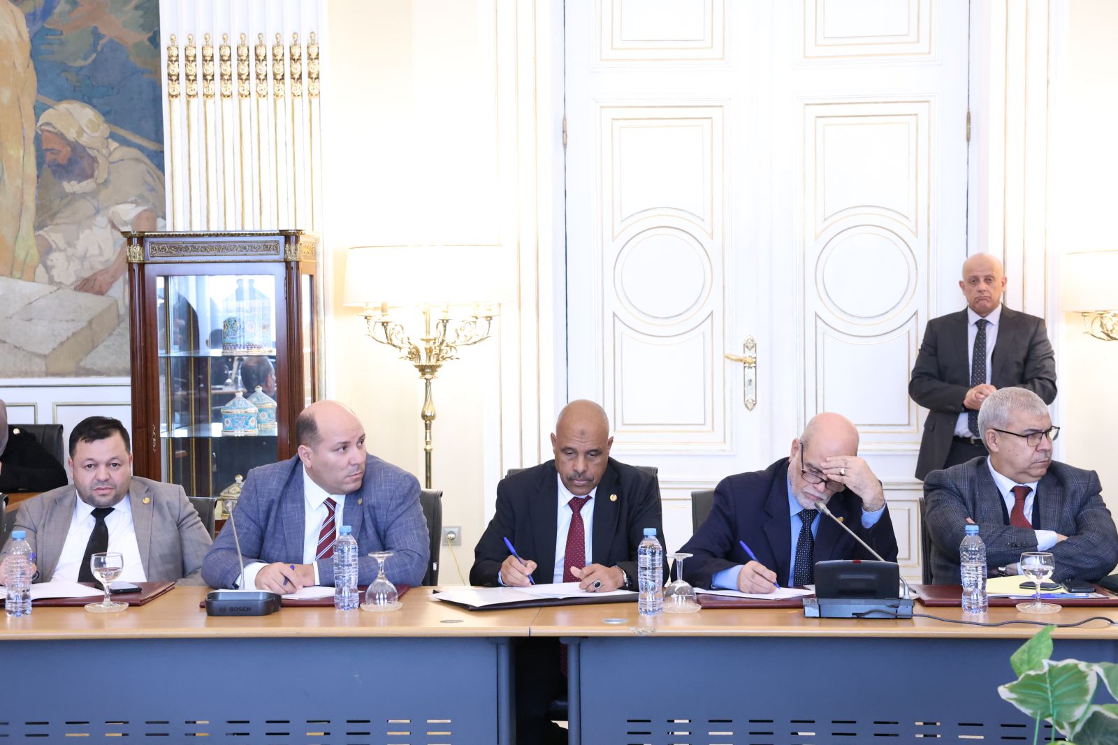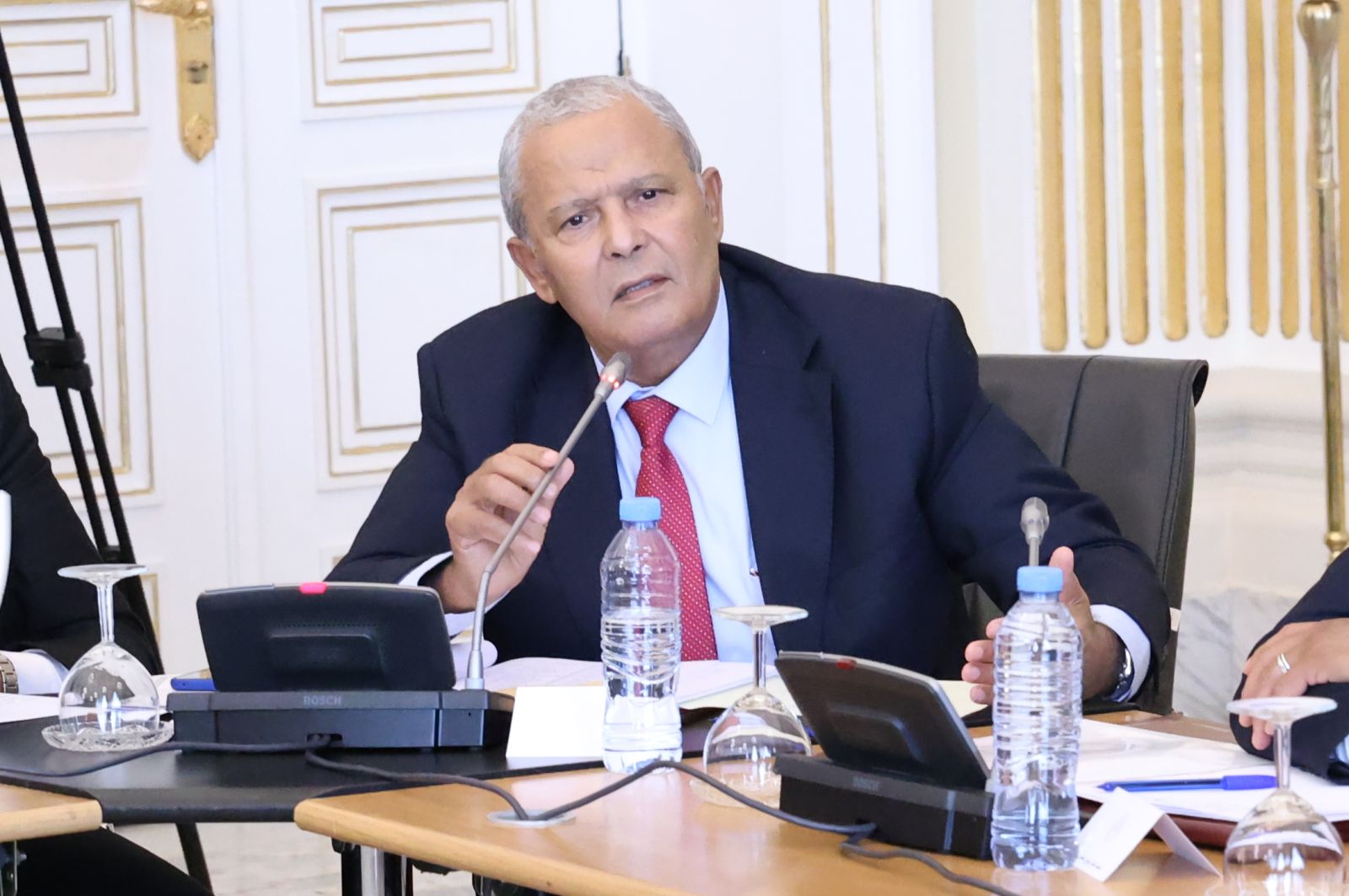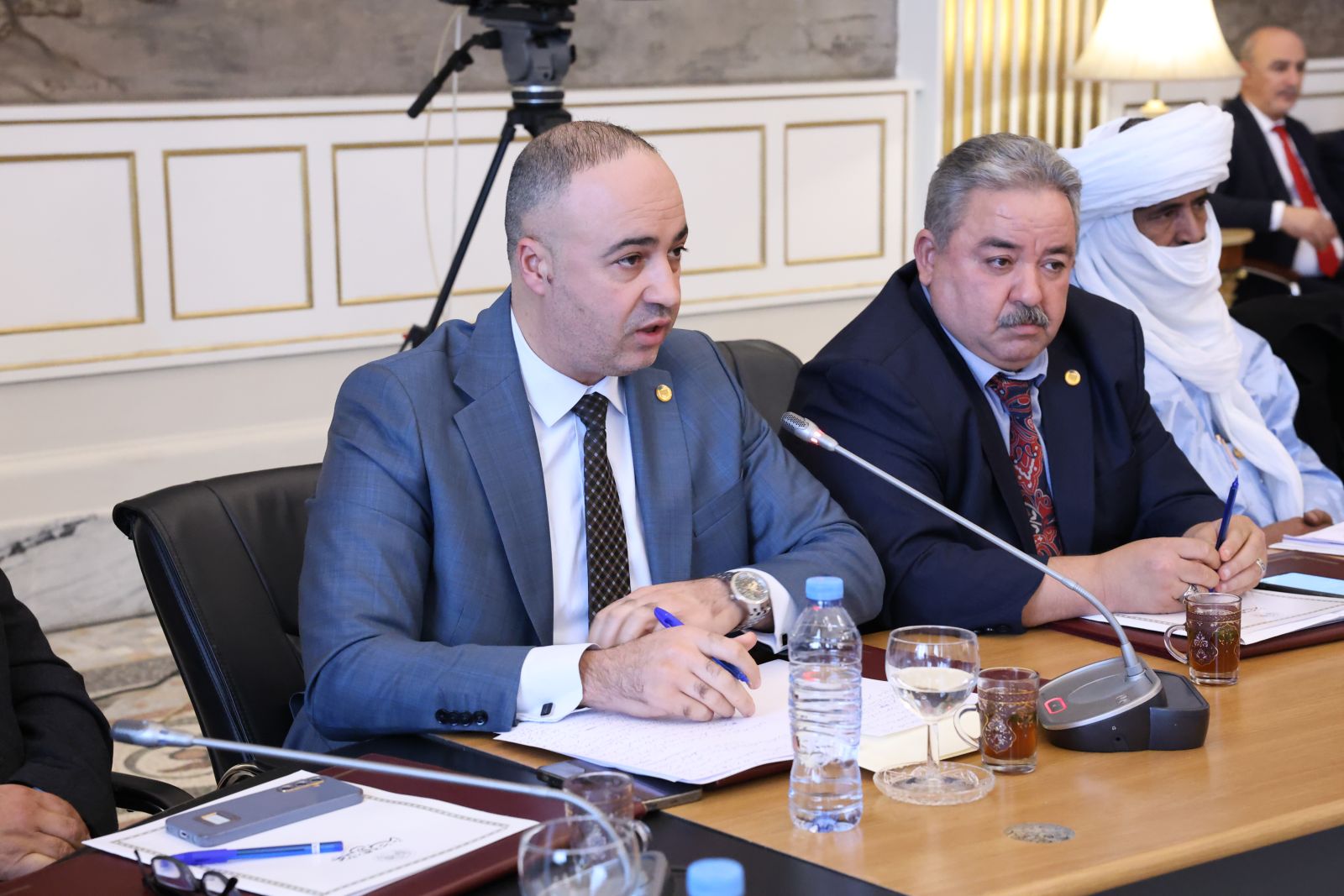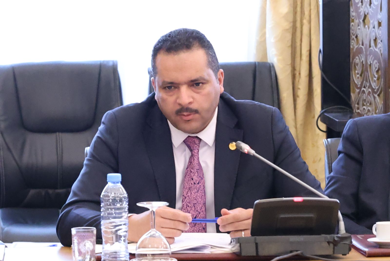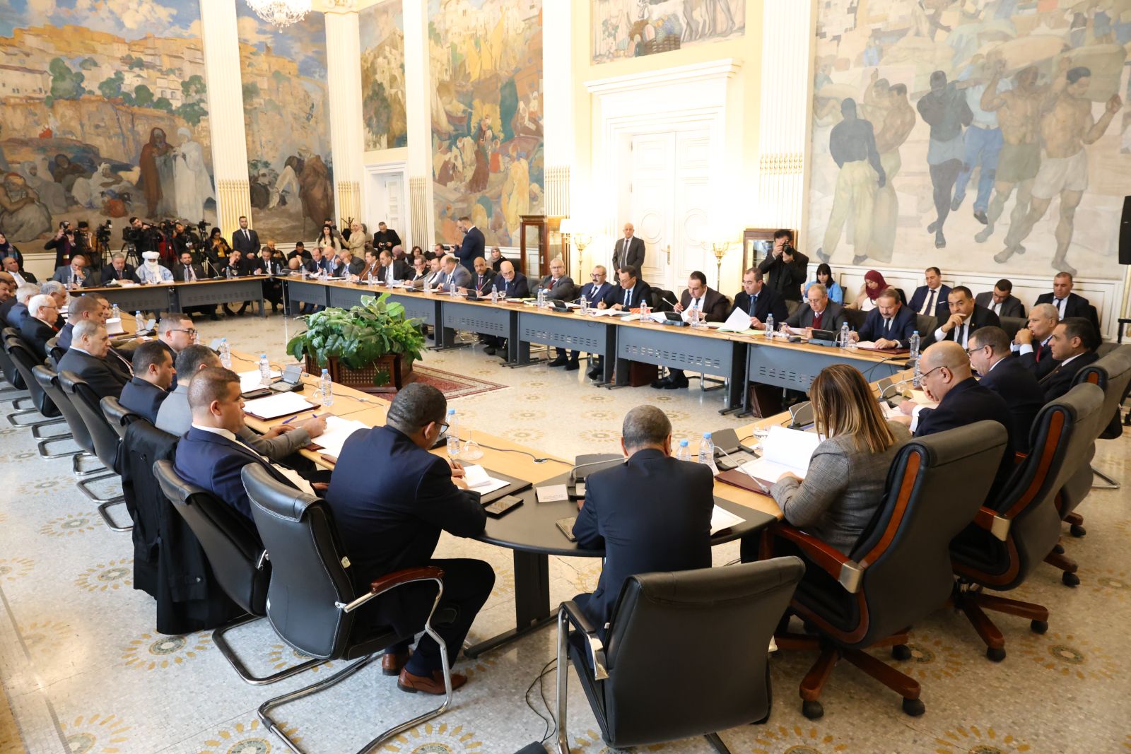 عقدت لجنة الشؤون القانونية والإدارية وحقوق الإنسان والتنظيم المحلي وتهيئة الإقليم والتقسيم الإقليمي لمجلس الأمة، أمسية اليوم الخميس 04 ديسمبر 2025، اجتماعًا برئاسة السيد محمد رباح، رئيس اللجنة، وحضور السيد مراد لكحل، نائب رئيس مجلس الأمة، المكلف بشؤون التشريع والعلاقات مع الحكومة والمجلس الشعبي الوطني؛ بالقاعة الشرفية الكبرى "الشهيد مصطفى بن بولعيد"، بمقر المجلس، خصصته للاستماع إلى ممثل الحكومة، السيد السعيد سعيود، وزير الداخلية والجماعات المحلية والنقل، وذلك في إطار دراستها لمشروع القانون الذي يعدل ويتمم القانون رقم 84-09 المؤرخ في 02 جمادى الأولى عام 1404 الموافق 4 فبراير سنة 1984 والمتعلق بالتنظيم الإقليمي للبلاد، الجلسة حضرتها السيدة نجيبة جيلالي، وزيرة العلاقات مع البرلمان.