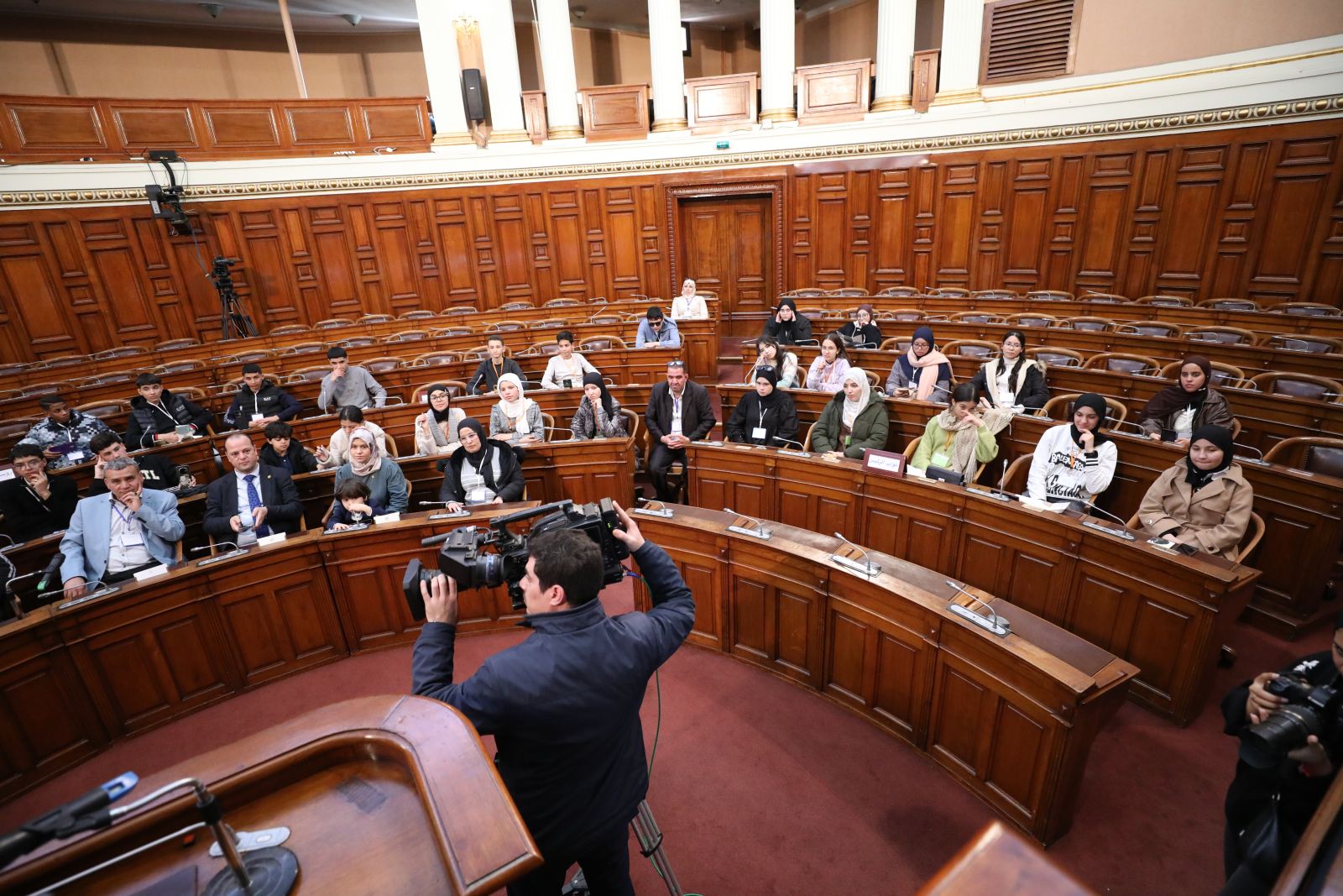 مجموعة من تلاميذ متوسطة الشهيد عباس عبد الكريم، وثانوية قروف محمد بن بلقاسم ولاية بسكرة، في زيارة إلى مقر مجلس الأمة