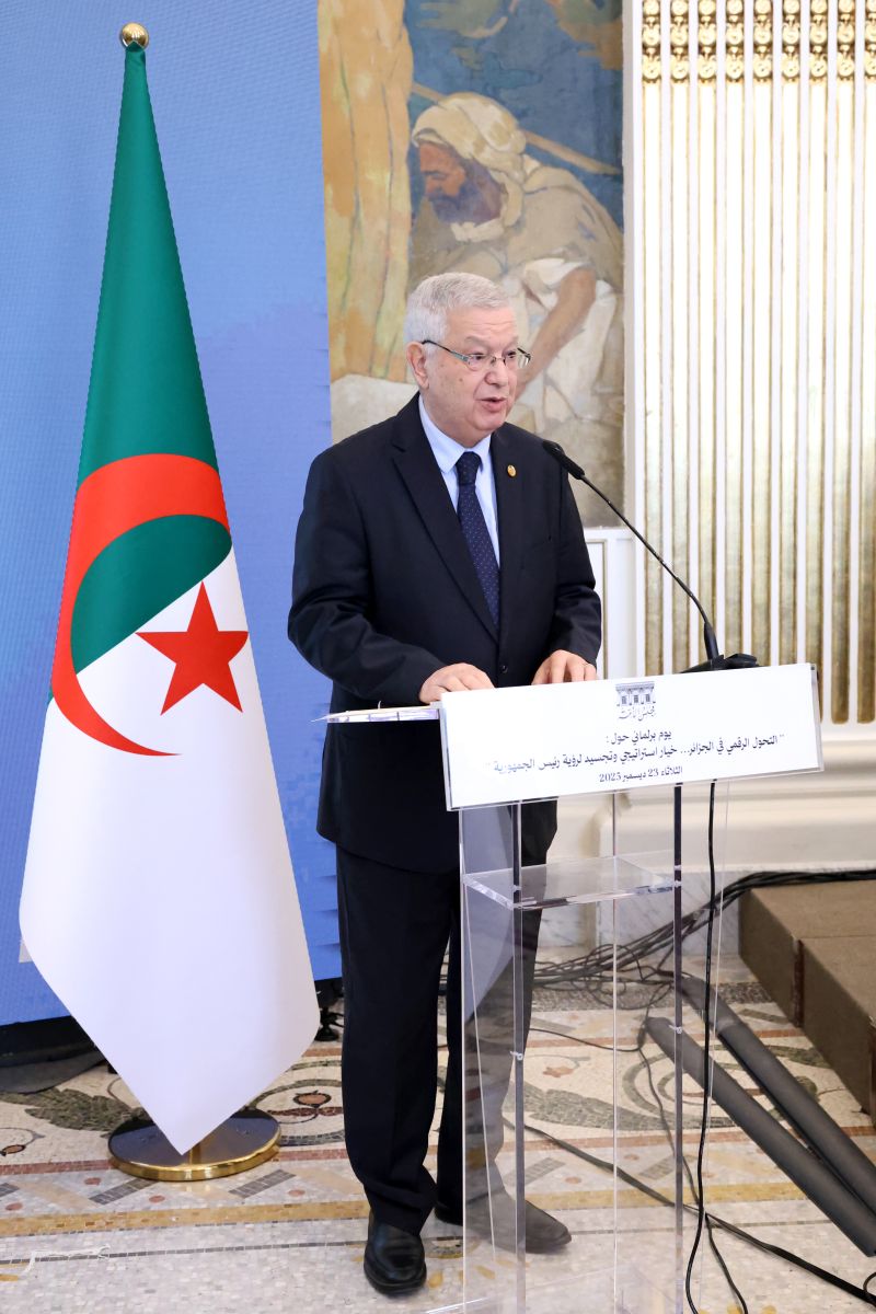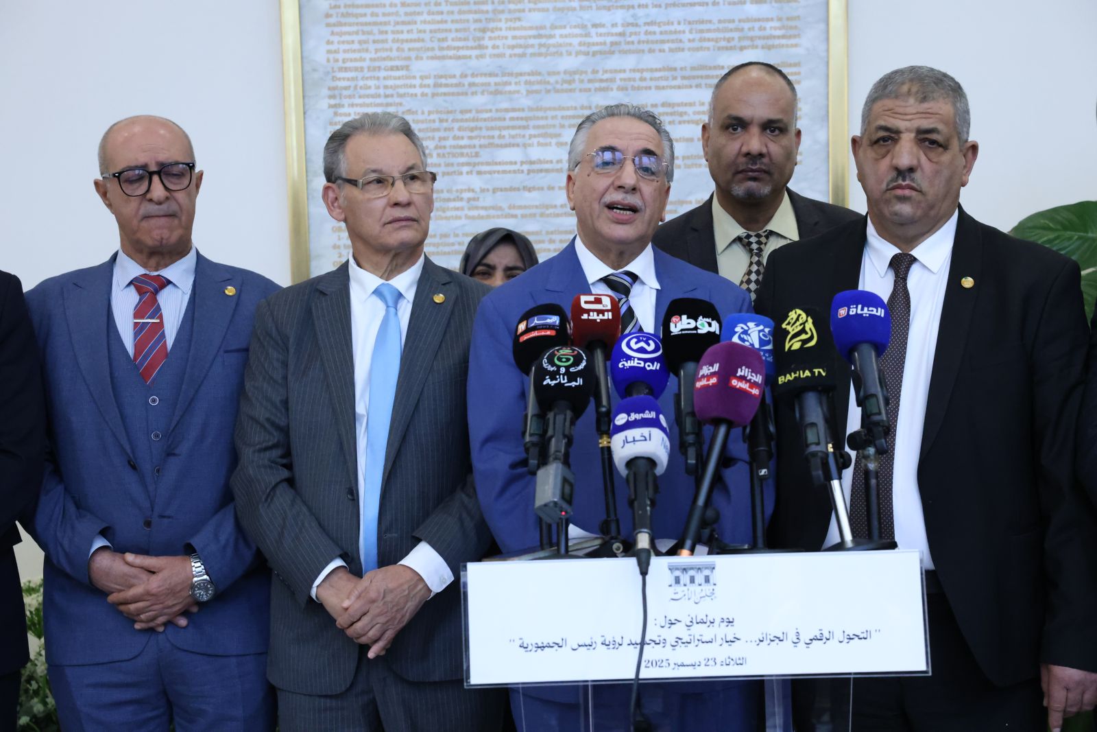 في إطار تجسيد التوجهات الاستراتيجية للدولة الجزائرية الرامية إلى تعزيز التحول الرقمي، وتحت اشراف السيد عزوز ناصري رئيس مجلس الأمة، و باقتراح من المجموعة البرلمانية للثلث الرئاسي ، نظم مجلس الأمة، اليوم 23 ديسمبر 2025، يوماً برلمانيا موسوماً بـ "التحول الرقمي في الجزائر :خيار استراتيجي وتجسيد لرؤية رئيس الجمهورية "، بحضور كل من، السيد إبراهيم بوغالي ، رئيس المجلس الشعبي الوطني، السيدة ليلى عسلاوي، رئيسة المحكمة الدستورية ،السيد مصطفى صايج ، مستشار السيد رئيس الجمهورية مكلف بالشؤون السياسية والعلاقات مع الشباب والمجتمع المدني والأحزاب ،السيد عبد النور رابحي ، الوزير، والي ولاية الجزائر، السيدة سليمة مسراتي، رئيسة السلطة العليا للشفافية والوقاية من الفساد ومكافحته.