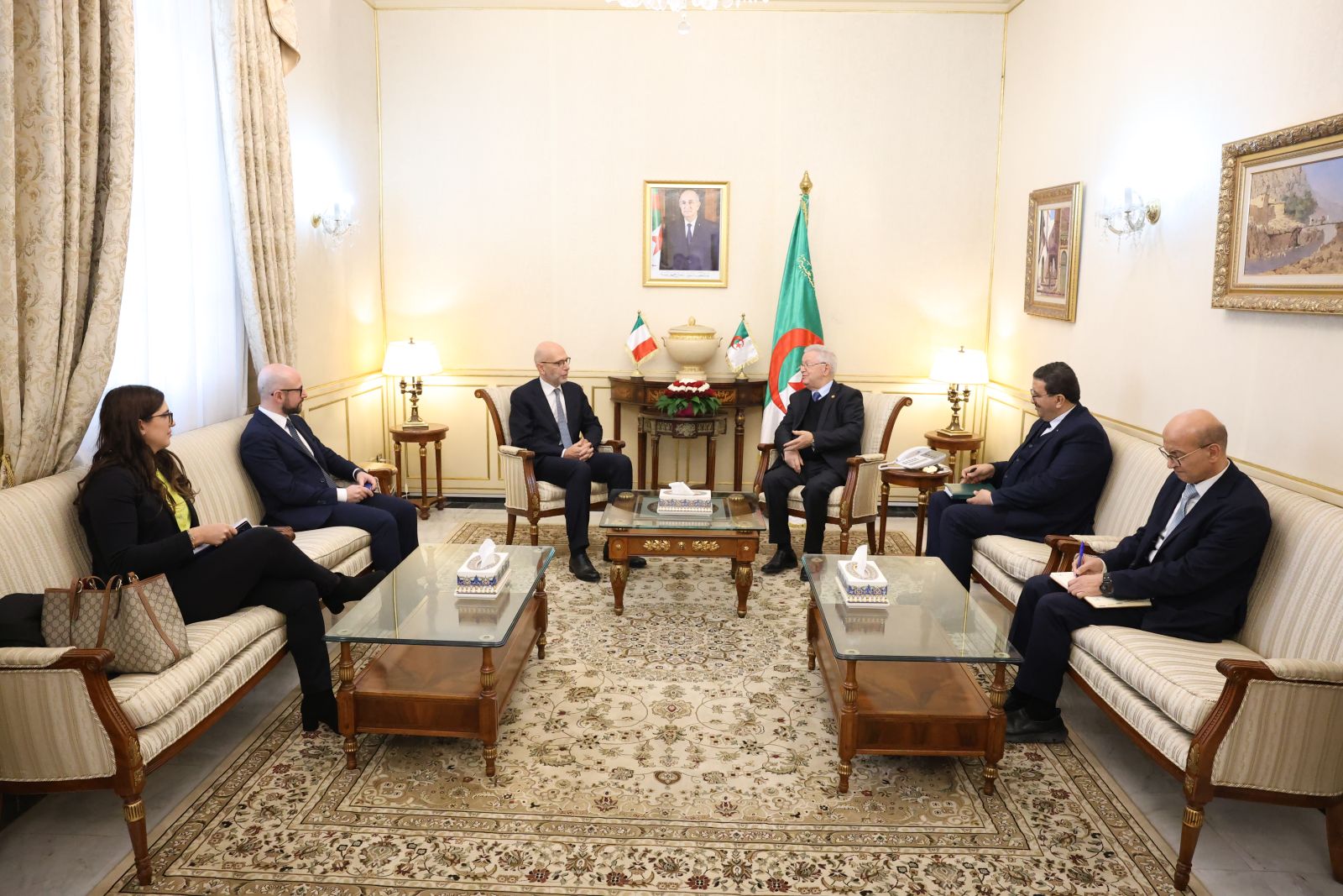في خاتمة اللقاء، أكد الجانبان على ضرورة مواصلة ترقية الحوار والتشاور المنتظم على مختلف المستويات، وتعزيز التنسيق البرلماني بين الجزائر وإيطاليا، بما يكفل إضفاء بعدٍ برلماني مؤسساتي أعمق على العلاقات الثنائية، ويُرسّخ الشراكة الجزائرية – الإيطالية كنموذج متقدّم للتعاون المتوسطي القائم على الثقة المتبادلة، والاحترام المشترك، وتلاقي الرؤى من أجل بناء فضاء إقليمي أكثر استقرارًا وازدهارًا.
