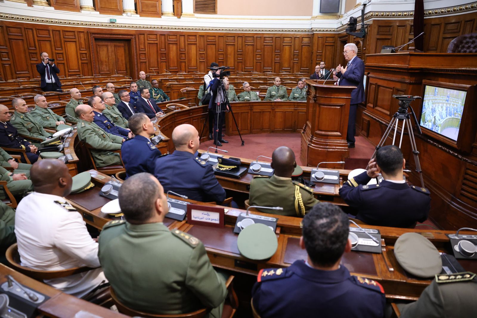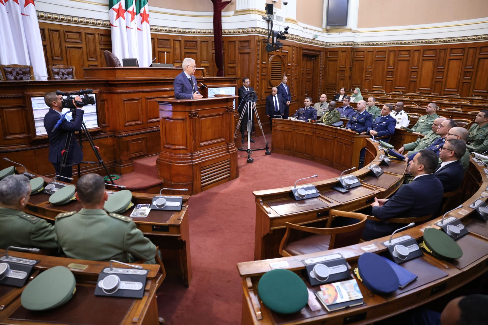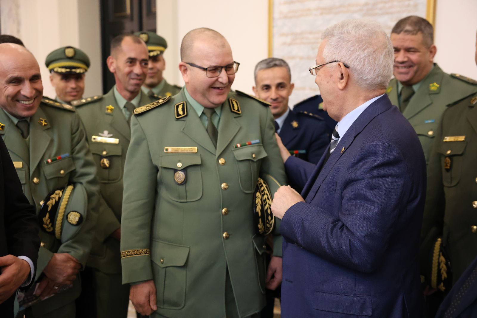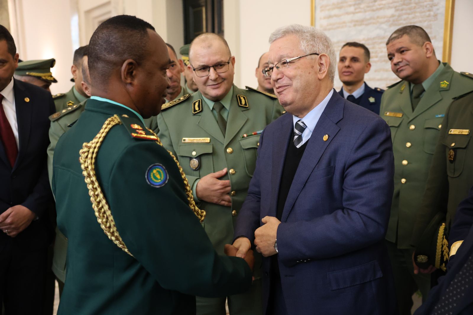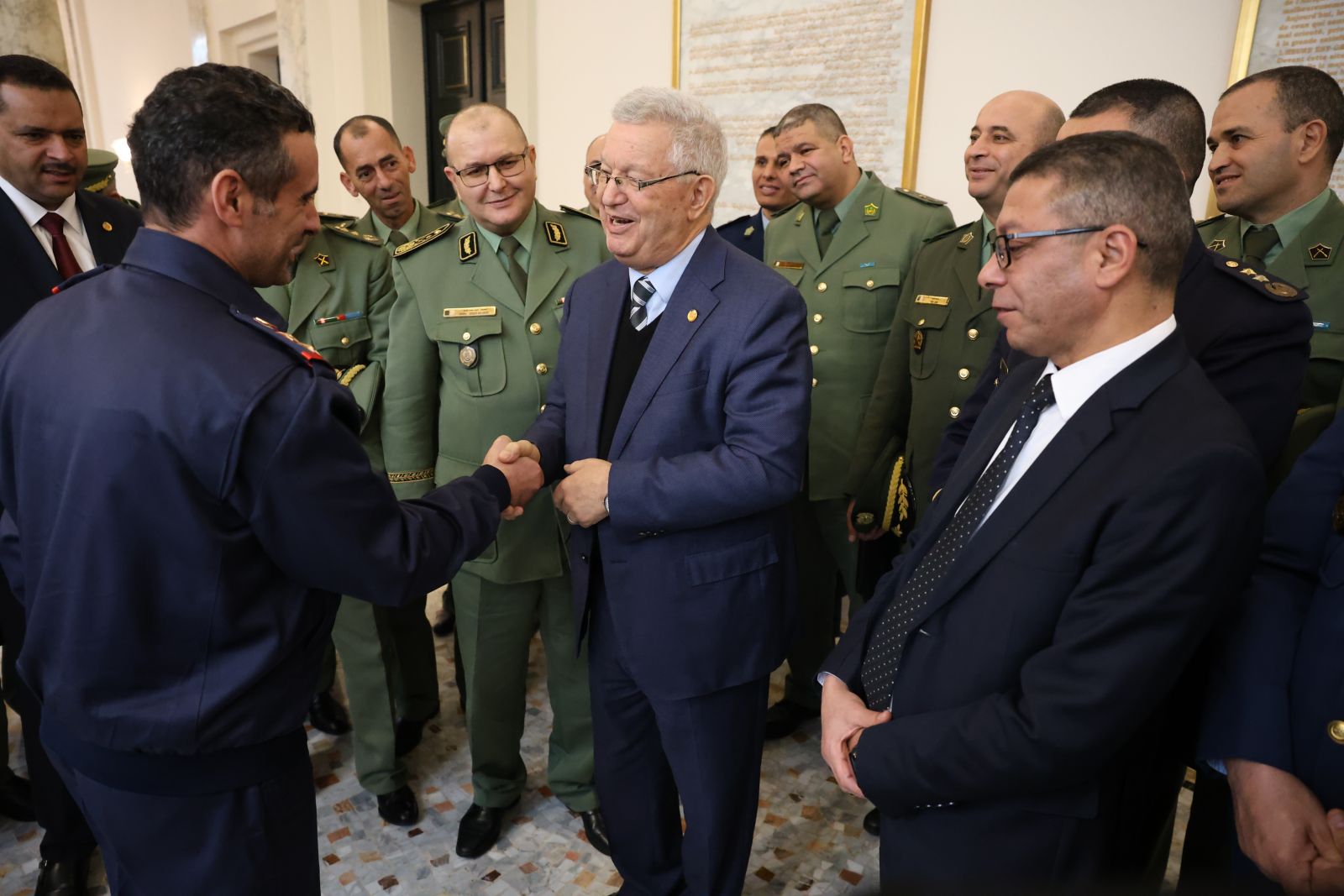 السيد عزوز ناصري، رئيس مجلس الأمة يستقبل وفدا من ضباط سامين مؤطرين وضباط سامين من بينهم أجانب متربصين بالمدرسة العليا الحربية بالناحية العسكرية الأولى