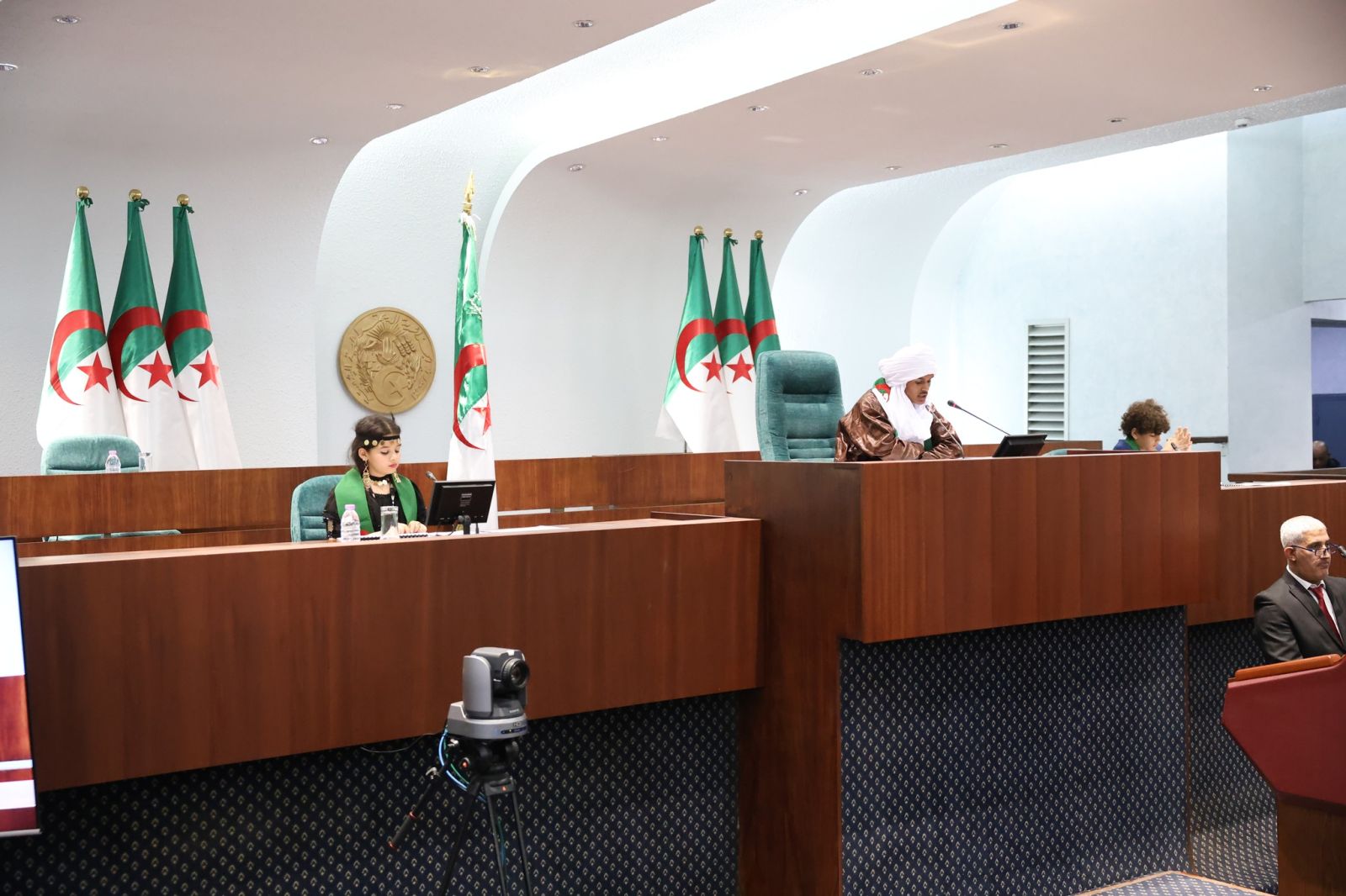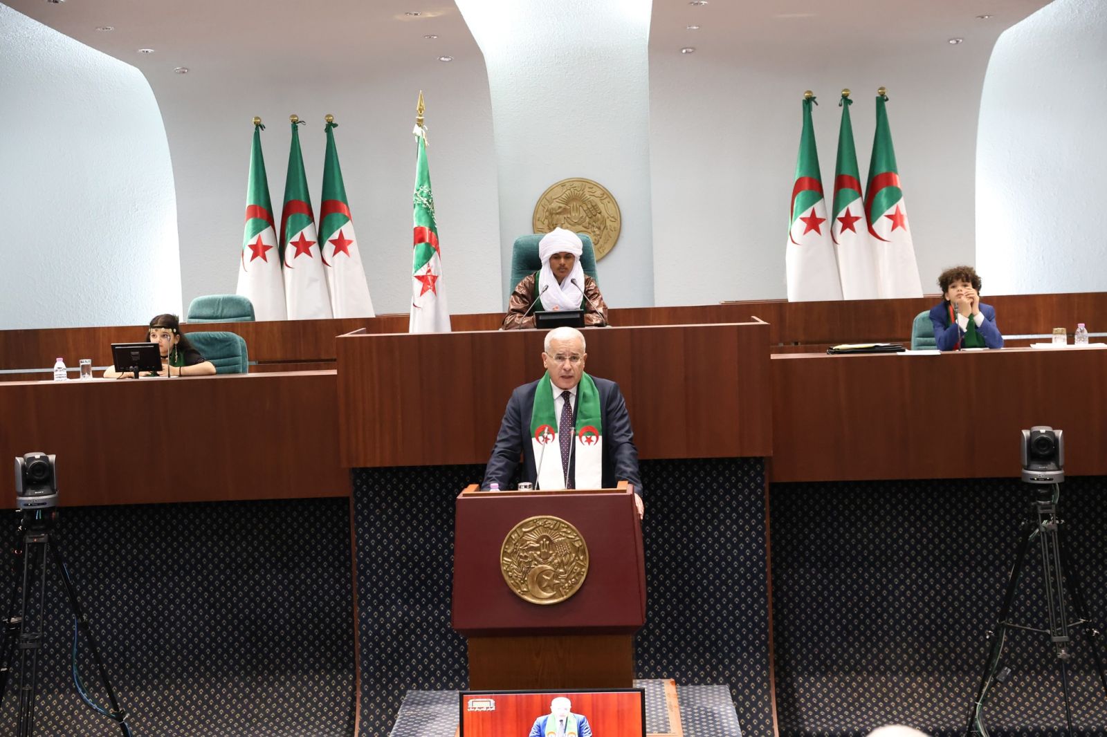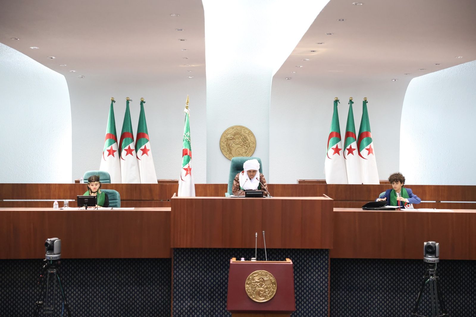 السيد عزوز ناصري، رئيس مجلس الأمة، يشارك اليوم، الإثنين 22 ديسمبر 2025، في مراسم افتتاح الجلسة الأولى لـ #برلمان_الطفل، التي أشرف عليها السيد ابراهيم بوغالي، رئيس المجلس الشعبي الوطني، والمنعقدة بمقر المجلس، بالجزائر العاصمة