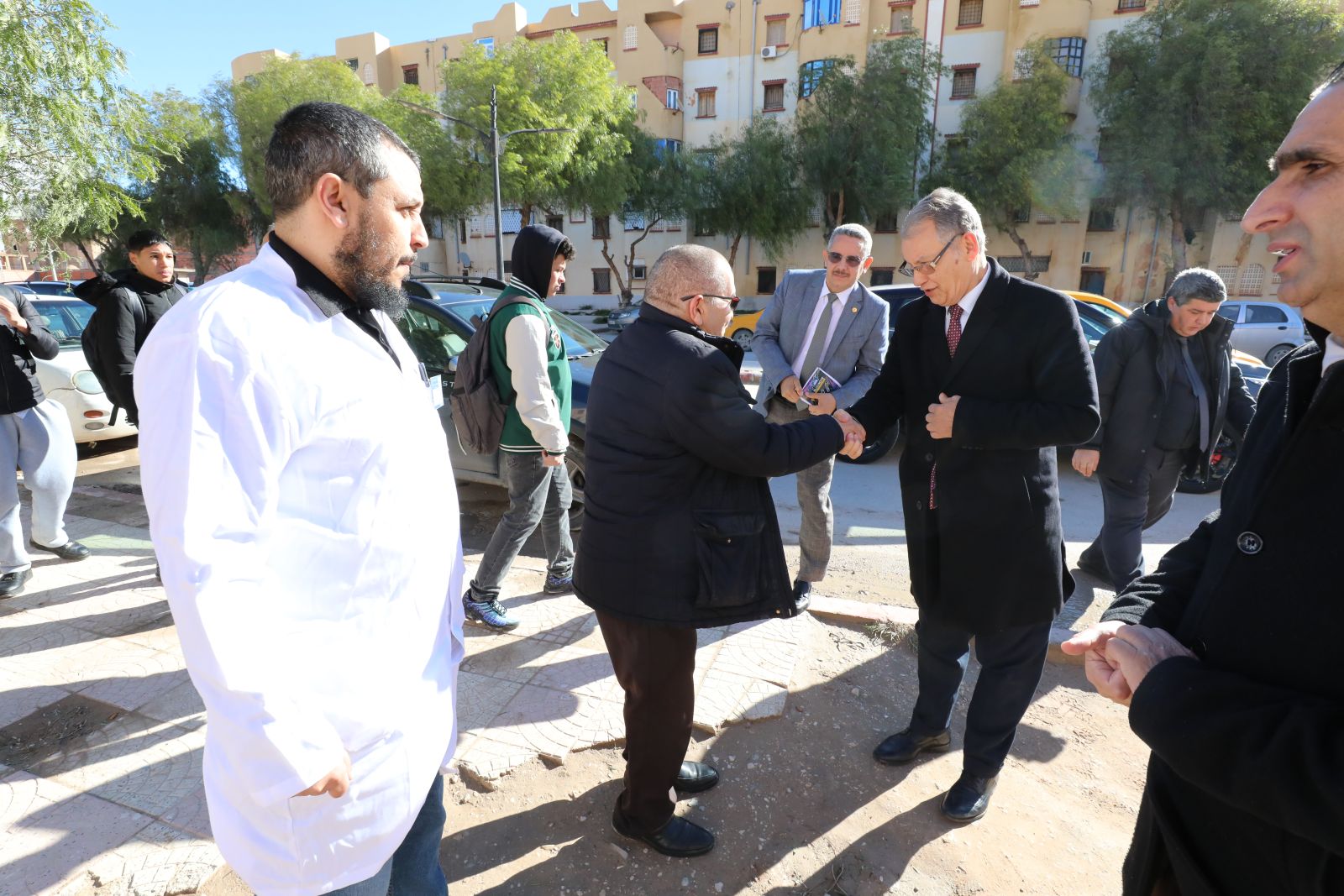وعقب ذلك، عُقد اجتماع عمل مع والي الولاية، تم خلاله استعراض أبرز الملاحظات المتعلقة بقطاع الصحة وتقدم المشاريع، مع تثمين جهود السلطات الولائية في متابعة البرامج التنموية.