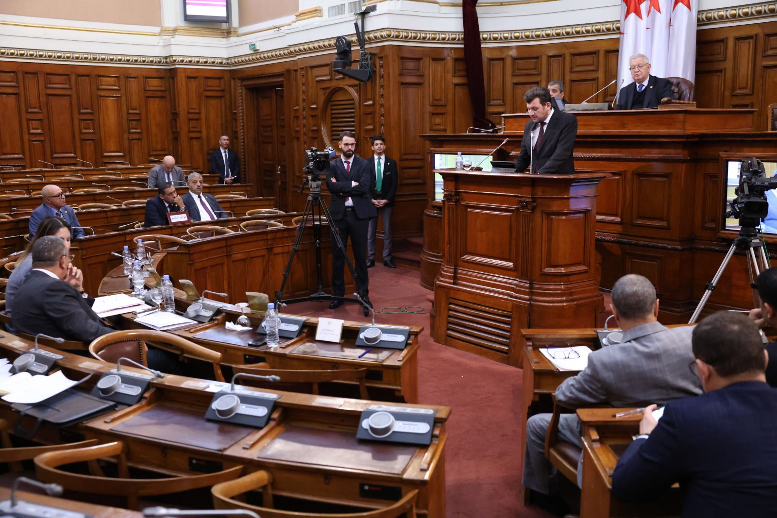 ترأّس السيد عزوز ناصري، رئيس مجلس الأمة، الجلسة العامة التي عقدها مجلس الأمة، صبيحة اليوم الخميس 25 ديسمبر 2025، والتي خُصصت لتوجيه أربعة عشر (14) سؤالاً شفوياً إلى أربعة (4) أعضاء في الحكومة، تخصّ قطاعات: التعليم العالي والبحث العلمي، التربية الوطنية، الفلاحة والتنمية الريفية والصيد البحري، والأشغال العمومية والمنشآت القاعدية، وذلك بحضور وزراء القطاعات المعنية ممثلين في السّادة: كمال بداري، وزير التعليم العالي والبحث العلمي، محمد صغير سعداوي، وزير التربية الوطنية، ياسين المهدي وليد، وزيرالفلاحة والتنمية الريفية والصيد البحري، عبد القادر جلاوي، وزير الأشغال العمومية والمنشآت القاعدية، وكذا السيدة نجيبة جيلالي، وزيرة العلاقات مع البرلمان؛ وقد جاءت الأسئلة الموجّهة من السادة أعضاء المجلس، على النحو التالي: