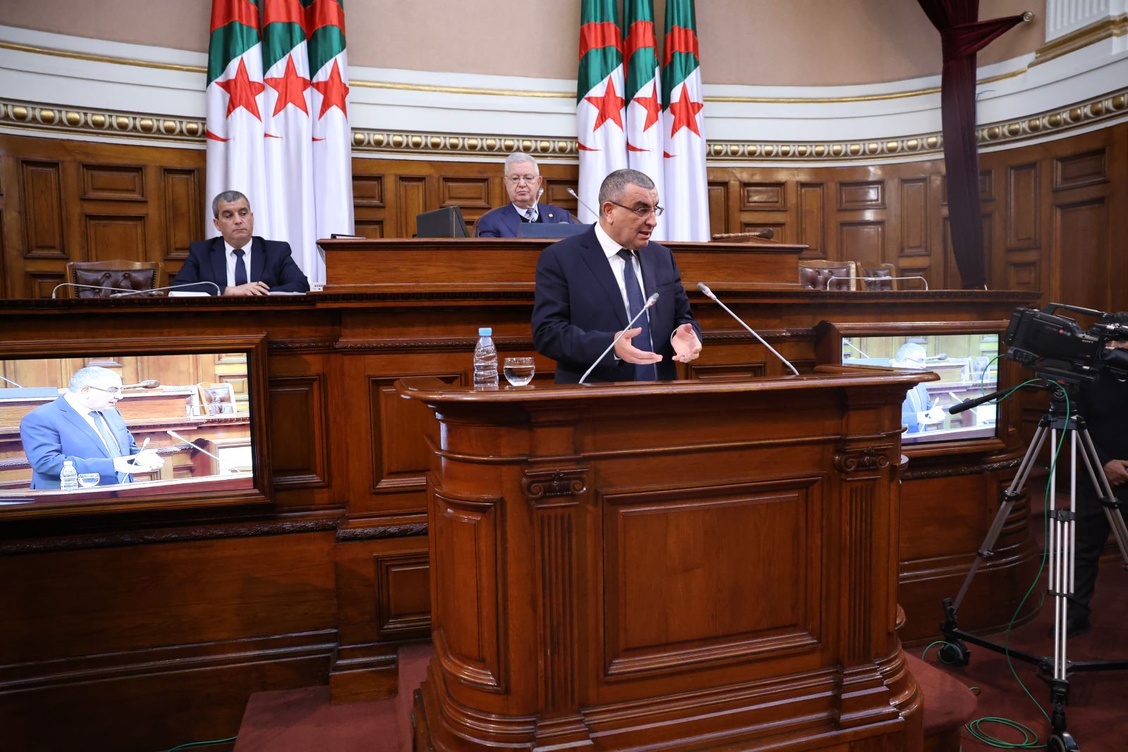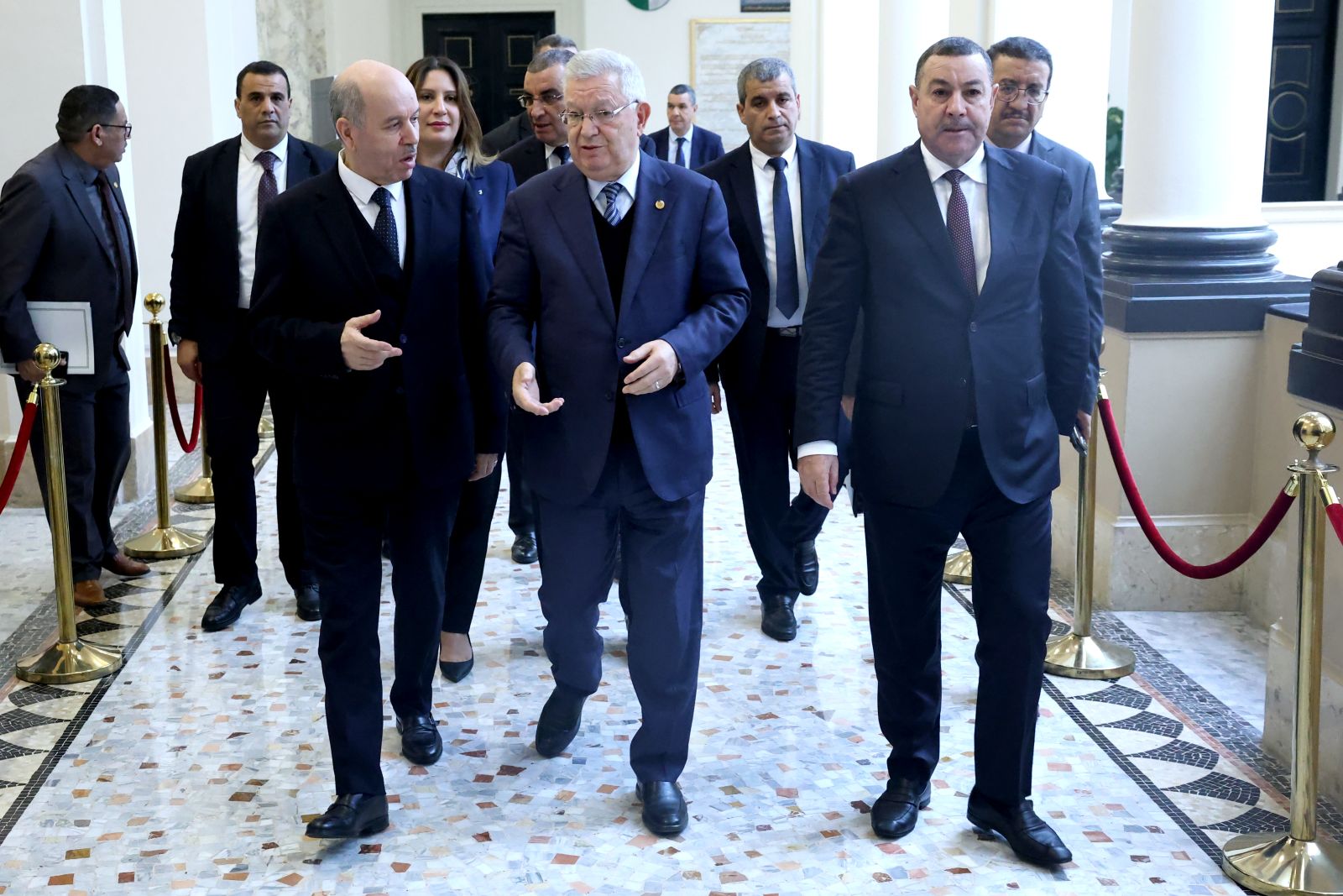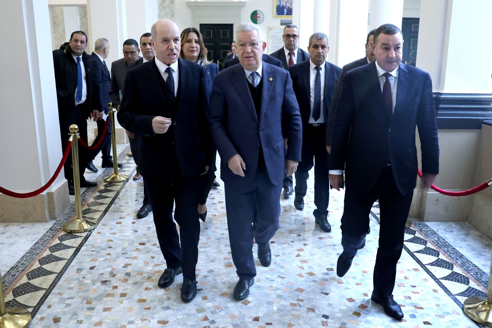 ترأّس السيد عزوز ناصري، رئيس مجلس الأمة، صبيحة اليوم الخميس 05 فيفري 2026، جلسة عامة، خُصصت لتوجيه تسعة (09) أسئلة شفوية إلى ثلاثة (3) أعضاء في الحكومة، تخصّ قطاعات: الداخلية والجماعات المحلية والنقل، الأشغال العمومية والمنشآت القاعدية، والعمل والتشغيل والضمان الاجتماعي، وذلك بحضور وزراء القطاعات المعنية ممثلين في السادة : السعيد سعيود، وزير الداخلية والجماعات المحلية والنقل، وعبد القادر جلاوي، وزير الأشغال العمومية والمنشآت القاعدية، وعبد الحق سايحي، وزير العمل والتشغيل والضمان الاجتماعي، وكذا السيدة نجيبة جيلالي، وزيرة العلاقات مع البرلمان؛ وقد جاءت الأسئلة الموجّهة من السادة أعضاء المجلس، على النحو التالي: