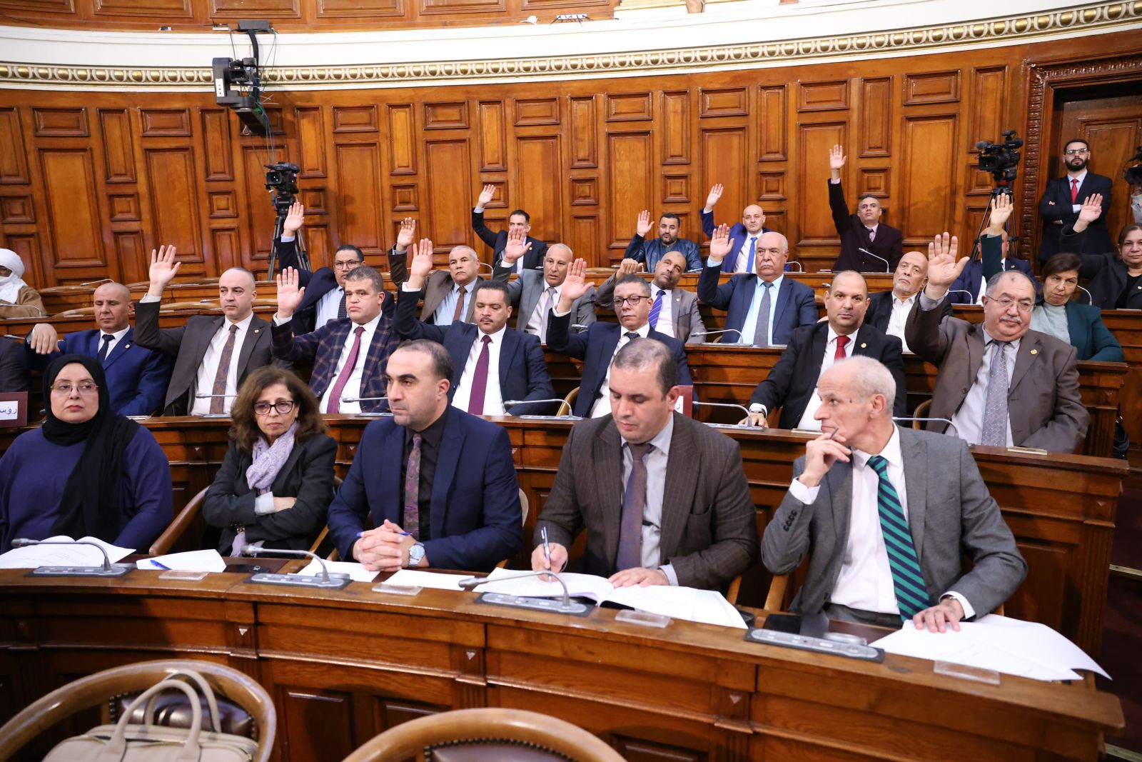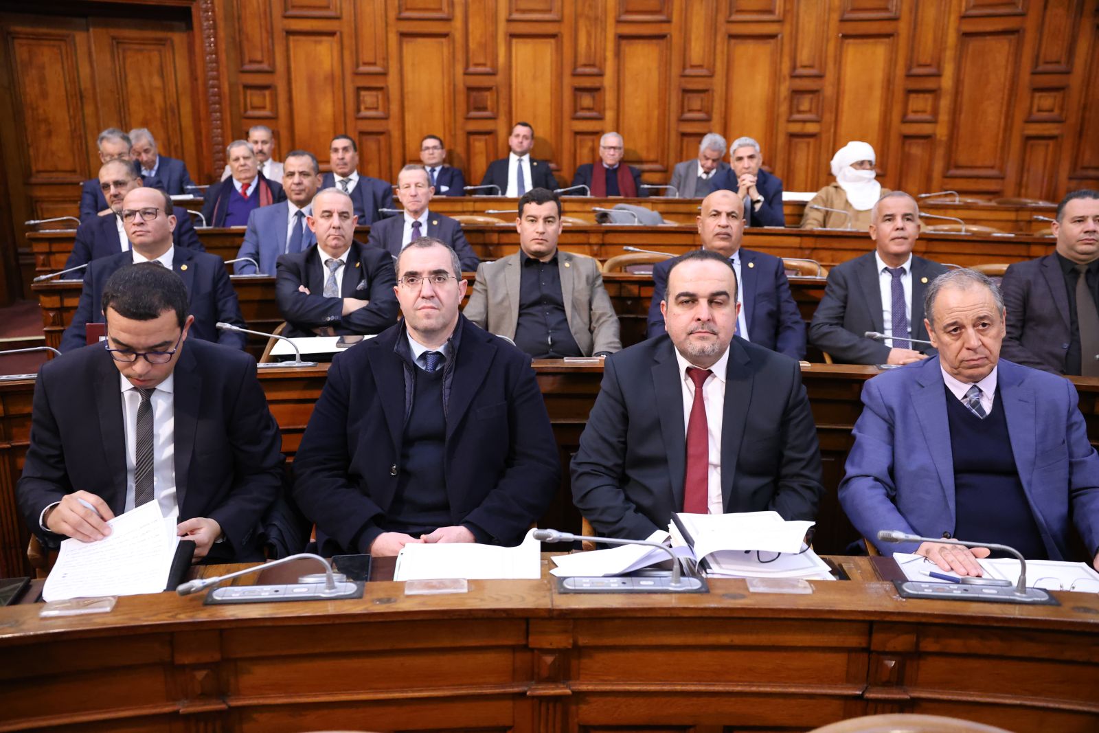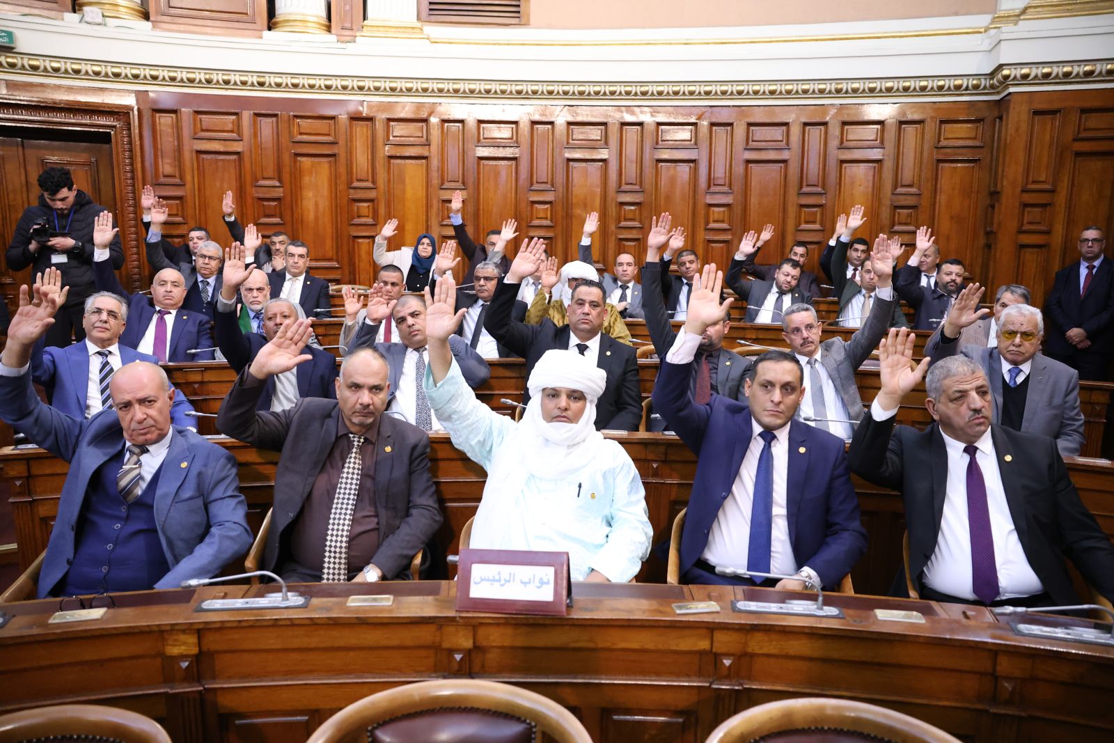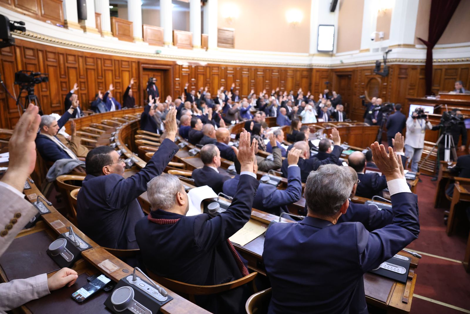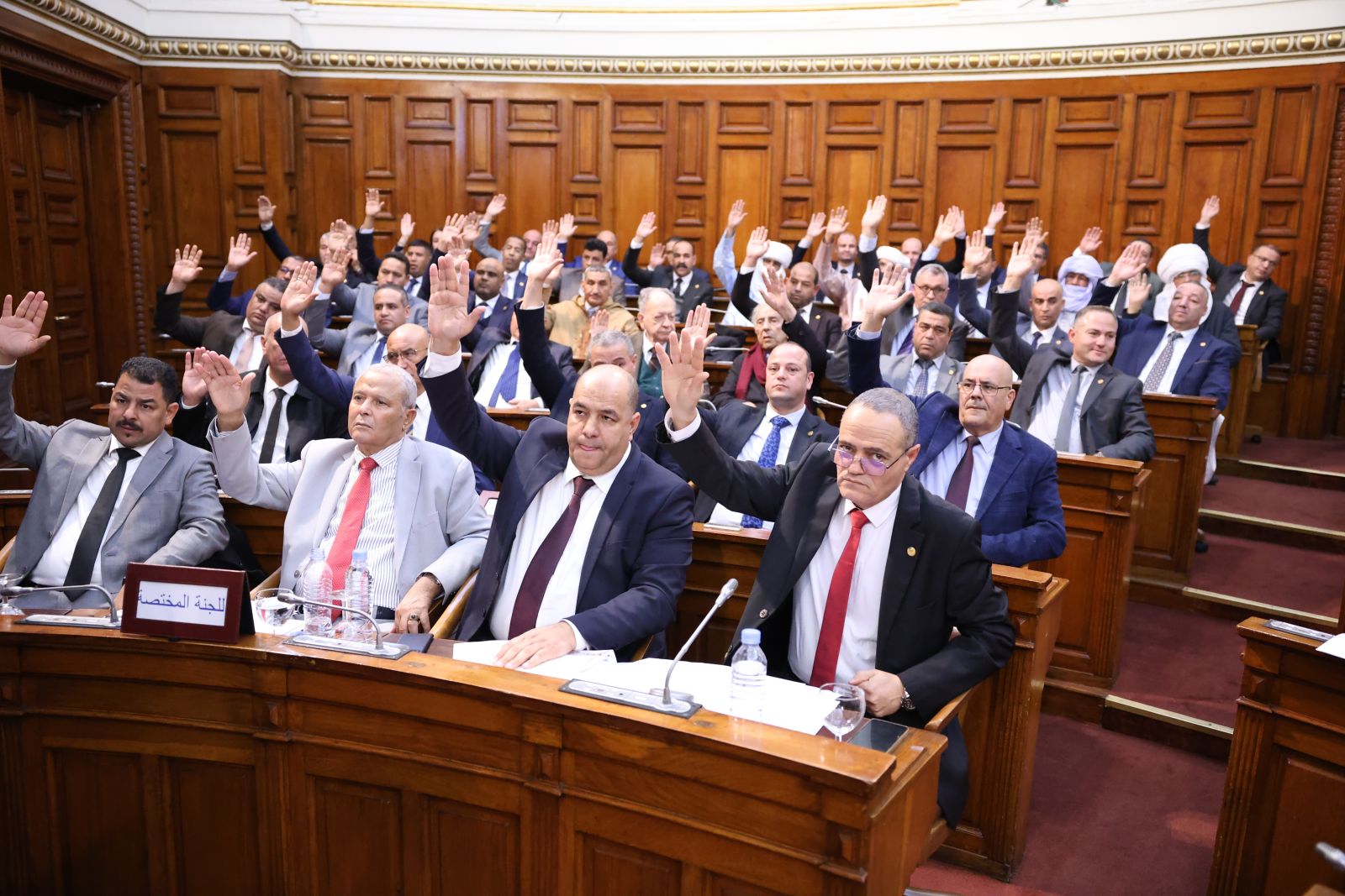 في جلسة علنية تراسها السيد عزوز ناصري، رئيس مجلس الأمة أعضاء المجلس يصوتون على مشروع القانون الذي يُعدّل ويُتمّم القانون رقم 84-09، والمتعلق بالتنظيم الإقليمي للبلاد