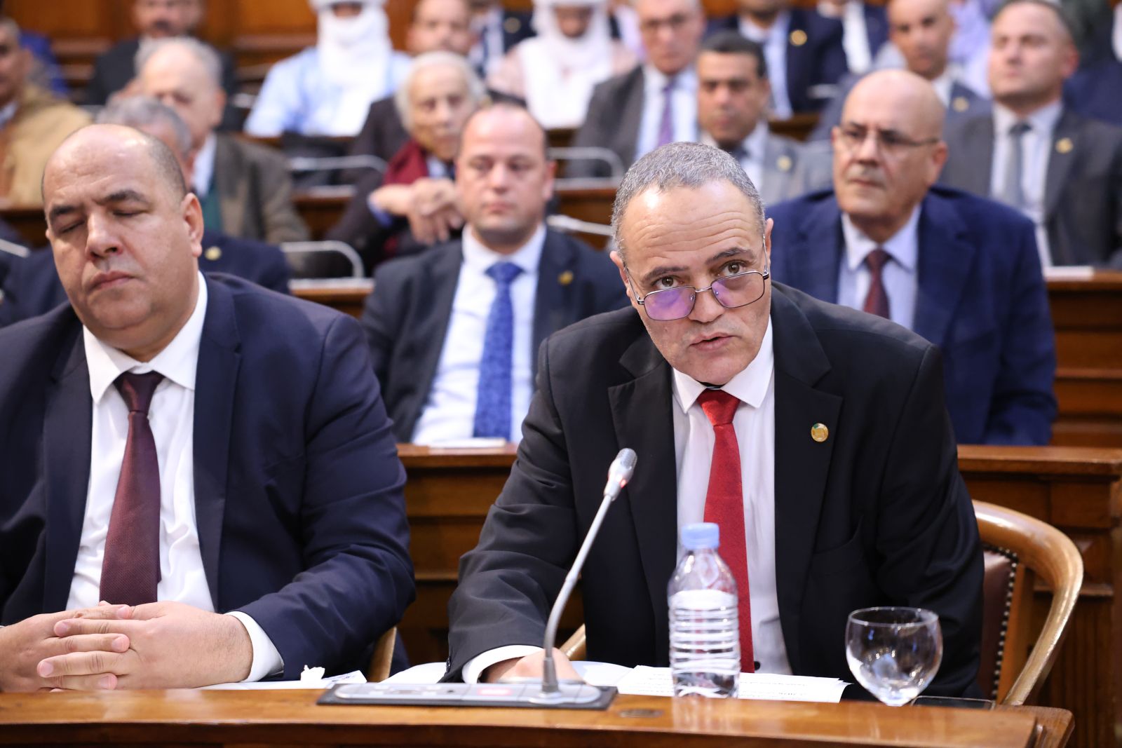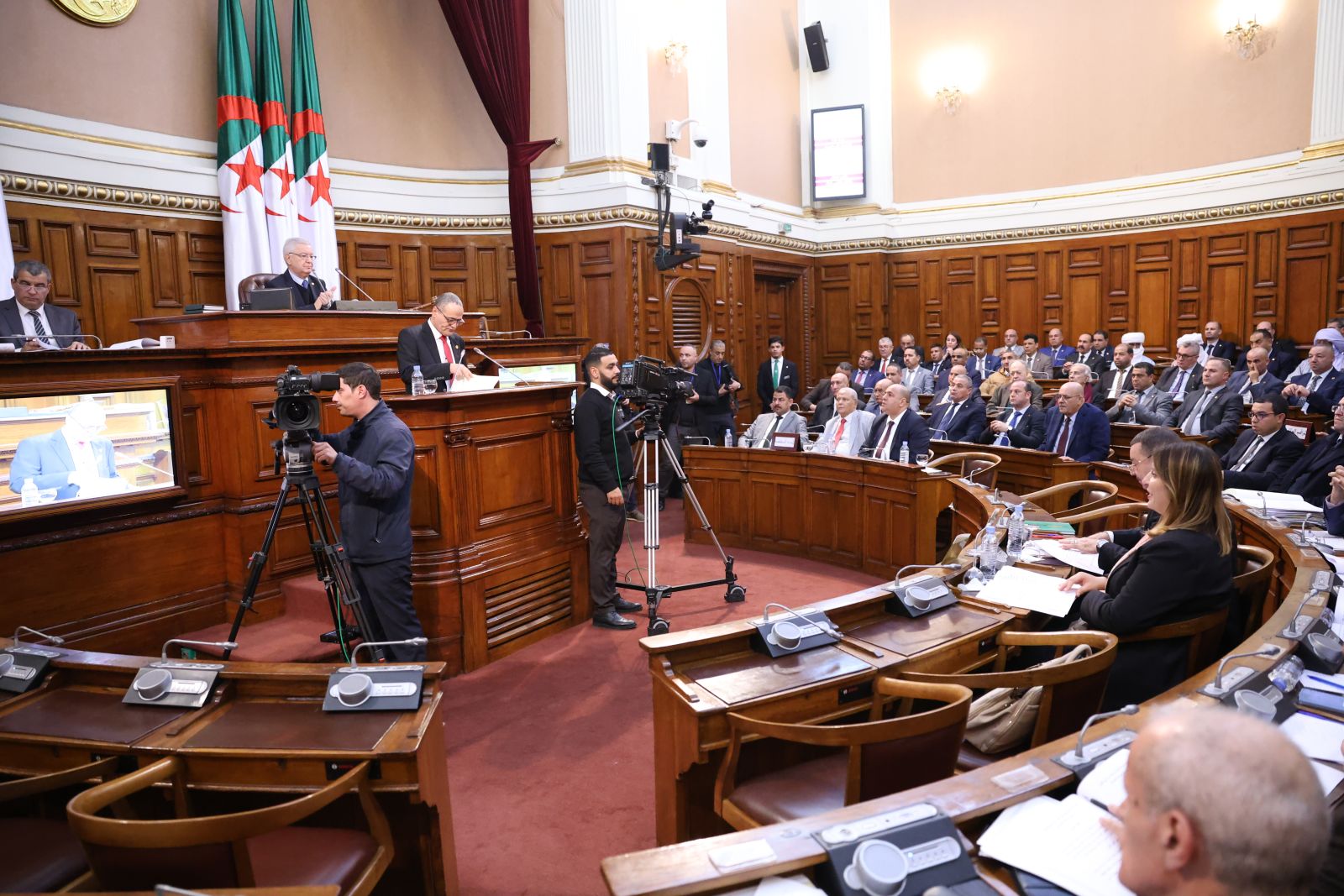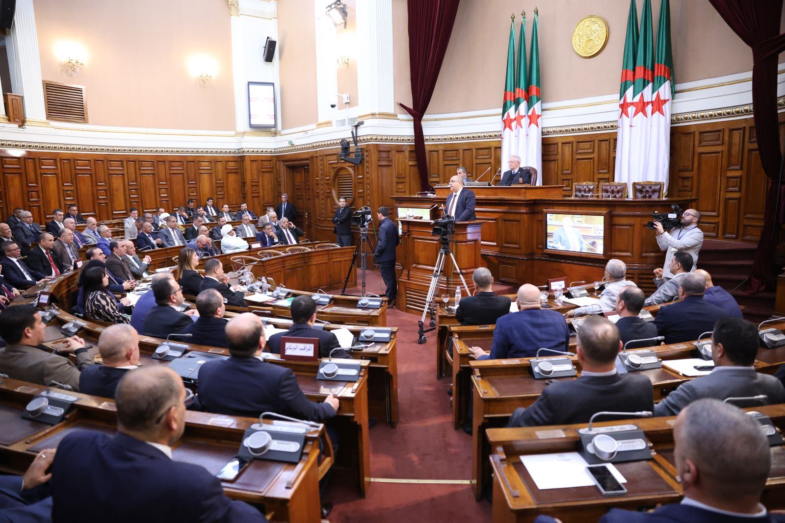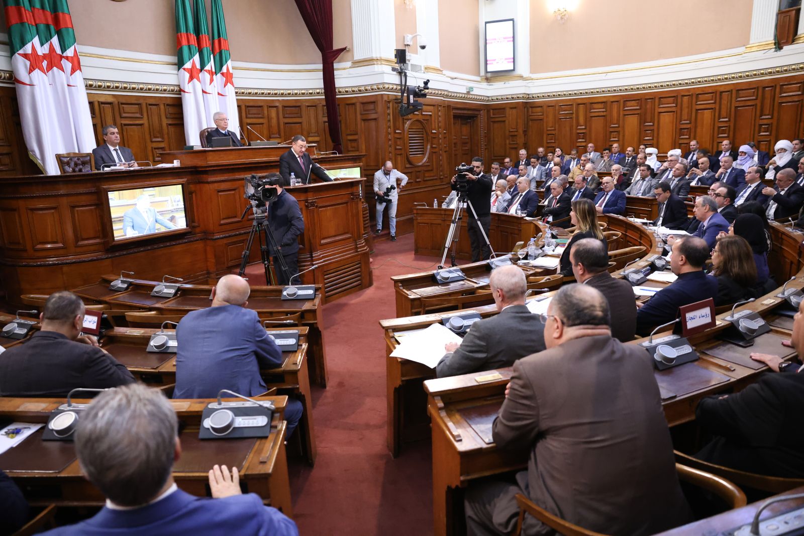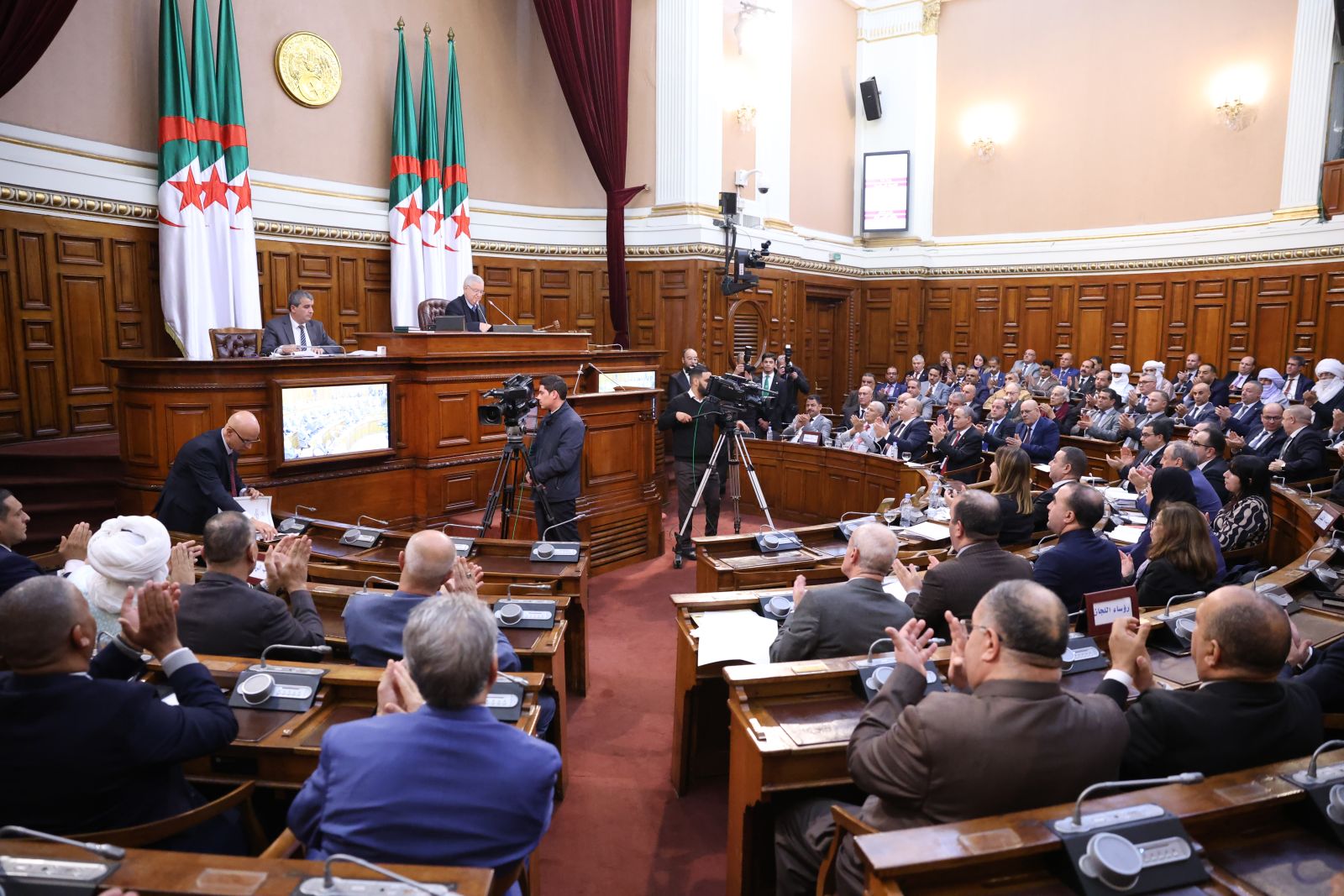 في جلسة علنية تراسها السيد عزوز ناصري، رئيس مجلس الأمة أعضاء المجلس يصوتون على مشروع القانون الذي يُعدّل ويُتمّم القانون رقم 84-09، والمتعلق بالتنظيم الإقليمي للبلاد
