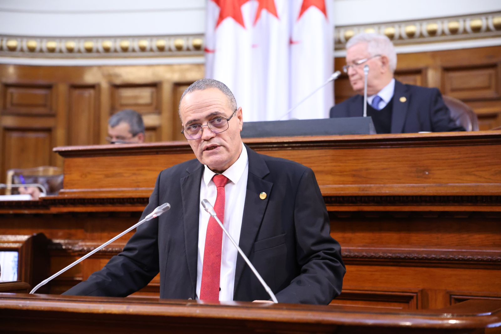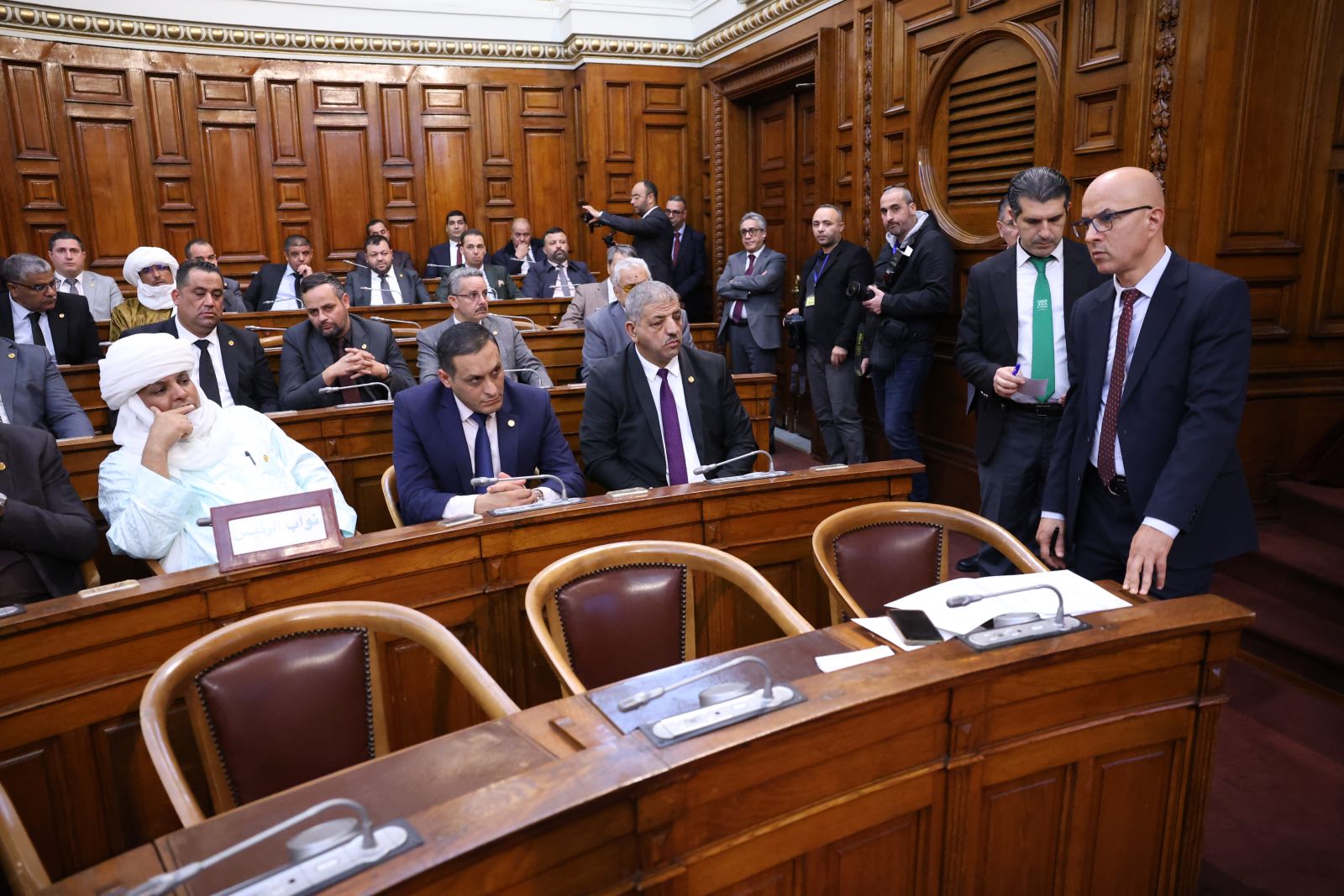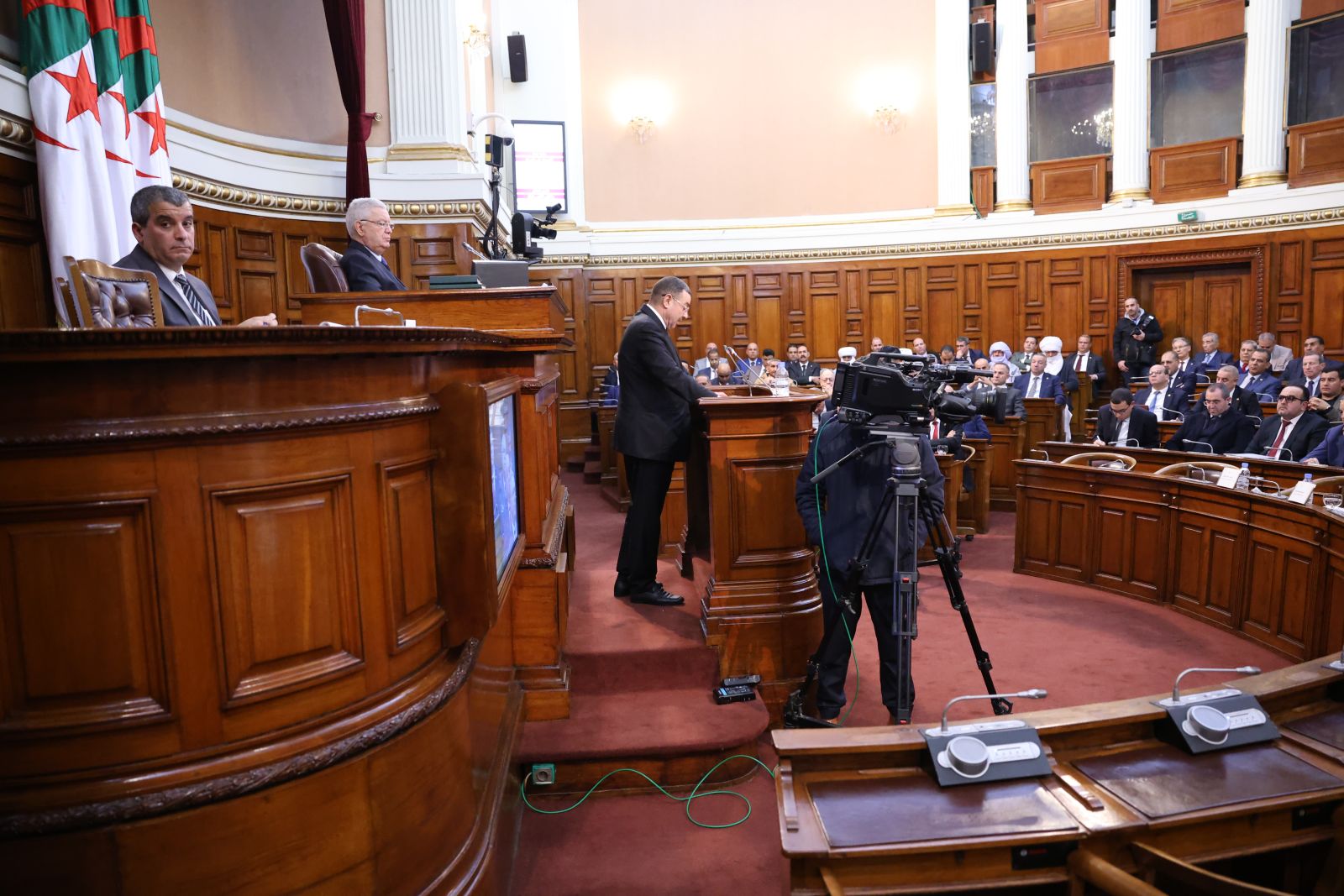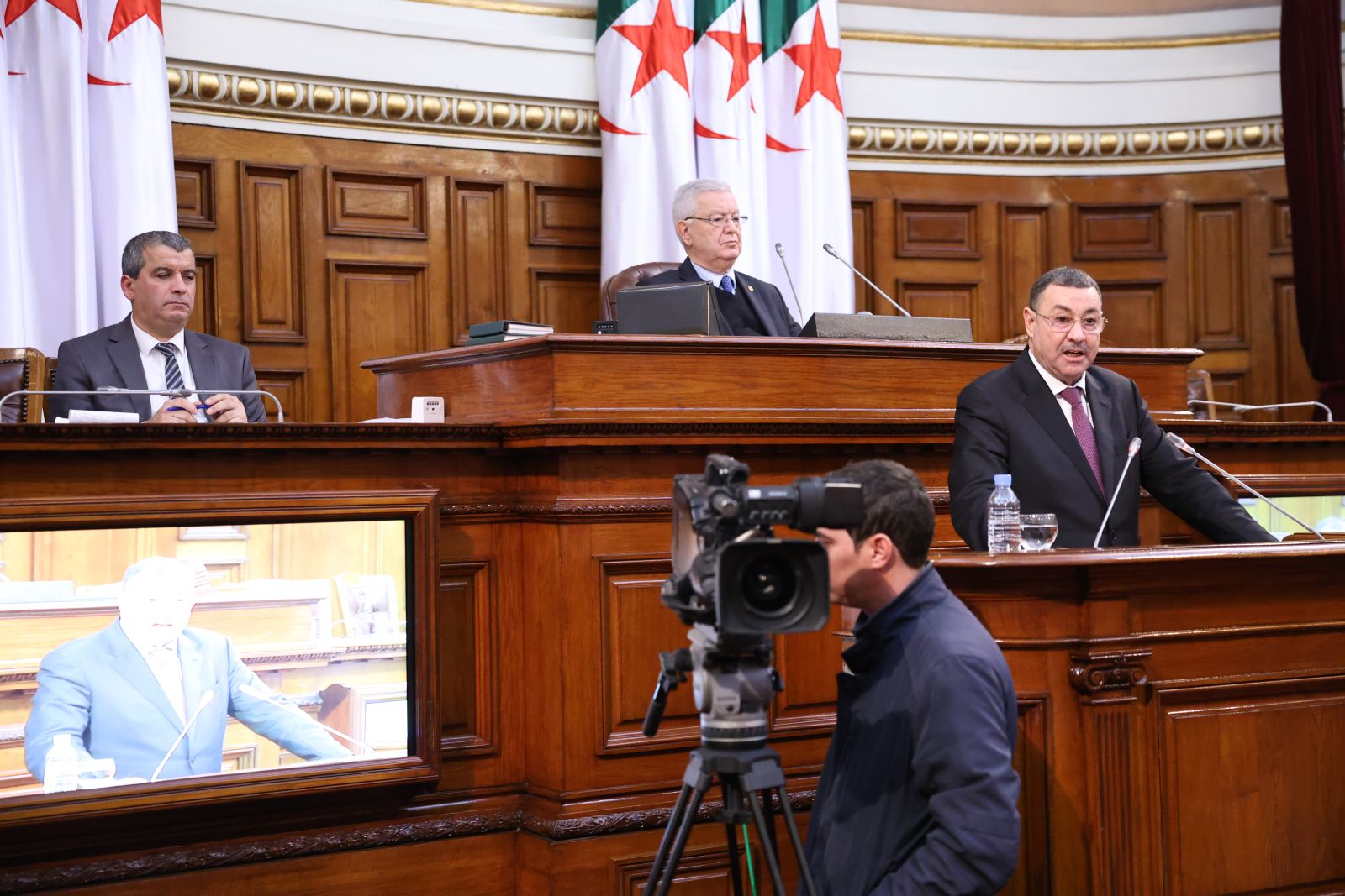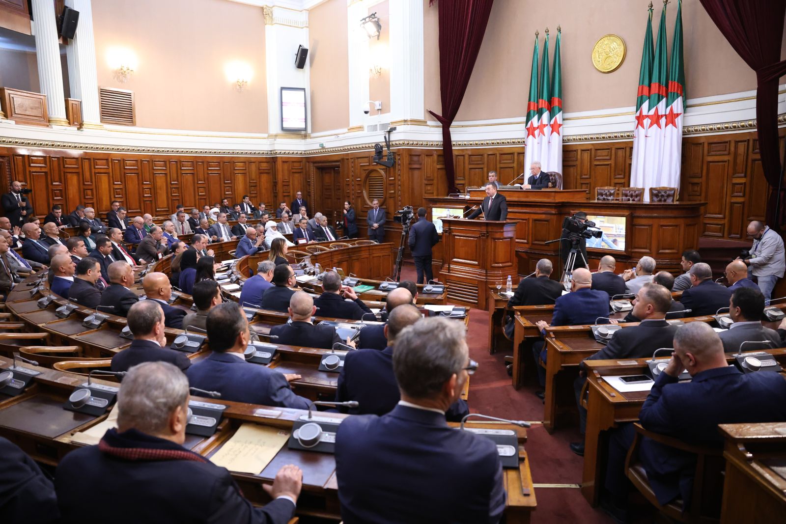 في جلسة علنية تراسها السيد عزوز ناصري، رئيس مجلس الأمة أعضاء المجلس يصوتون على مشروع القانون الذي يُعدّل ويُتمّم القانون رقم 84-09، والمتعلق بالتنظيم الإقليمي للبلاد