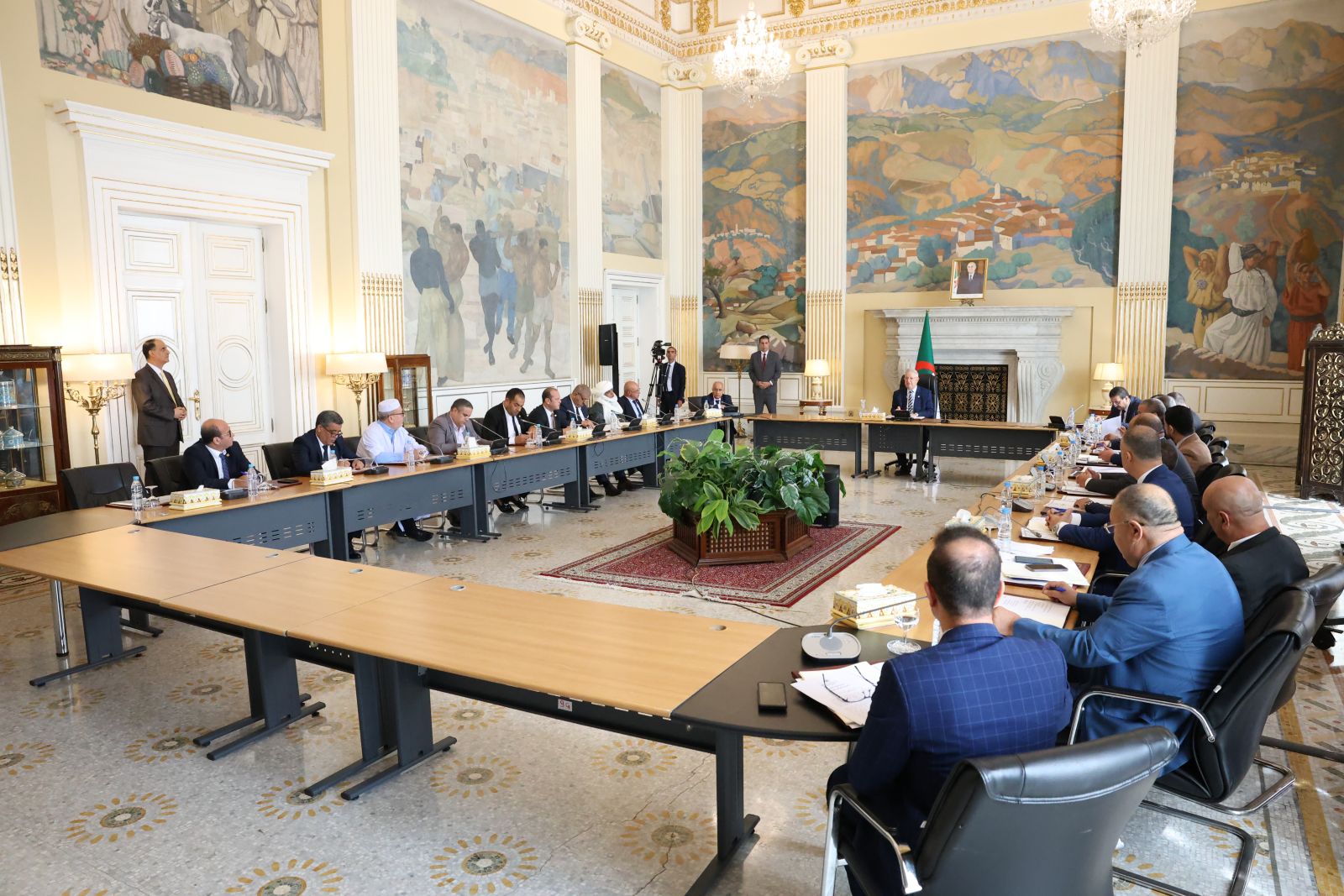 في المستهل، رحّب السيد رئيس مجلس الأمة، بالسّادة الحضور، موضّحاً بأنّ هذا الاجتماع يأتي أساساً لتناول وتدارس معالم برنامج عمل المجلس وعبره اللجان الدائمة خلال الدورة البرلمانية العادية الحالية 2025-2026، وهو البرنامج الذي أبرز بشأنه السيد رئيس المجلس بأنّه سيكون مكثّفاً؛ حاضاً في السياق ذاته مسؤولي الهياكل وعبرهم السيدات والسادة أعضاء مجلس الأمة، إلى التصدي لمهامهم التي يكفلها الدستور، من أجل المساهمة في الديناميكية الإيجابية التي تشهدها البلاد بقيادة رئيس الجمهورية، السيد عبد المجيد تبون؛ المبنية على فلسفة عمل جديدة ومبتكرة، فعّالة، مقدامة أساسها العزم، نوفمبرية الهوية، تروم جسر الهوة بين الشعب ومؤسسات دولته، وبما يُفضي في المحصّلة إلى الرفع من منسوب الطمأنينة والسكينة والارتياح لدى المواطنات والمواطنين؛ ويثمّن عالياً ما جاء على لسان السيد رئيس الجمهورية خلال اللقاء الإعلامي الدوري الأخير باعتباره ورقة عمل تضبط وتؤطّر ضرورات المرحلة؛ لافتاً إلى أنّ الشعب الجزائري الذي تقدّم على من سواه في فنون الملاحمة والمصاولة والمقارعة إبان الفترة الاستعمارية، حفظاً لحقوقه وضنّا بنفسه عن الذل والهوان ومدافَعَةً عن ملّته، لن يتأخر في سبيل كلّ ذلك للالتحام بين آحاده نُصرة لوطنه وذوداً عن استقلاله ووحدته ورموزه بصرف النظر عن أيّ التبريرات كانت وأيّ الذرائع كانت، وسيُقيم بالوحدة سدّاً يحول عنه هذه السيول المتدفقة عليه من عديد الجهات.