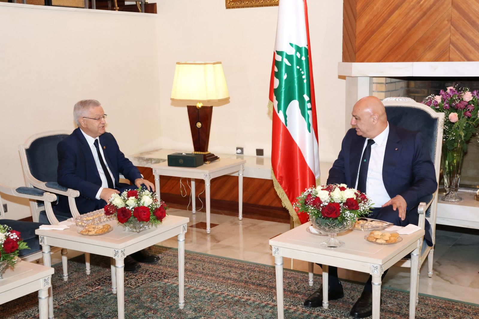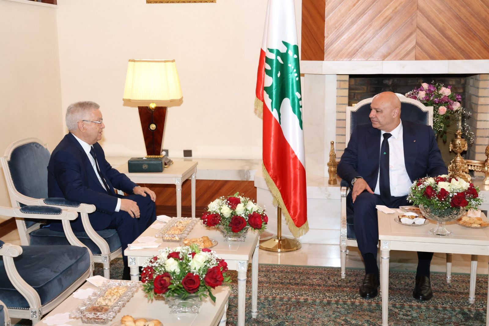 السيد عزوز ناصري، رئيس مجلس الأمة، يؤدي زيارة مجاملة إلى السيد جوزيف عون، رئيس جمهورية لبنان