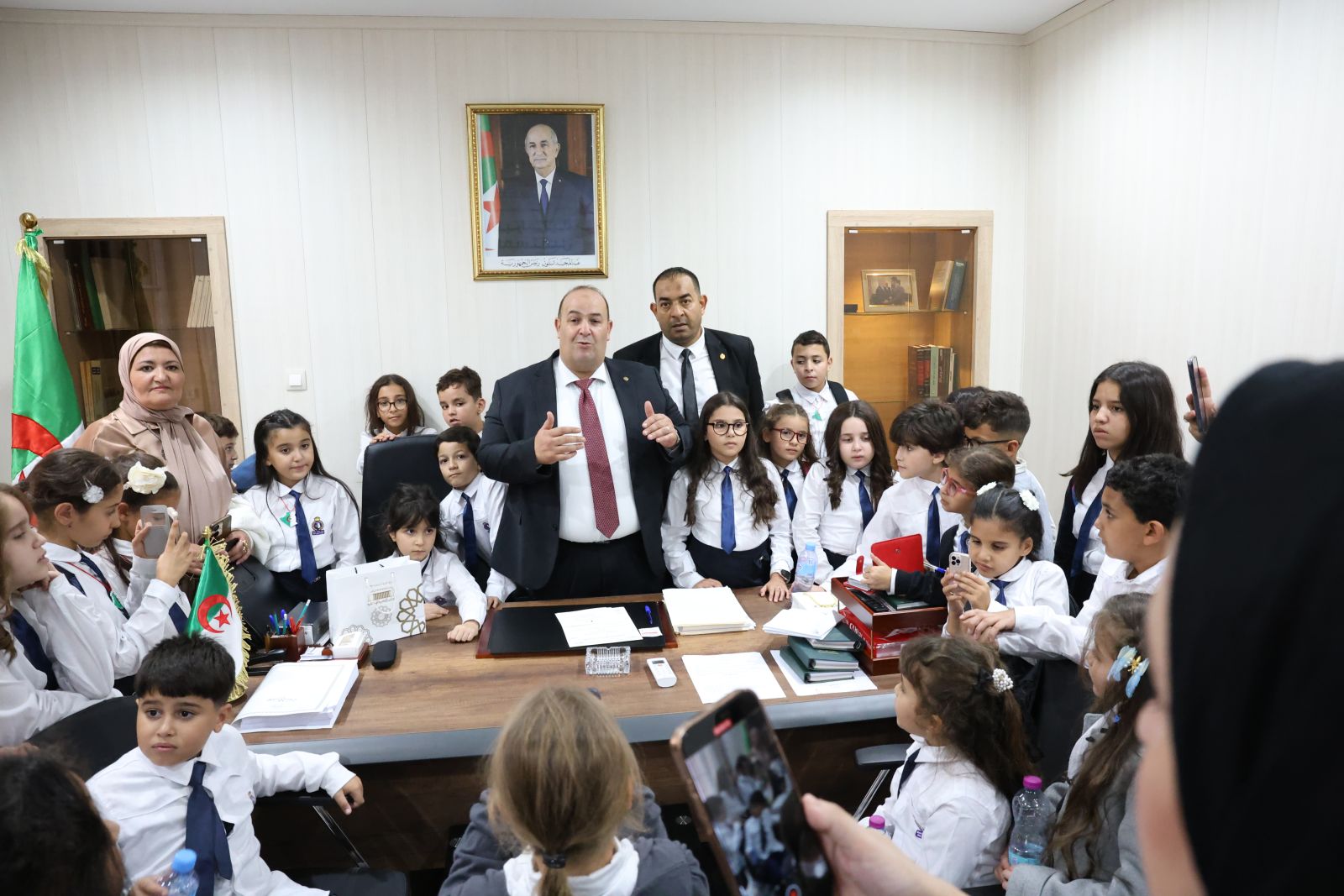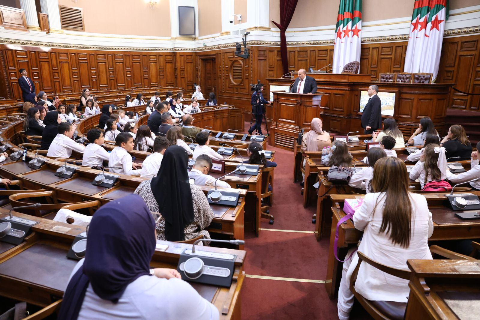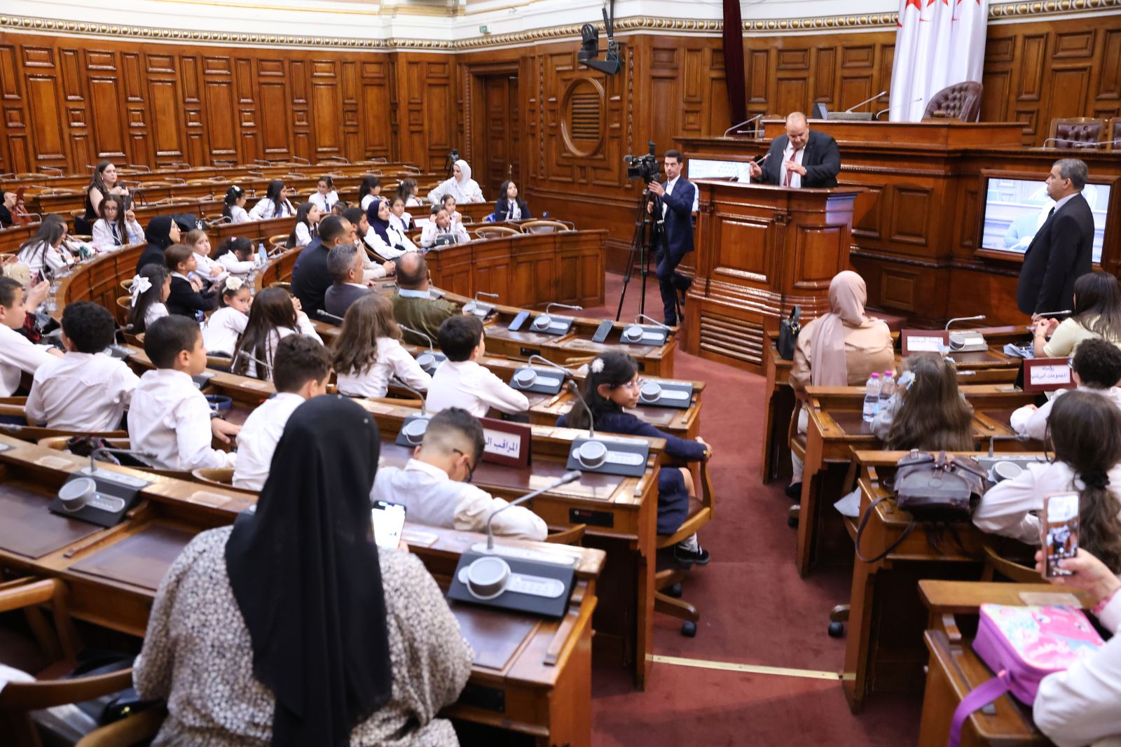 في إطار النشاطات الفكرية و الثقافية لمجلس الأمة و التفتح على فعاليات المجتمع المدني، قامت اليوم الثلاثاء 28 أكتوبر 2025، مجموعة من تلاميذ مؤسسات التربية لولاية عنابة(مدرسة حربي عمار) رفقة نخبة من المؤطرين بزيارة لمقر مجلس الأمة، حيث كان في استقبالهم بتكليف من السيد عزوز ناصري، رئيس مجلس الأمة، كل من السادة أعضاء مجلس الأمة، محمد أمين ساحلي، مندوب مجموعة اللامنتمين؛ محمد الهاشمي دبابش، عضو مجلس الأمة؛ عبد القادر كسار، عضو مجلس الأمة؛ أحمد شيتو، عضو مجلس الأمة؛