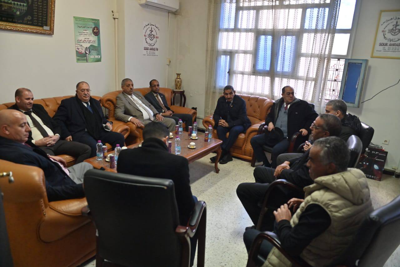 اما فيما يخص قطاع الإعلام، فقد شكَّل مقرَّ الإذاعةِ المحليّةِ لولايةِ سوق أهراس، آخرَ محطةٍ ضمن برنامجِ زيارة بعثة مجلس الأمة للولاية. وقد اطّلع الوفدُ، خلال هذه الزيارة، على ظروفِ عملِ الطاقمِ الصحفيّ وموظّفي الإذاعة، ووقف على أبرزِ التحدّياتِ التي تواجههم أثناءَ أداء مهامّهم الإعلاميّة، كما تلقّى شروحاتٍ وافيةً حول تاريخِ الإذاعةِ وتنظيمِها الهيكليّ وأقسامِها ومصالحِها، فضلاً عن شبكاتِها البرامجيّةِ ومهامّها الاتصاليّة، كما استمع وفد البعثة إلى جملة من الانشغالات المهنية والاجتماعية التي عبّر عنها عمال الإذاعة، والتي تمحورت أساسًا حول تعزيز المسار المهني وتحسين الظروف العامة لأداء الخدمة الإعلامية. وفي هذا السياق، أُثيرت مسألة مراجعة بعض الجوانب المرتبطة بالوضعية التحفيزية بما يتماشى وحجم المسؤوليات الملقاة على عاتقهم، إلى جانب تمكينهم من فرص أوسع للترقية وفق الأطر القانونية والتنظيمية المعمول بها.