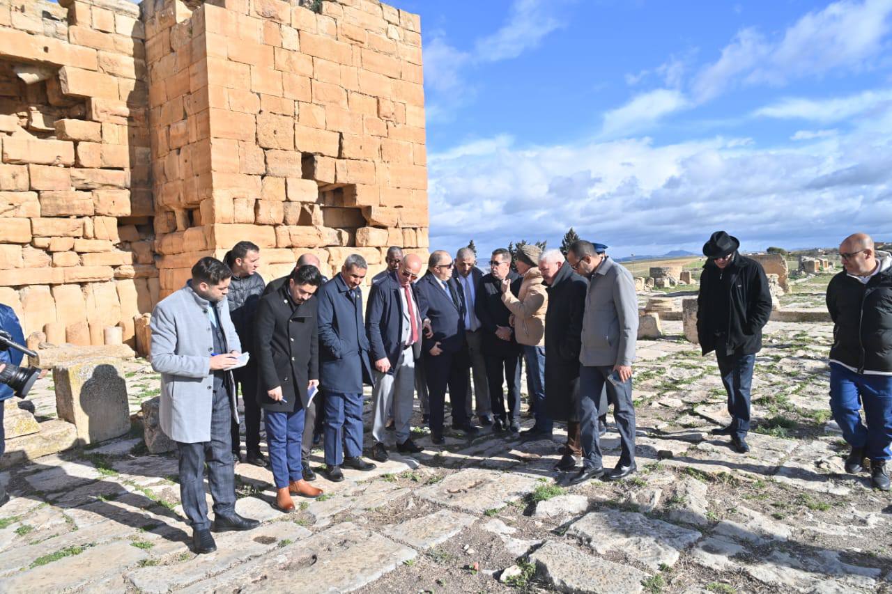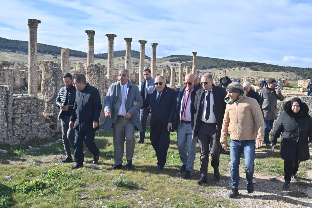 أما في قطاع السياحة، فقد شملت الزيارة ببلدية مداوروش الموقع الأثري مادور، حيث تم تسجيل وجود منطقة توسع سياحي مصنفة منذ سنة 2016، غير أن إعداد دراسة التهيئة لم يتجسد إلى حد الآن لعدم تخصيص غلاف مالي للعملية. كما تنقل الوفد إلى بلدية خميسة، دائرة سدراتة، ، لمعاينة الموقع الأثري (الآثار الرومانية)، حيث تم اقتراح منطقة توسع سياحي تحمل تسمية “خميسة”، في انتظار تحويل ملفها إلى الوزارة الأولى قصد استصدار المرسوم الخاص بتصنيفها. وأكدت المعاينات أن توفير العقار السياحي من شأنه توجيهه للاستثمار، لا سيما لإنشاء هياكل فندقية لرفع طاقة الإيواء، بما يعزز جاذبية الولاية سياحيًا وثقافيًا، مع تسجيل انشغال مرتبط بنقص النصوص التطبيقية المؤطرة لمناطق التوسع السياحي.