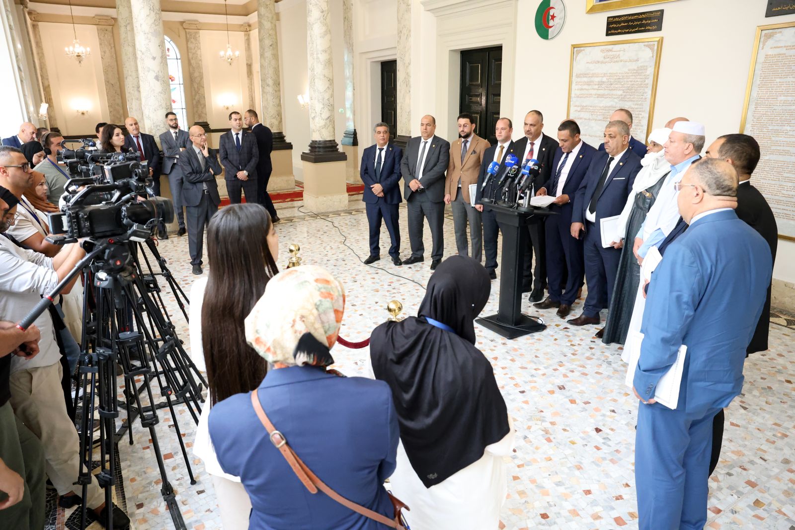 في المستهل، رحّب السيد رئيس مجلس الأمة، بالسّادة الحضور، موضّحاً بأنّ هذا الاجتماع يأتي أساساً لتناول وتدارس معالم برنامج عمل المجلس وعبره اللجان الدائمة خلال الدورة البرلمانية العادية الحالية 2025-2026، وهو البرنامج الذي أبرز بشأنه السيد رئيس المجلس بأنّه سيكون مكثّفاً؛ حاضاً في السياق ذاته مسؤولي الهياكل وعبرهم السيدات والسادة أعضاء مجلس الأمة، إلى التصدي لمهامهم التي يكفلها الدستور، من أجل المساهمة في الديناميكية الإيجابية التي تشهدها البلاد بقيادة رئيس الجمهورية، السيد عبد المجيد تبون؛ المبنية على فلسفة عمل جديدة ومبتكرة، فعّالة، مقدامة أساسها العزم، نوفمبرية الهوية، تروم جسر الهوة بين الشعب ومؤسسات دولته، وبما يُفضي في المحصّلة إلى الرفع من منسوب الطمأنينة والسكينة والارتياح لدى المواطنات والمواطنين؛ ويثمّن عالياً ما جاء على لسان السيد رئيس الجمهورية خلال اللقاء الإعلامي الدوري الأخير باعتباره ورقة عمل تضبط وتؤطّر ضرورات المرحلة؛ لافتاً إلى أنّ الشعب الجزائري الذي تقدّم على من سواه في فنون الملاحمة والمصاولة والمقارعة إبان الفترة الاستعمارية، حفظاً لحقوقه وضنّا بنفسه عن الذل والهوان ومدافَعَةً عن ملّته، لن يتأخر في سبيل كلّ ذلك للالتحام بين آحاده نُصرة لوطنه وذوداً عن استقلاله ووحدته ورموزه بصرف النظر عن أيّ التبريرات كانت وأيّ الذرائع كانت، وسيُقيم بالوحدة سدّاً يحول عنه هذه السيول المتدفقة عليه من عديد الجهات.