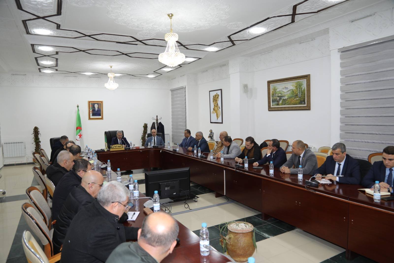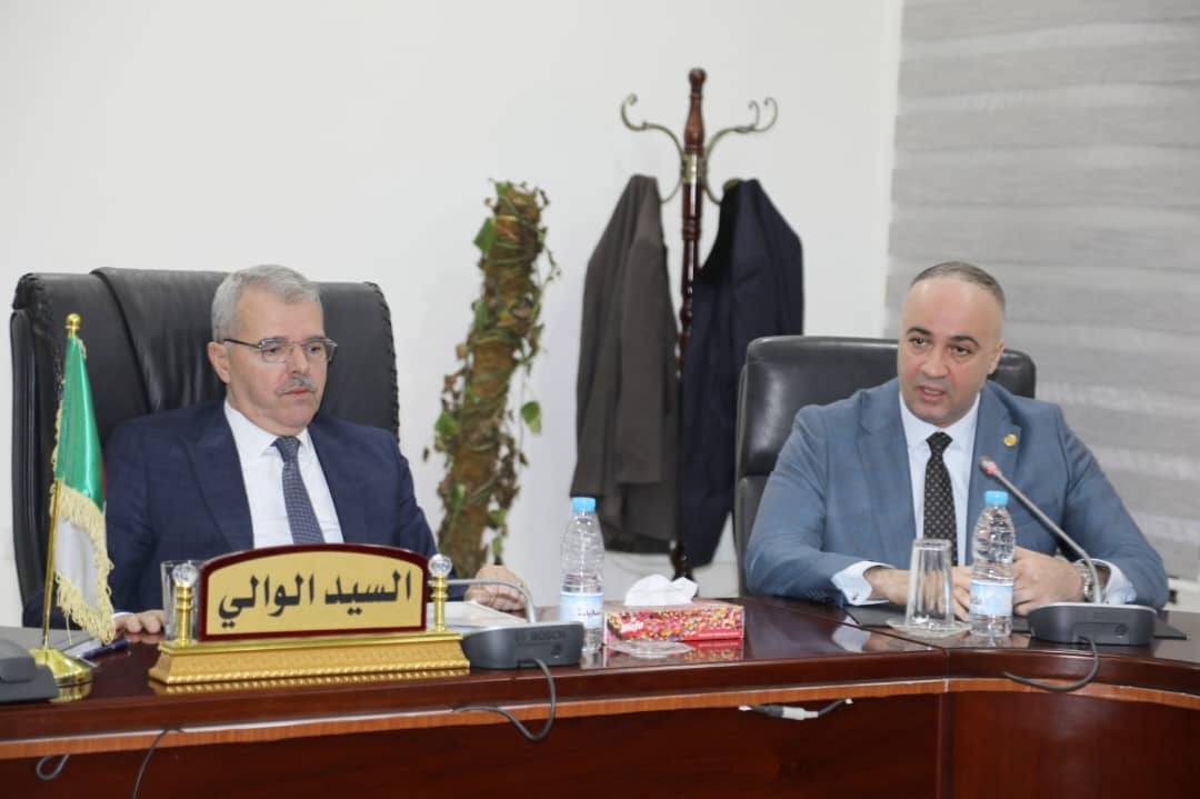 في المستهل، عقد وفد البعثة اجتماعاً بحضور المدراء التنفيذيين المعنيين بالقطاع الفلاحي، ترأسه السيد كمال حاجي، والي ولاية سيدي بلعباس، بحضور رئيس المجلس الشعبي الولائي، حيث قدم السيد الوالي عرضاً مفصلاً حول وضعية القطاع الفلاحي بالولاية استعرض خلاله أبرز المؤشرات والأرقام، لاسيما ما تعلق بالمساحة الفلاحية الإجمالية، الأراضي المزروعة والمسقية، عدد الآبار، وضعية العقار الفلاحي، حملة الحرث والبذر، قدرات تخزين الحبوب والمشاريع المبرمجة لتعزيزها، فضلاً عن الكهرباء الفلاحية ودورها في دعم الاستثمار والإنتاج، ليتناول بعدها السيد لخضر مولاي سعدون، الكلمة التي شرح فيها طبيعة مهمة البعثة والأهداف المتوخاة منها.