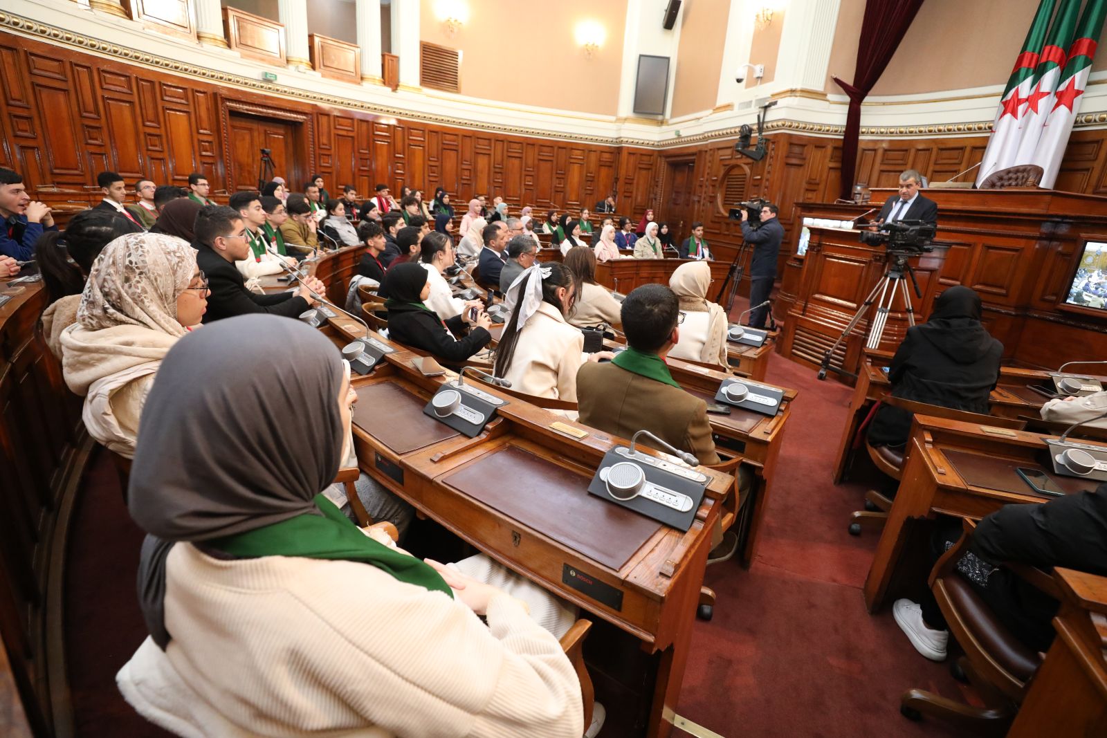 السيد عزوز ناصري ألقى بالمناسبة كلمة شدد فيها على أهمية هذه الهيئة التشريعية التي تعد تجربة فريدة في حياة هؤلاء الشابات و الشبان مبديا اعتزازه بمستوى النضج الذي ابانوا عنه و بدرجة الوعي الذي أظهروه فيما يخص قضايا المجتمع عامة و فئتي الطفولة و الشباب خاصة مصرحا بأن ما لمسه منهم يجعله يصرح بأنه لا خوف على الجزائر، داعيا إياهم بالمناسبة بالتمسك بمبادئ رسالة نوفمبر و الاعتزاز بوطنهم و بأمجاد اجدادهم التي يجب عليهم ان يجعلوا منها نبراسا من اجل مستقبل الجزائر المنتصرة التي يرسي دعائمها السيد عبد المجيد تبون، رئيس الجمهورية.
