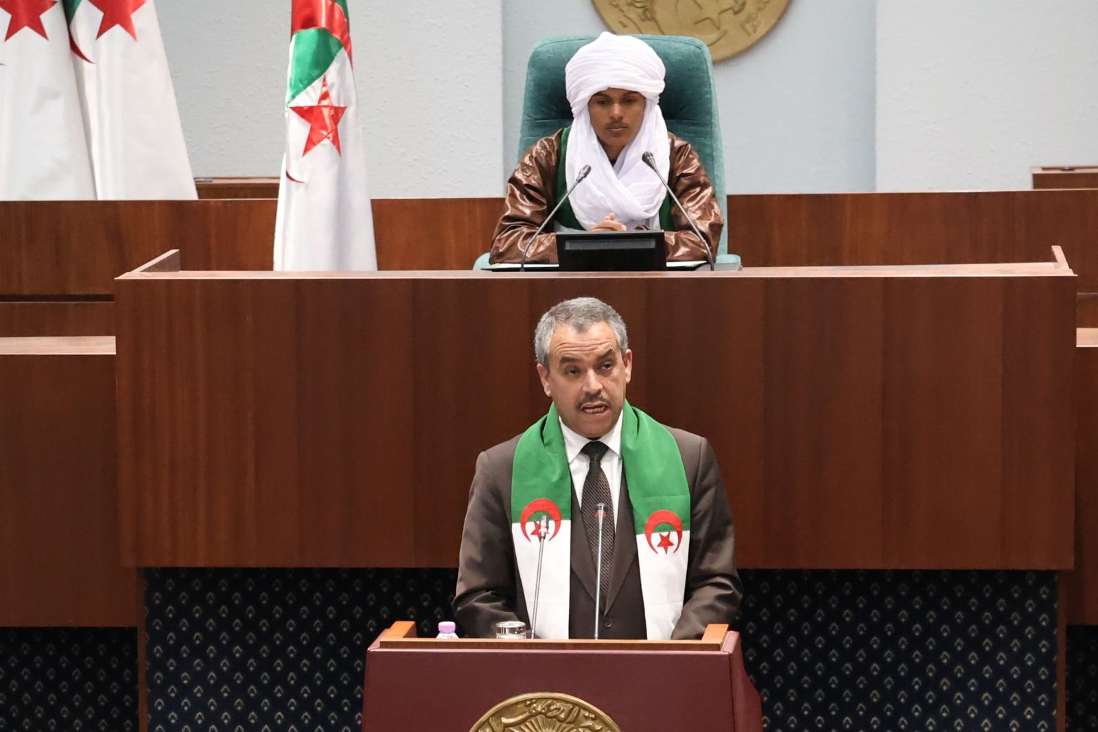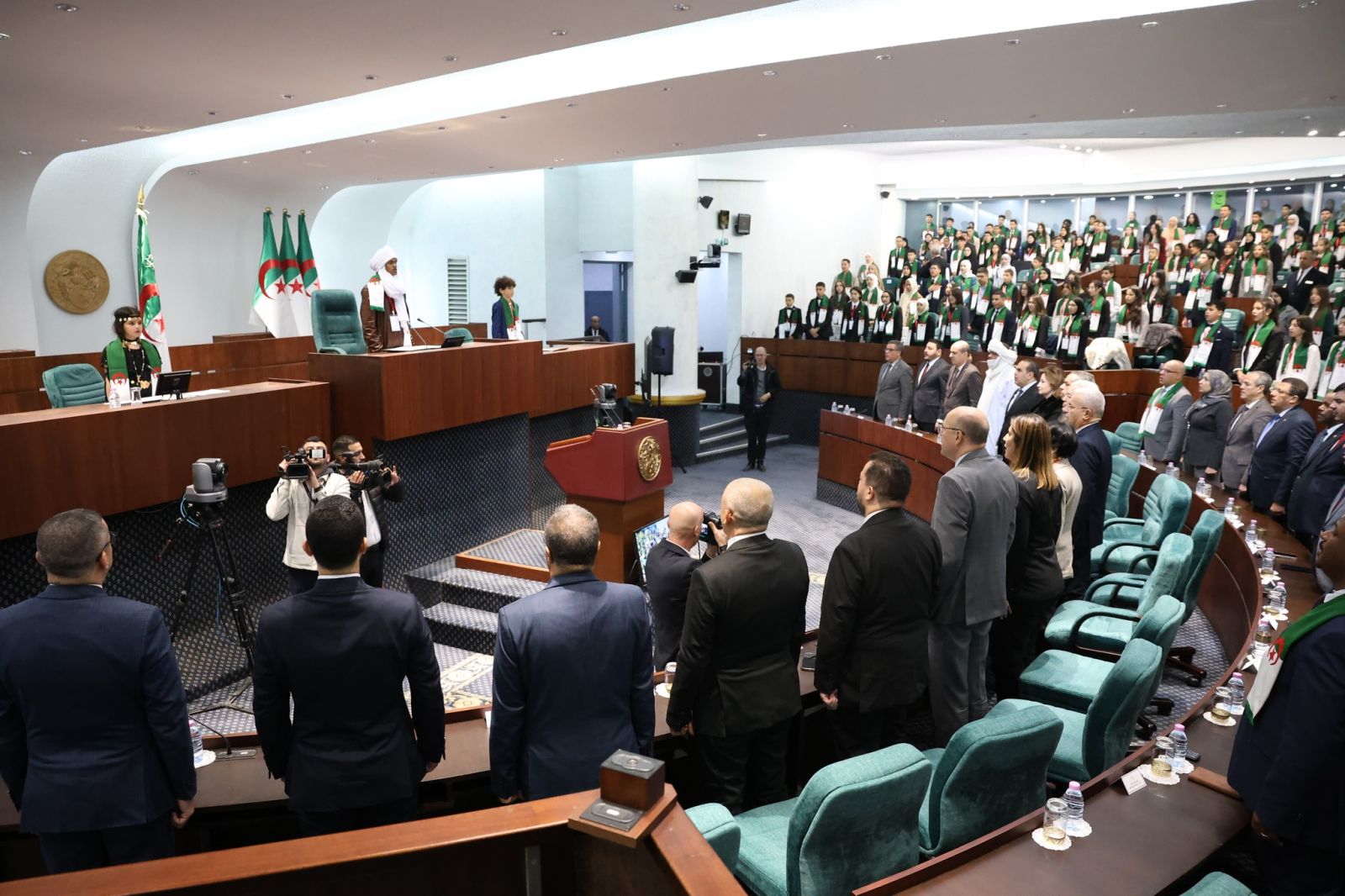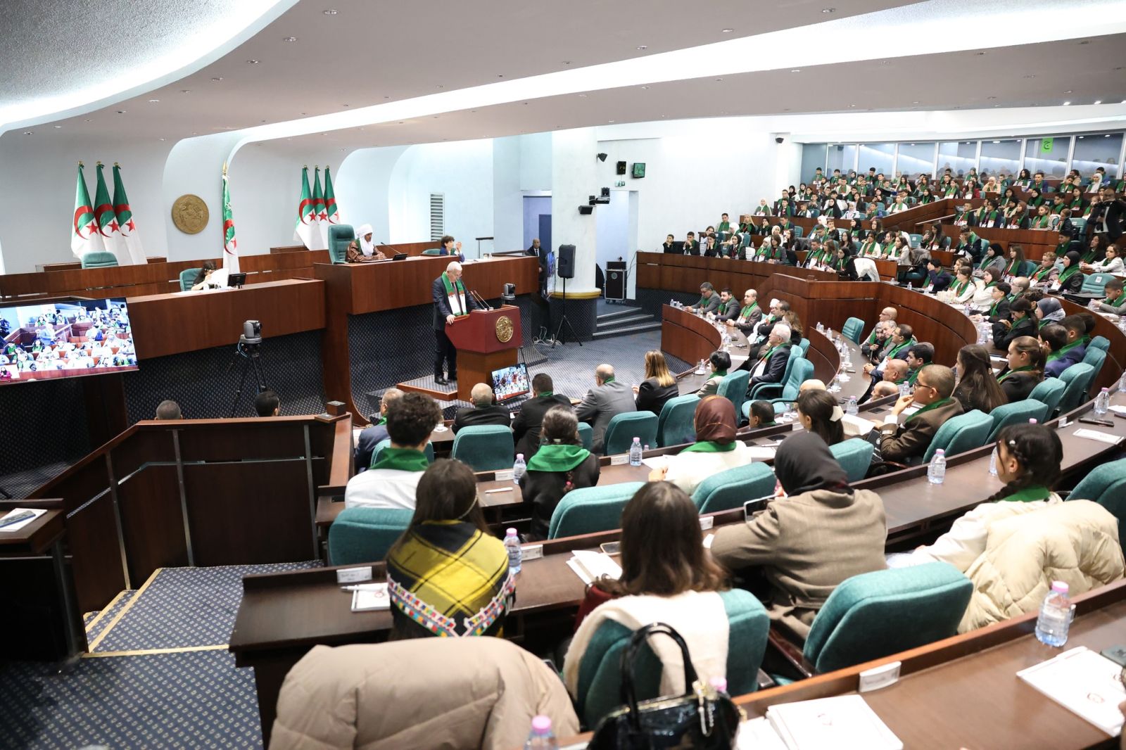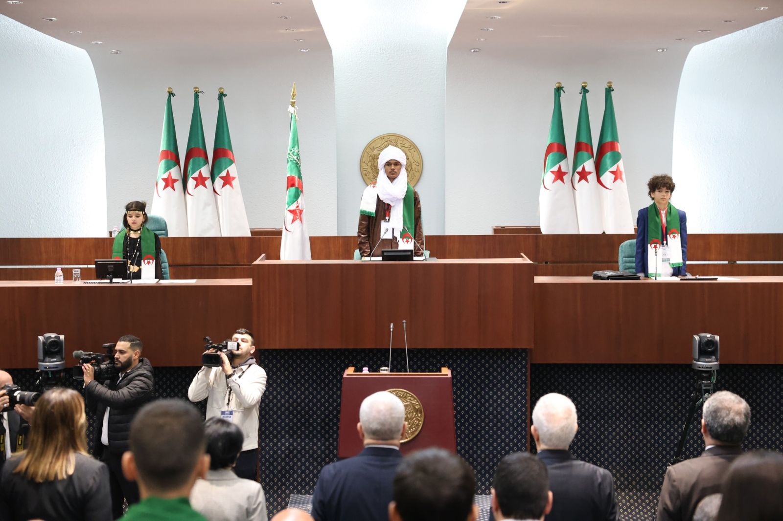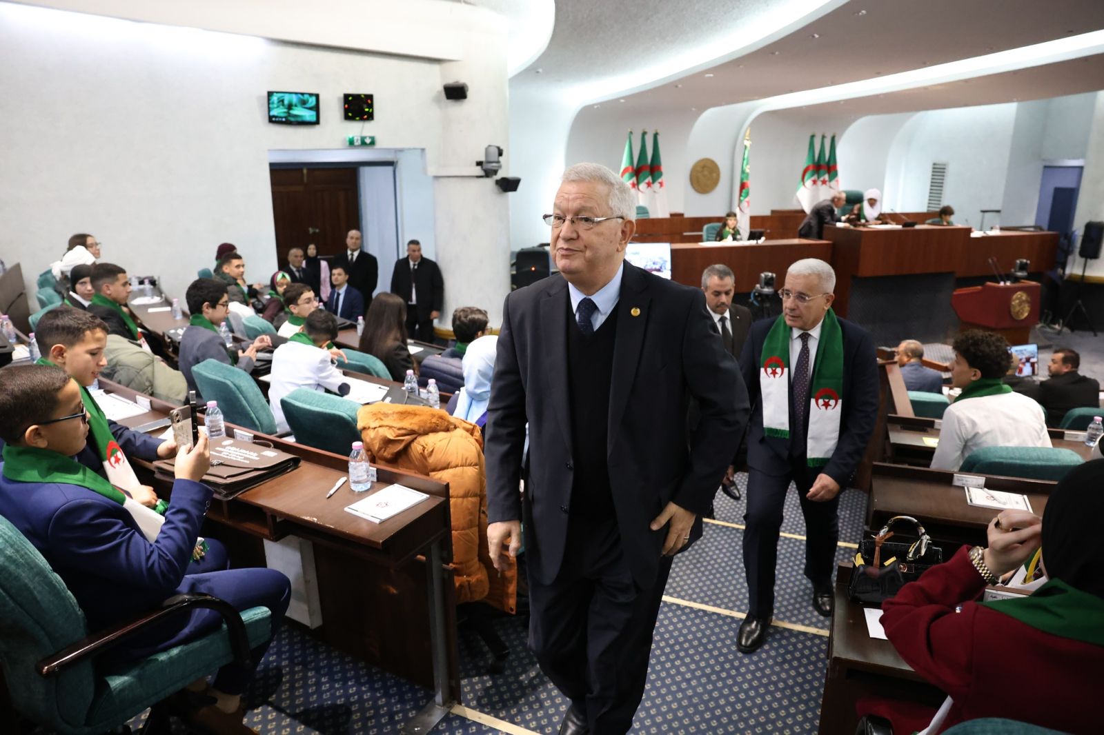 السيد عزوز ناصري، رئيس مجلس الأمة، يشارك اليوم، الإثنين 22 ديسمبر 2025، في مراسم افتتاح الجلسة الأولى لـ #برلمان_الطفل، التي أشرف عليها السيد ابراهيم بوغالي، رئيس المجلس الشعبي الوطني، والمنعقدة بمقر المجلس، بالجزائر العاصمة