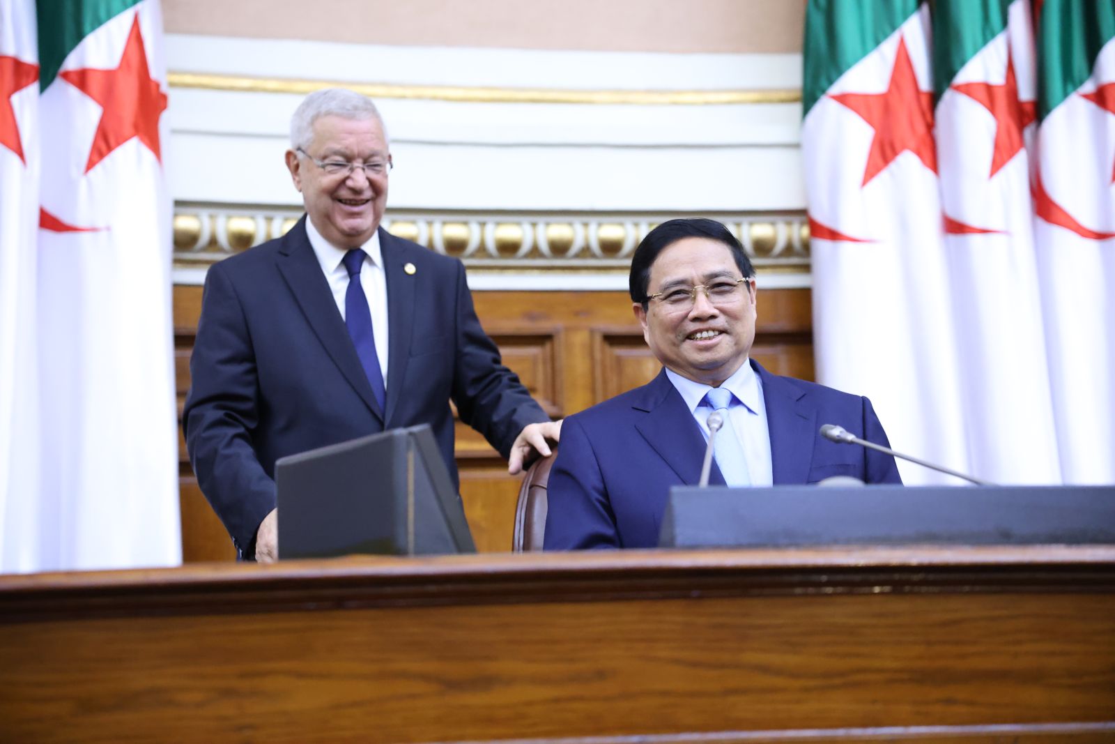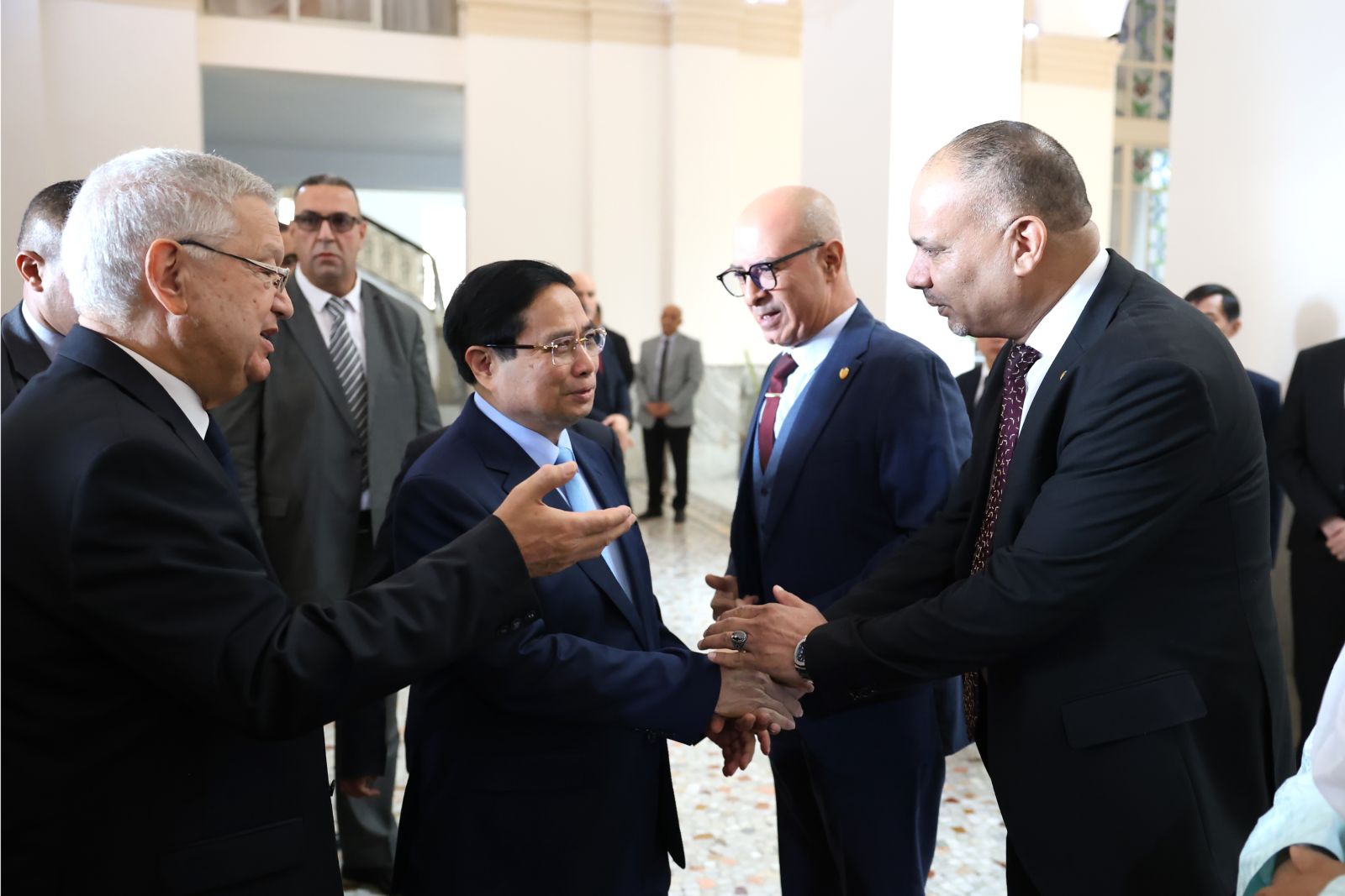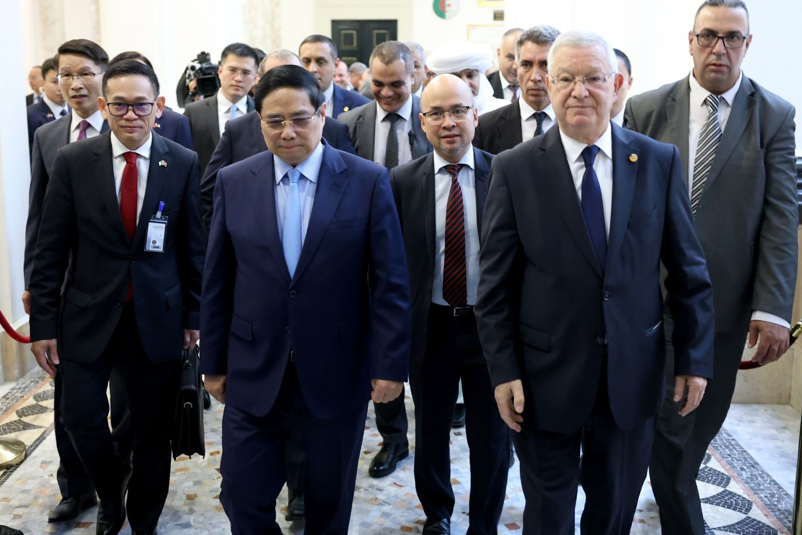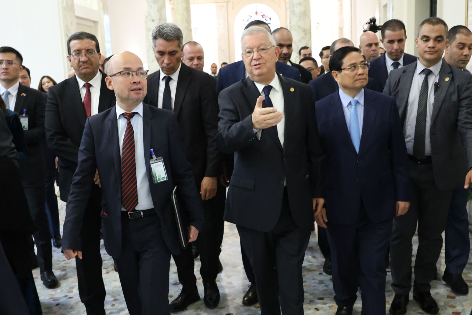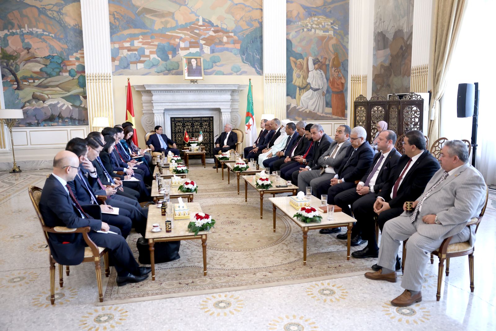 من جانبه، عبر السيد فام مينه شينه، رئيس وزراء جمهورية فيتنام الاشتراكية، عن شكره العميق لحفاوة الترحاب والاستقبال، وهو دليل على خصوصية العلاقات التاريخية التي تجمع الشعبين، سواء خلال فترة الكفاح ضد المستعمر، وما بعدها خلال فترة بناء الدولة المستقلة... وشدّد السيد الوزير الأول على الأهمية الاستراتيجية التي توليها فيتنام لتطوير تعاونها مع الجزائر في مجالات الفلاحة والصناعة والمجال الثقافي، ومجالات أخرى لا حدود لها، داعيًا إلى تحويل الإرادة السياسية القائمة إلى مشاريع واقعية قادرة على رفع مستوى المبادلات التجارية وتوسيع قاعدة الاستثمارات المشتركة.