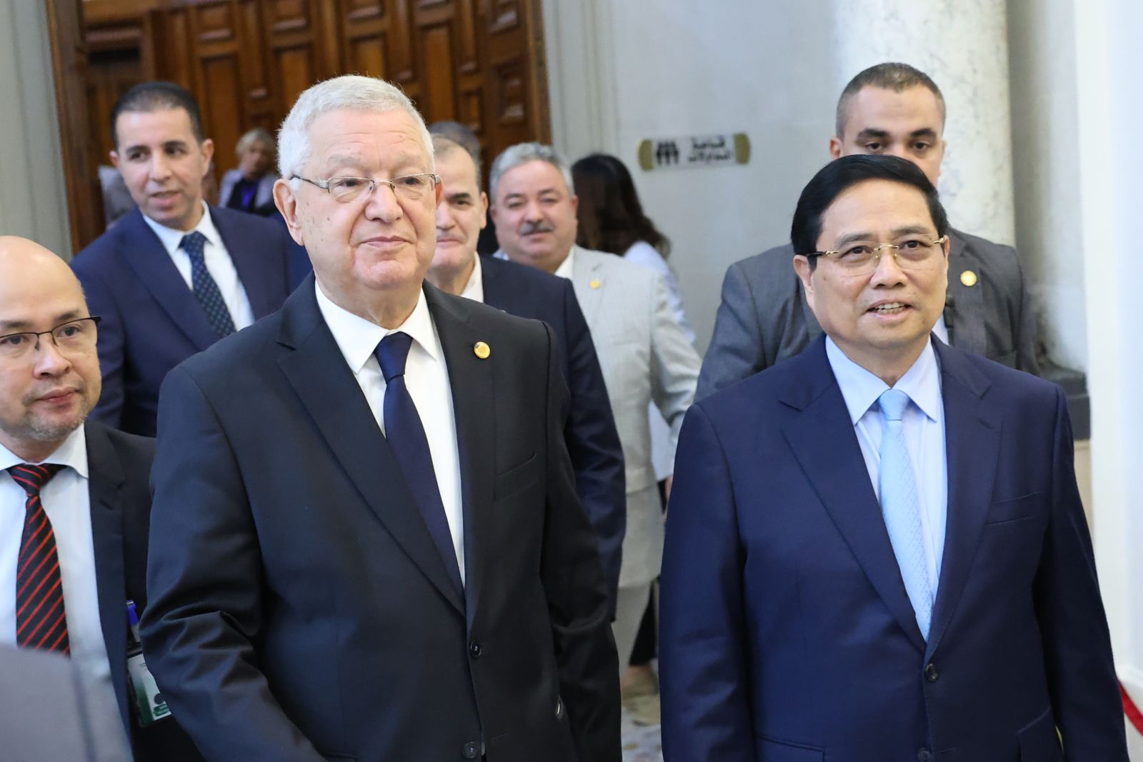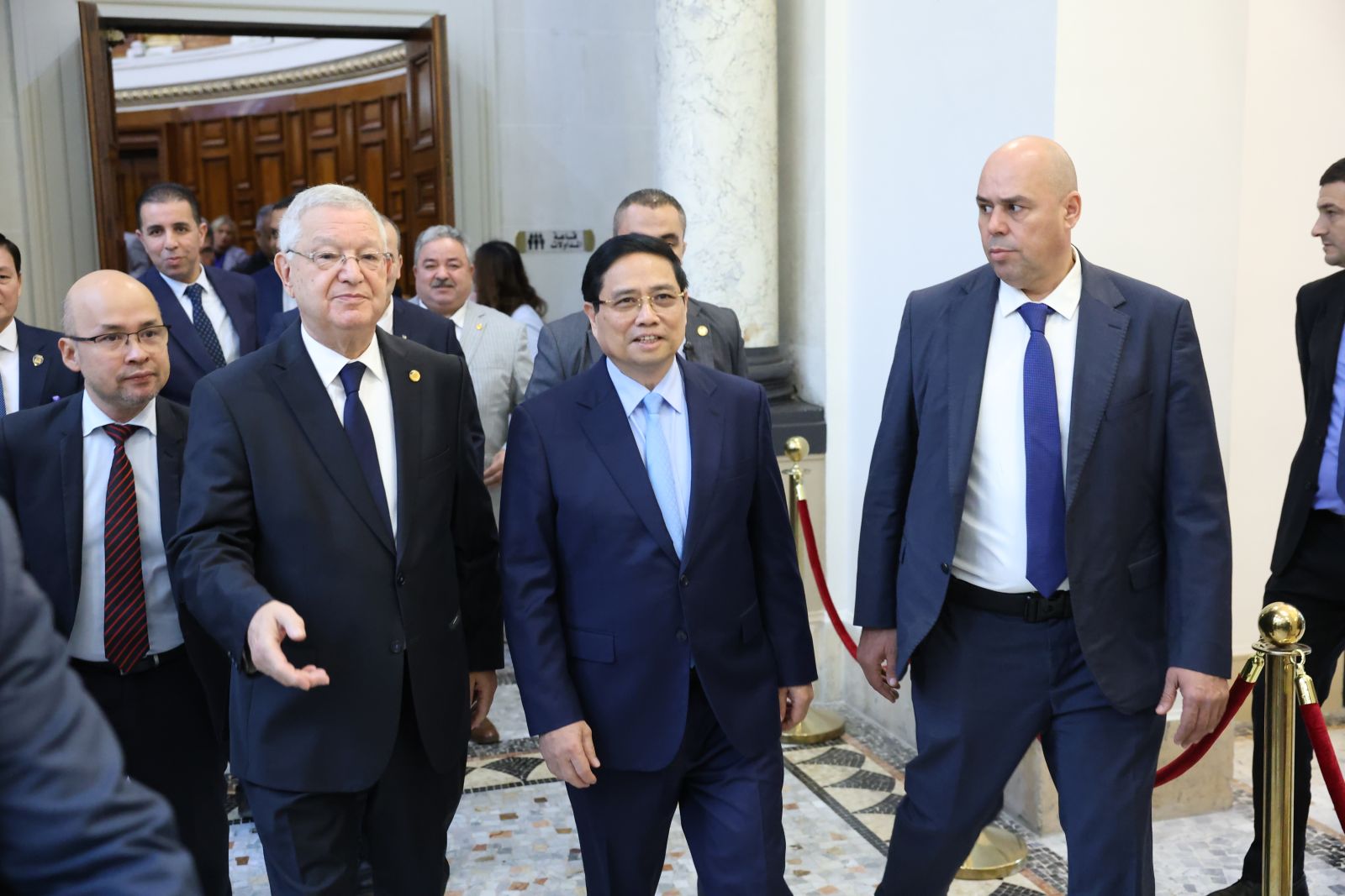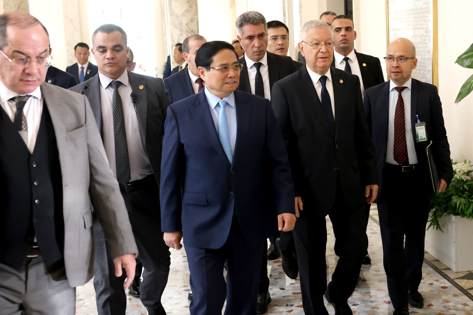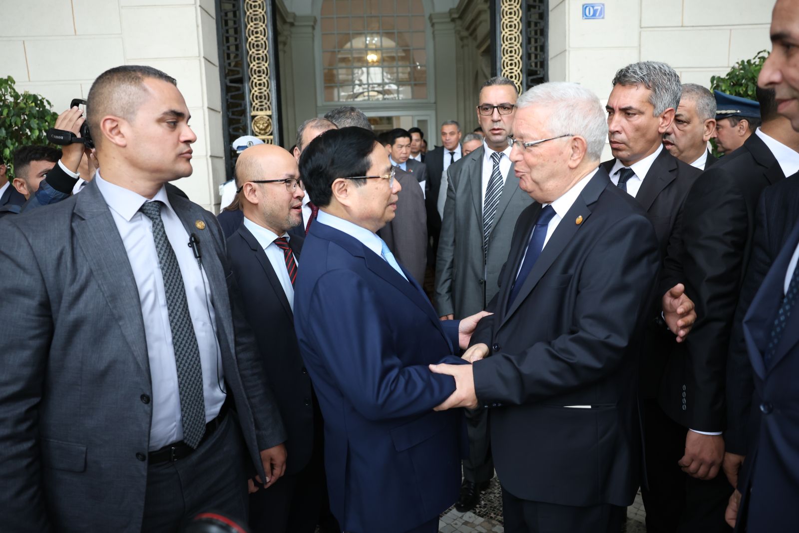 من جانبه، عبر السيد فام مينه شينه، رئيس وزراء جمهورية فيتنام الاشتراكية، عن شكره العميق لحفاوة الترحاب والاستقبال، وهو دليل على خصوصية العلاقات التاريخية التي تجمع الشعبين، سواء خلال فترة الكفاح ضد المستعمر، وما بعدها خلال فترة بناء الدولة المستقلة... وشدّد السيد الوزير الأول على الأهمية الاستراتيجية التي توليها فيتنام لتطوير تعاونها مع الجزائر في مجالات الفلاحة والصناعة والمجال الثقافي، ومجالات أخرى لا حدود لها، داعيًا إلى تحويل الإرادة السياسية القائمة إلى مشاريع واقعية قادرة على رفع مستوى المبادلات التجارية وتوسيع قاعدة الاستثمارات المشتركة.
