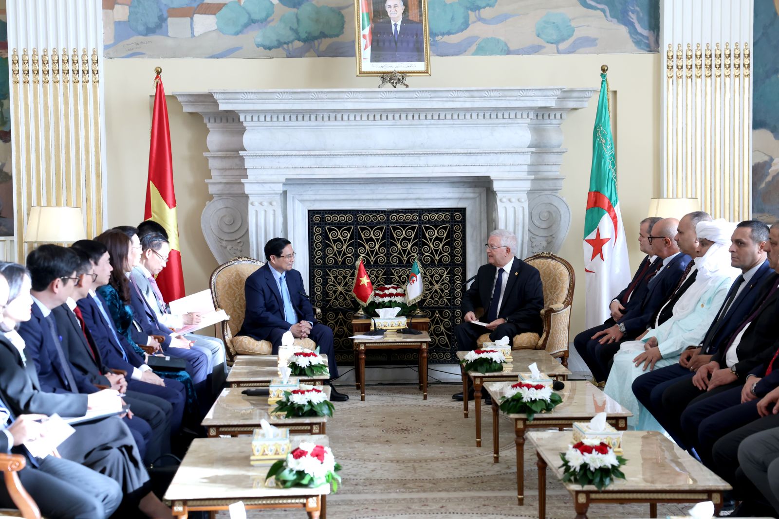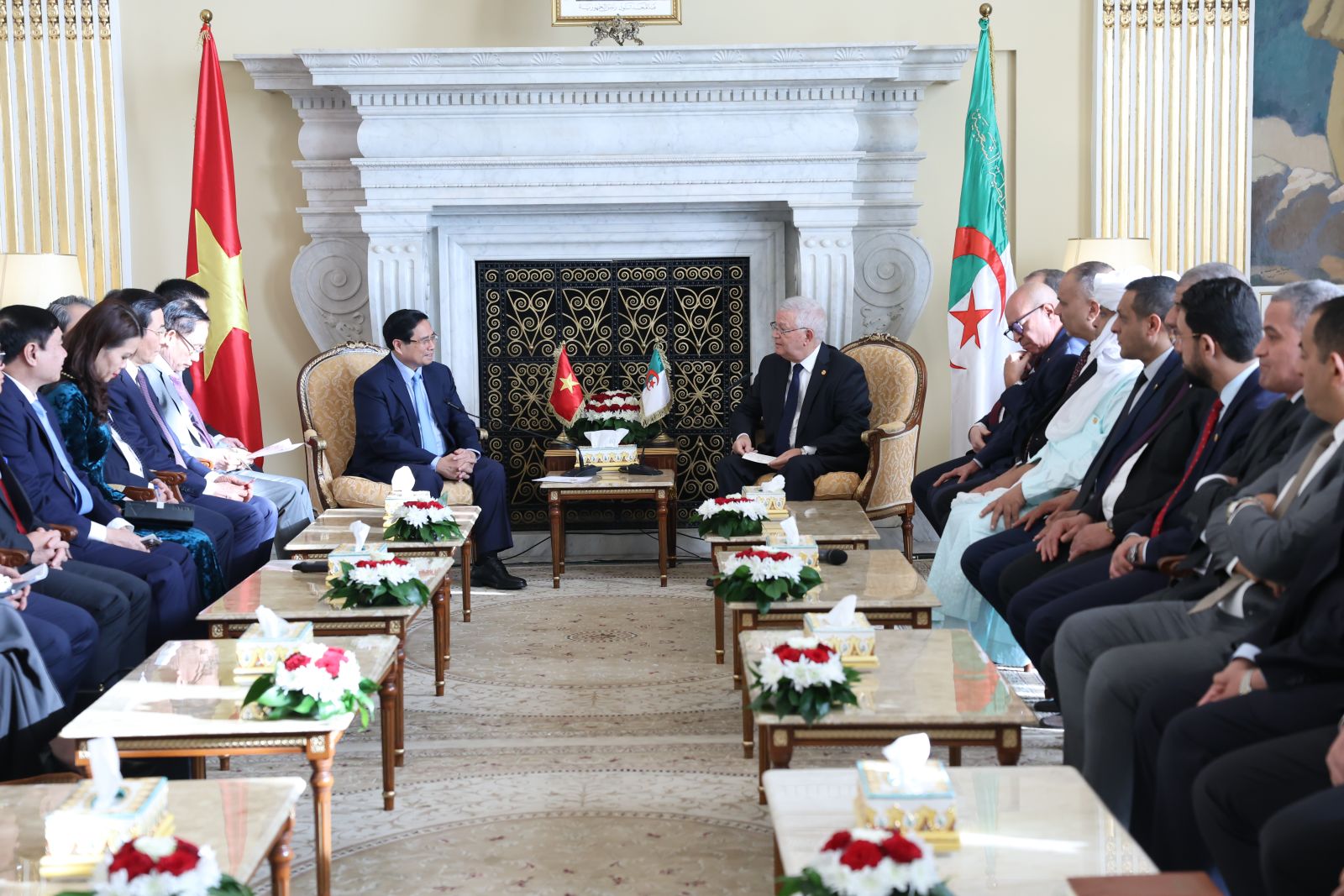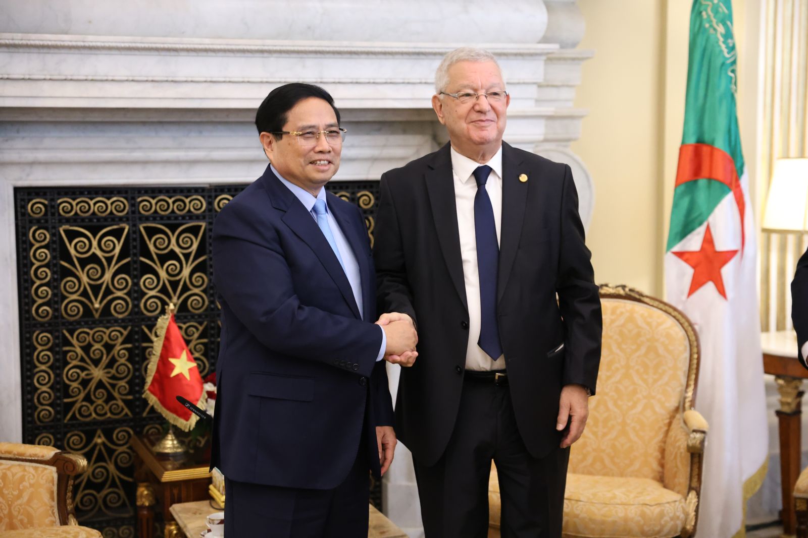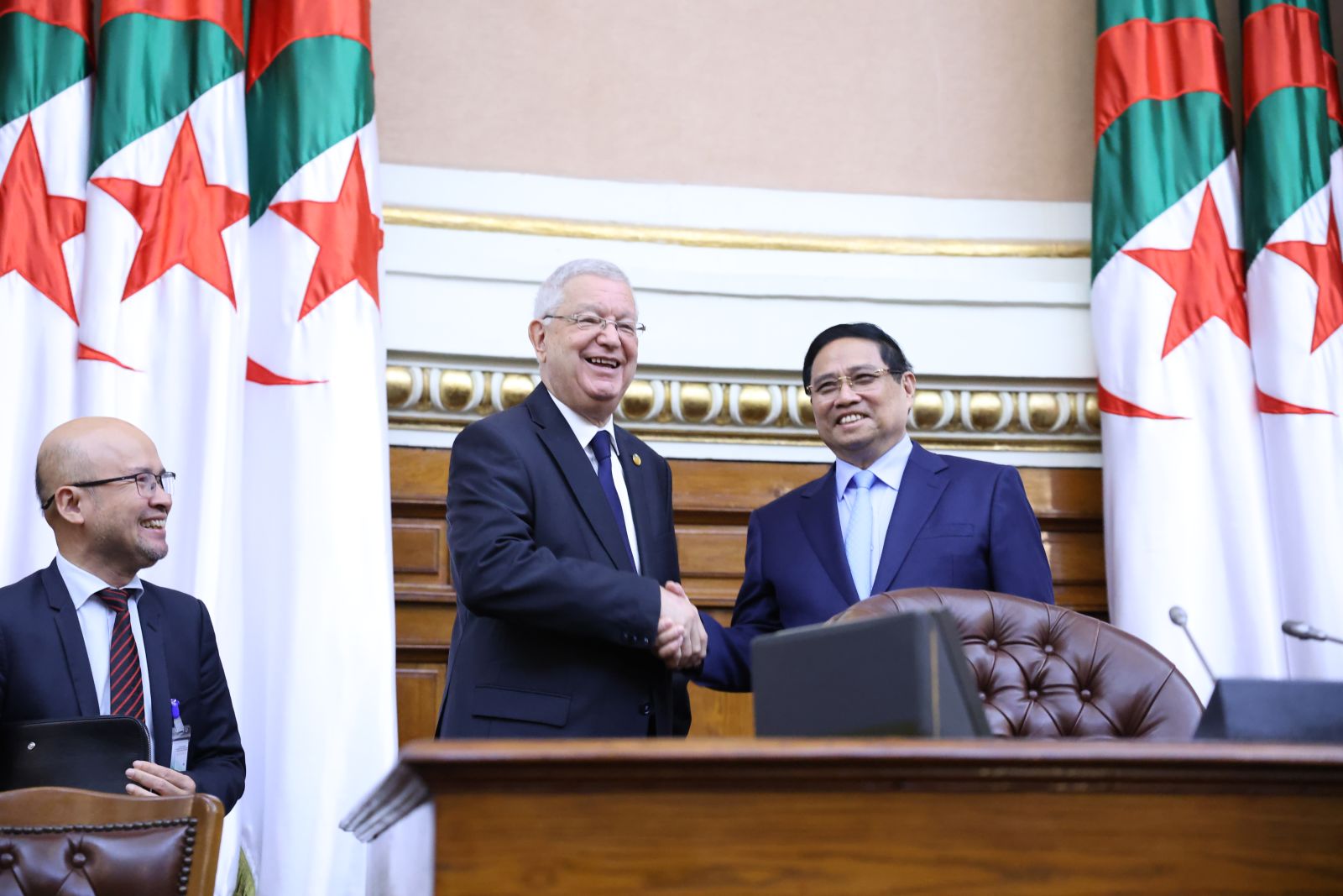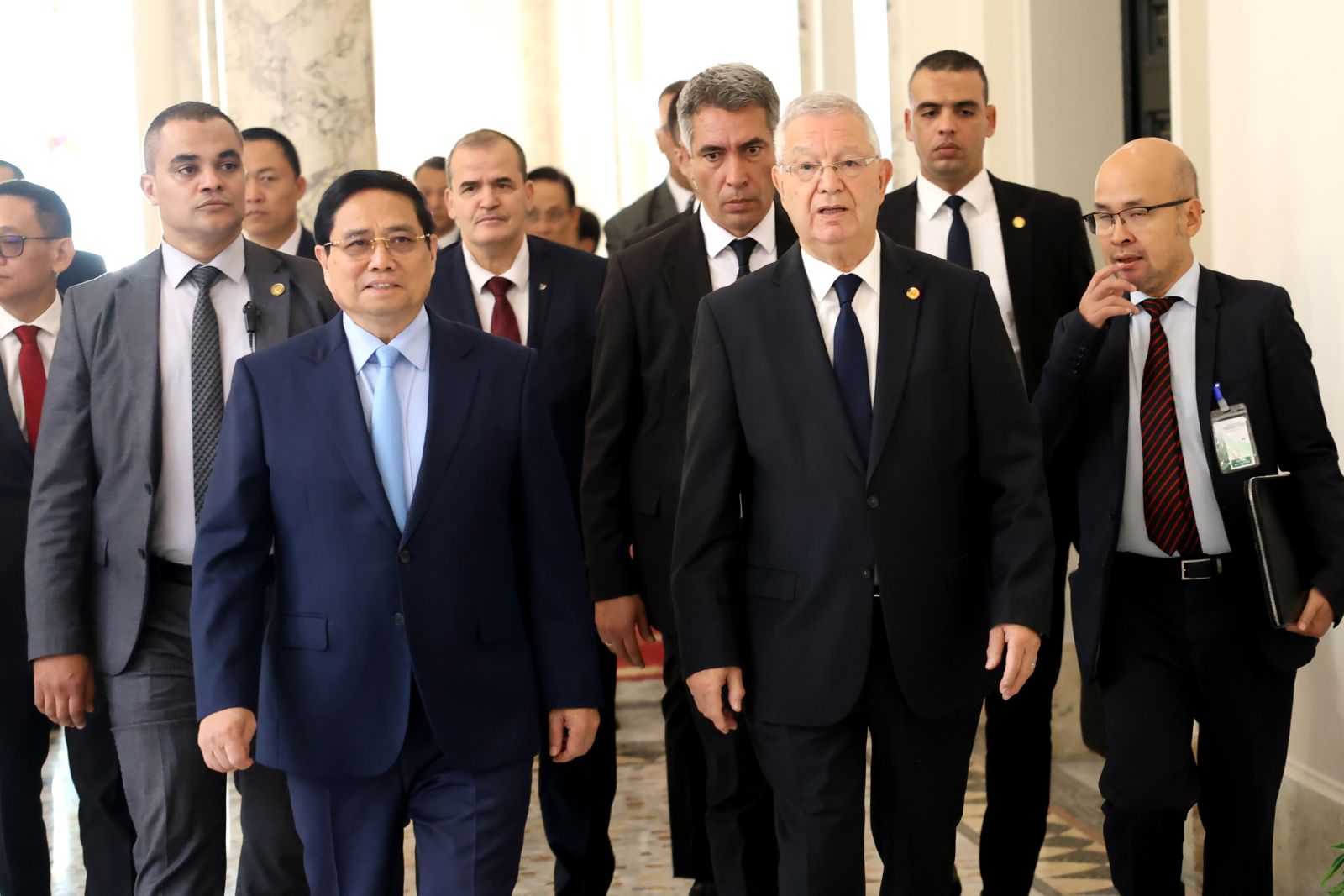 من جانبه، عبر السيد فام مينه شينه، رئيس وزراء جمهورية فيتنام الاشتراكية، عن شكره العميق لحفاوة الترحاب والاستقبال، وهو دليل على خصوصية العلاقات التاريخية التي تجمع الشعبين، سواء خلال فترة الكفاح ضد المستعمر، وما بعدها خلال فترة بناء الدولة المستقلة... وشدّد السيد الوزير الأول على الأهمية الاستراتيجية التي توليها فيتنام لتطوير تعاونها مع الجزائر في مجالات الفلاحة والصناعة والمجال الثقافي، ومجالات أخرى لا حدود لها، داعيًا إلى تحويل الإرادة السياسية القائمة إلى مشاريع واقعية قادرة على رفع مستوى المبادلات التجارية وتوسيع قاعدة الاستثمارات المشتركة.