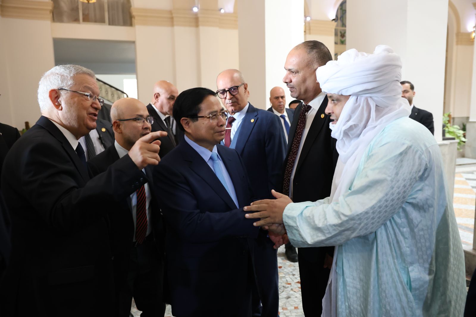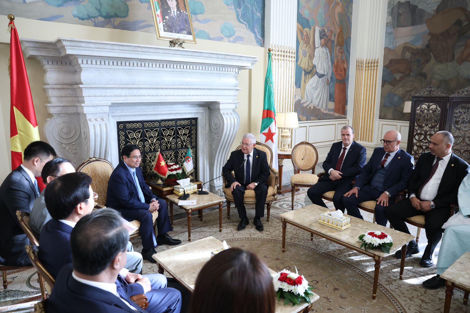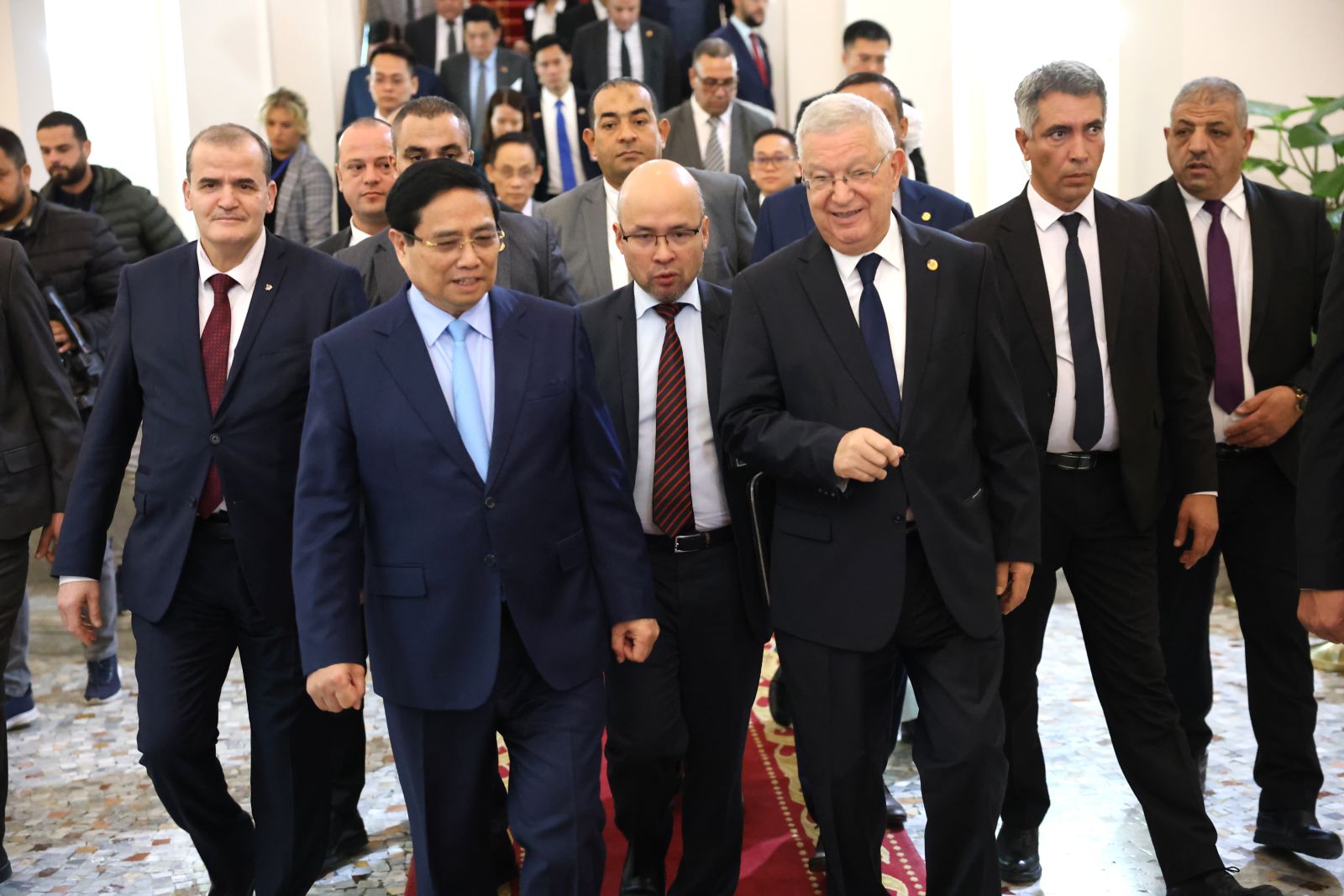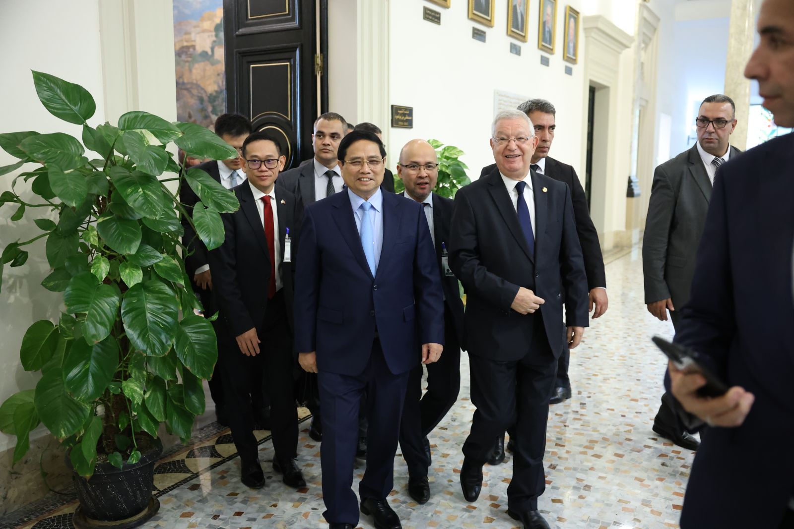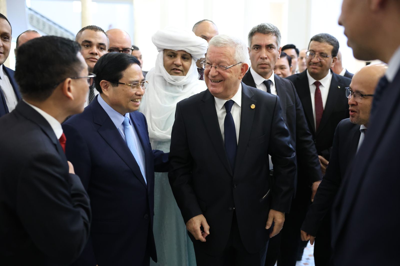 من جانبه، عبر السيد فام مينه شينه، رئيس وزراء جمهورية فيتنام الاشتراكية، عن شكره العميق لحفاوة الترحاب والاستقبال، وهو دليل على خصوصية العلاقات التاريخية التي تجمع الشعبين، سواء خلال فترة الكفاح ضد المستعمر، وما بعدها خلال فترة بناء الدولة المستقلة... وشدّد السيد الوزير الأول على الأهمية الاستراتيجية التي توليها فيتنام لتطوير تعاونها مع الجزائر في مجالات الفلاحة والصناعة والمجال الثقافي، ومجالات أخرى لا حدود لها، داعيًا إلى تحويل الإرادة السياسية القائمة إلى مشاريع واقعية قادرة على رفع مستوى المبادلات التجارية وتوسيع قاعدة الاستثمارات المشتركة.