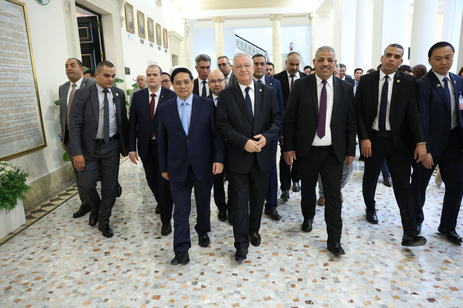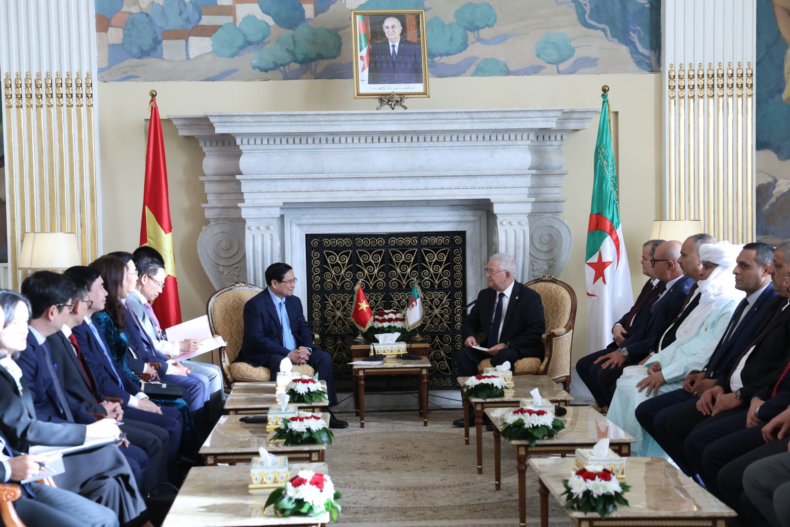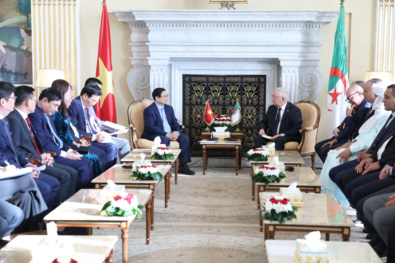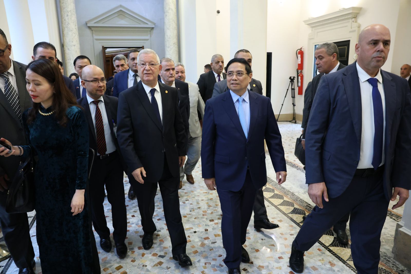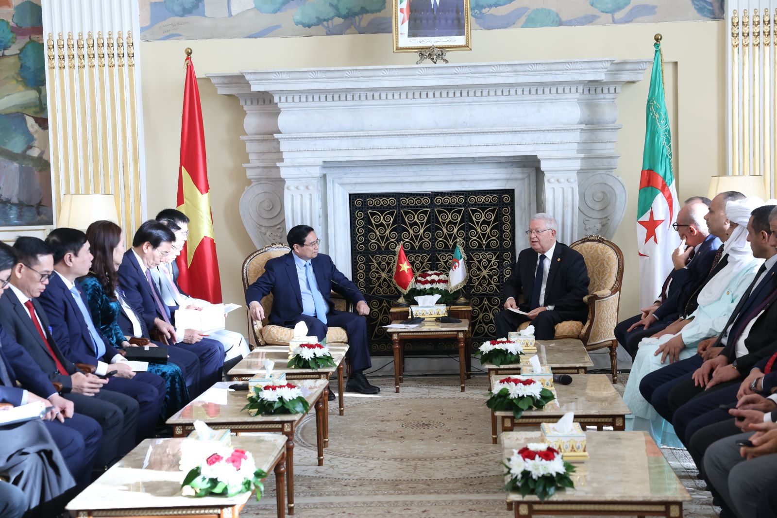 من جانبه، عبر السيد فام مينه شينه، رئيس وزراء جمهورية فيتنام الاشتراكية، عن شكره العميق لحفاوة الترحاب والاستقبال، وهو دليل على خصوصية العلاقات التاريخية التي تجمع الشعبين، سواء خلال فترة الكفاح ضد المستعمر، وما بعدها خلال فترة بناء الدولة المستقلة... وشدّد السيد الوزير الأول على الأهمية الاستراتيجية التي توليها فيتنام لتطوير تعاونها مع الجزائر في مجالات الفلاحة والصناعة والمجال الثقافي، ومجالات أخرى لا حدود لها، داعيًا إلى تحويل الإرادة السياسية القائمة إلى مشاريع واقعية قادرة على رفع مستوى المبادلات التجارية وتوسيع قاعدة الاستثمارات المشتركة.