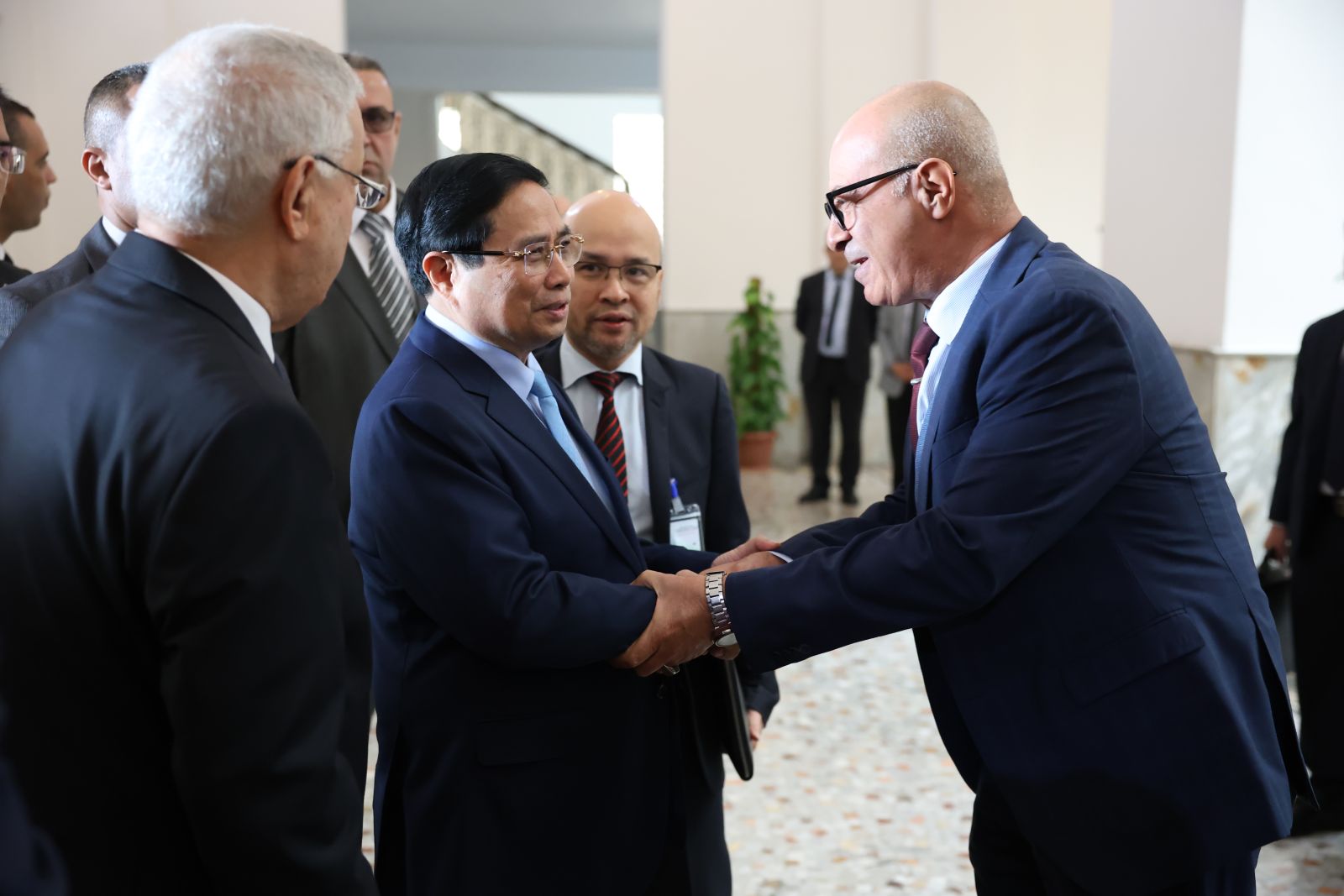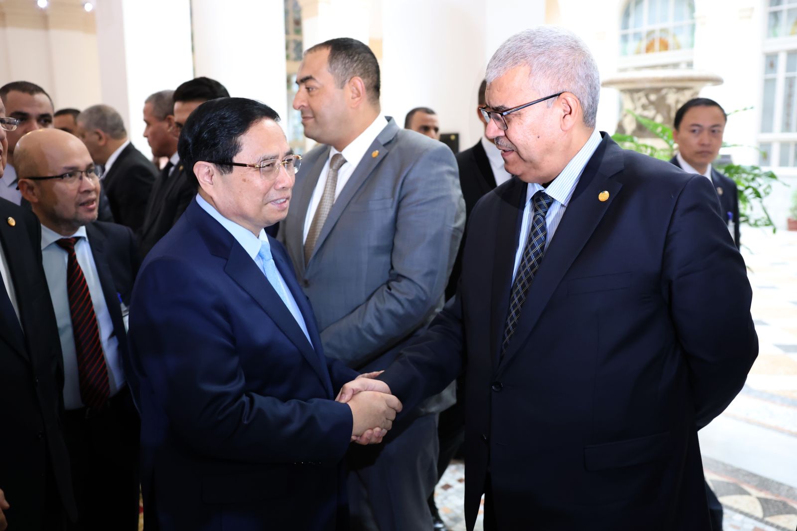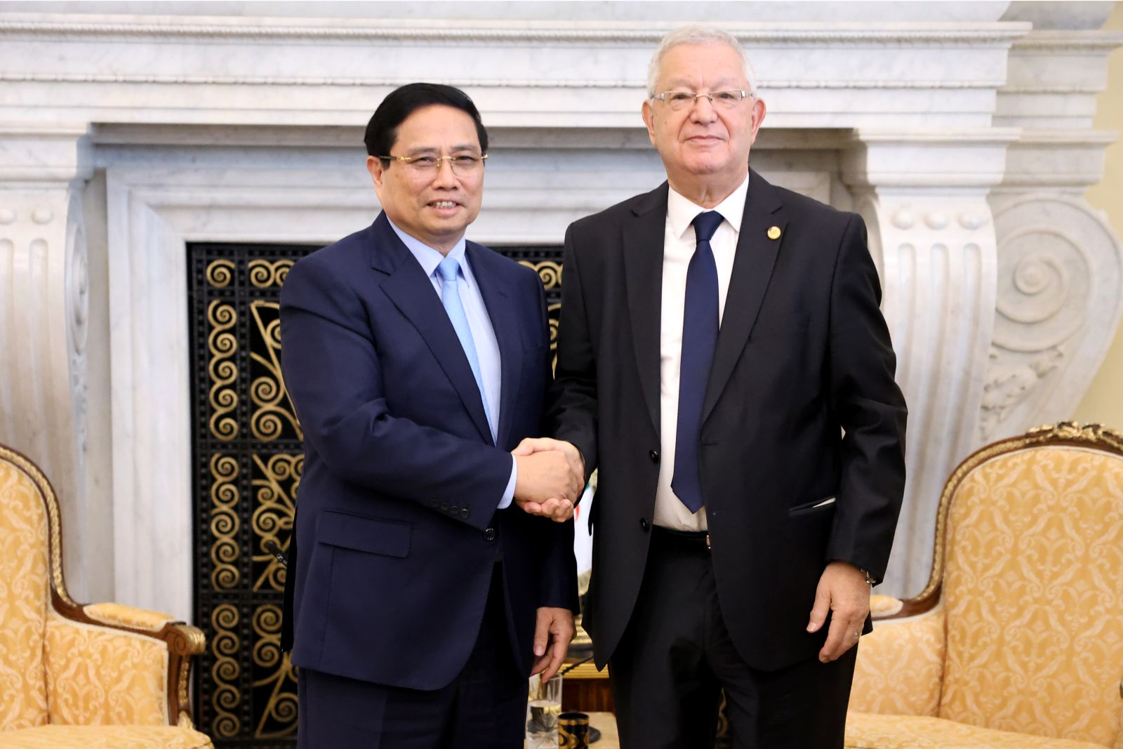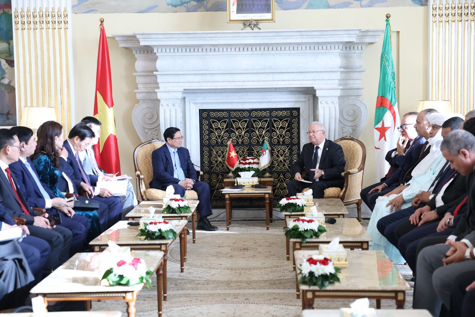 من جانبه، عبر السيد فام مينه شينه، رئيس وزراء جمهورية فيتنام الاشتراكية، عن شكره العميق لحفاوة الترحاب والاستقبال، وهو دليل على خصوصية العلاقات التاريخية التي تجمع الشعبين، سواء خلال فترة الكفاح ضد المستعمر، وما بعدها خلال فترة بناء الدولة المستقلة... وشدّد السيد الوزير الأول على الأهمية الاستراتيجية التي توليها فيتنام لتطوير تعاونها مع الجزائر في مجالات الفلاحة والصناعة والمجال الثقافي، ومجالات أخرى لا حدود لها، داعيًا إلى تحويل الإرادة السياسية القائمة إلى مشاريع واقعية قادرة على رفع مستوى المبادلات التجارية وتوسيع قاعدة الاستثمارات المشتركة.