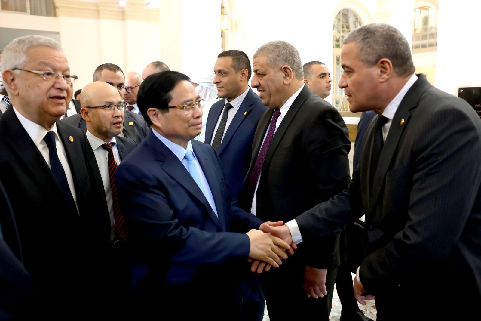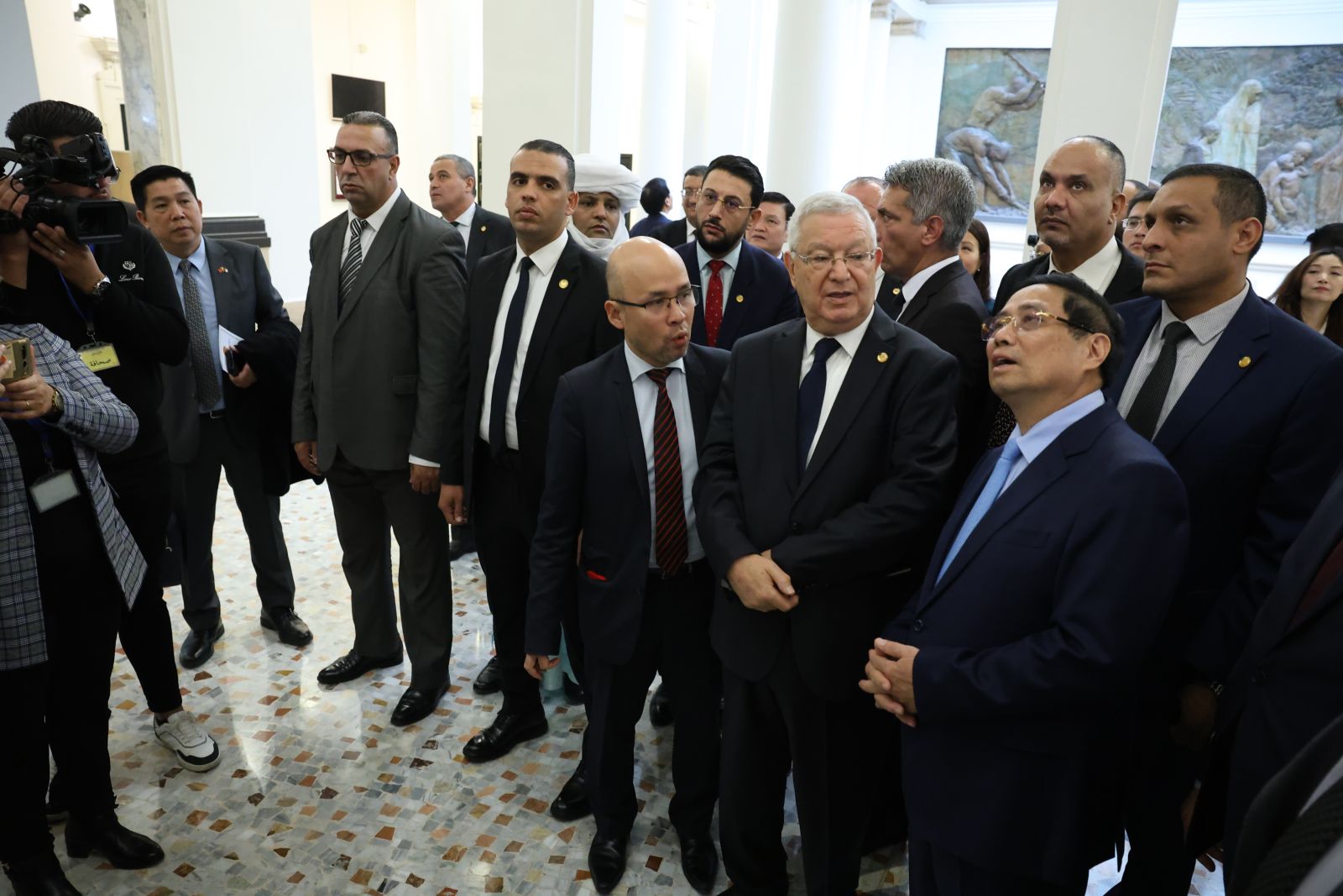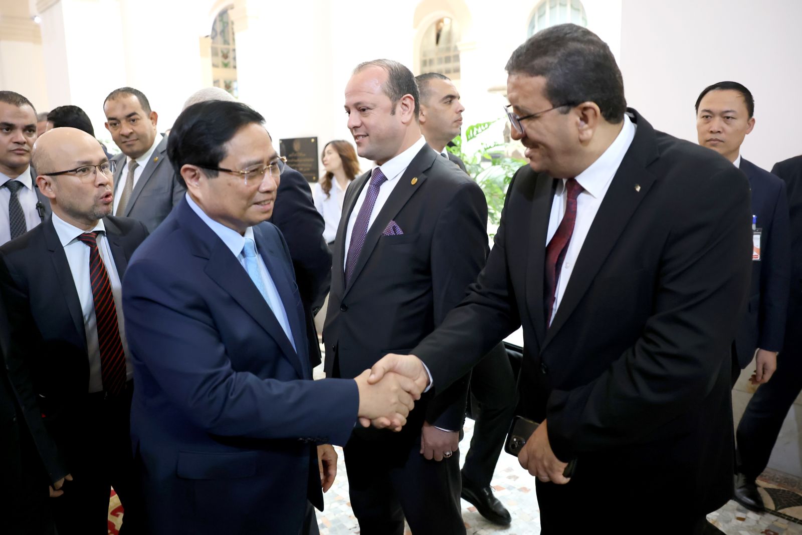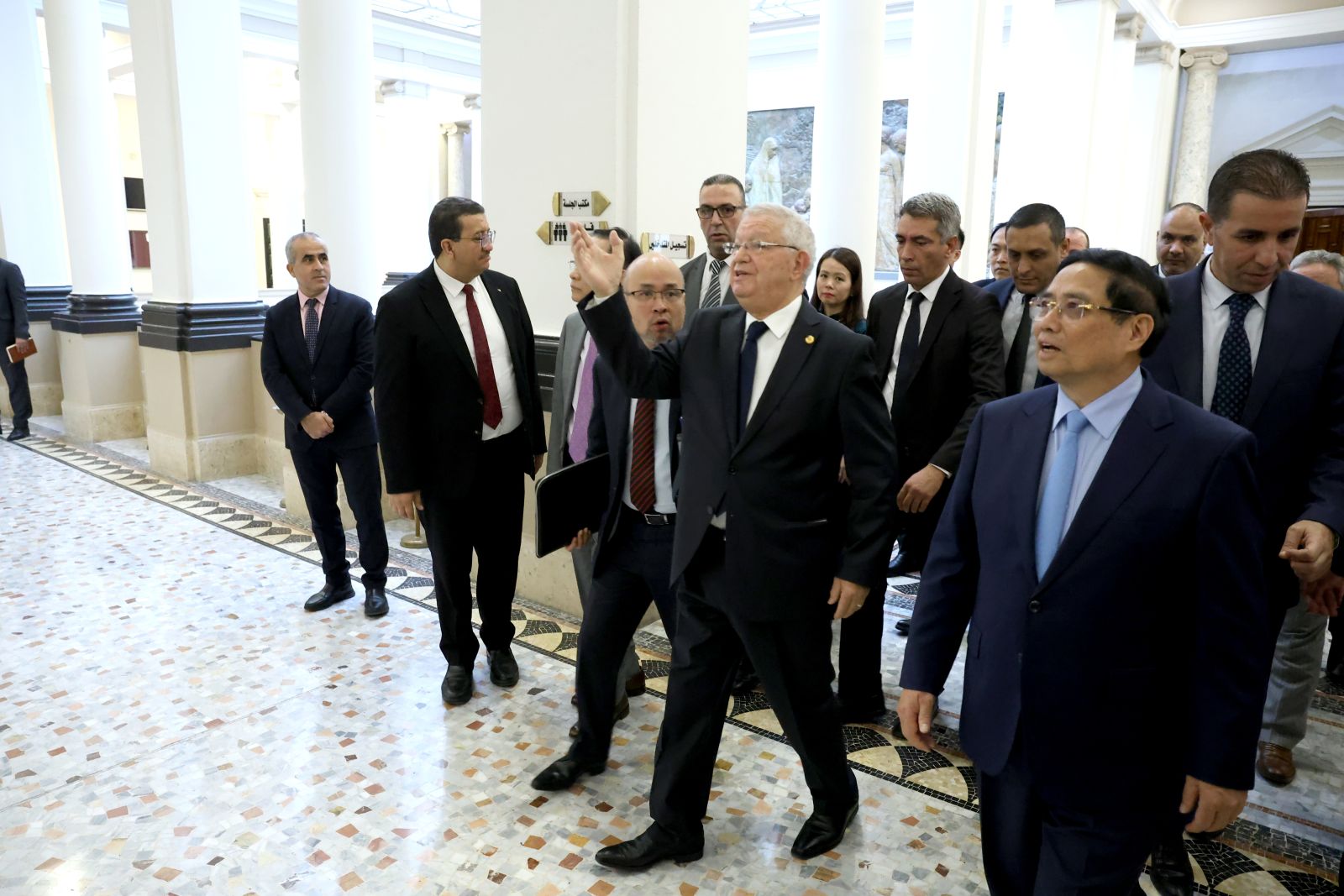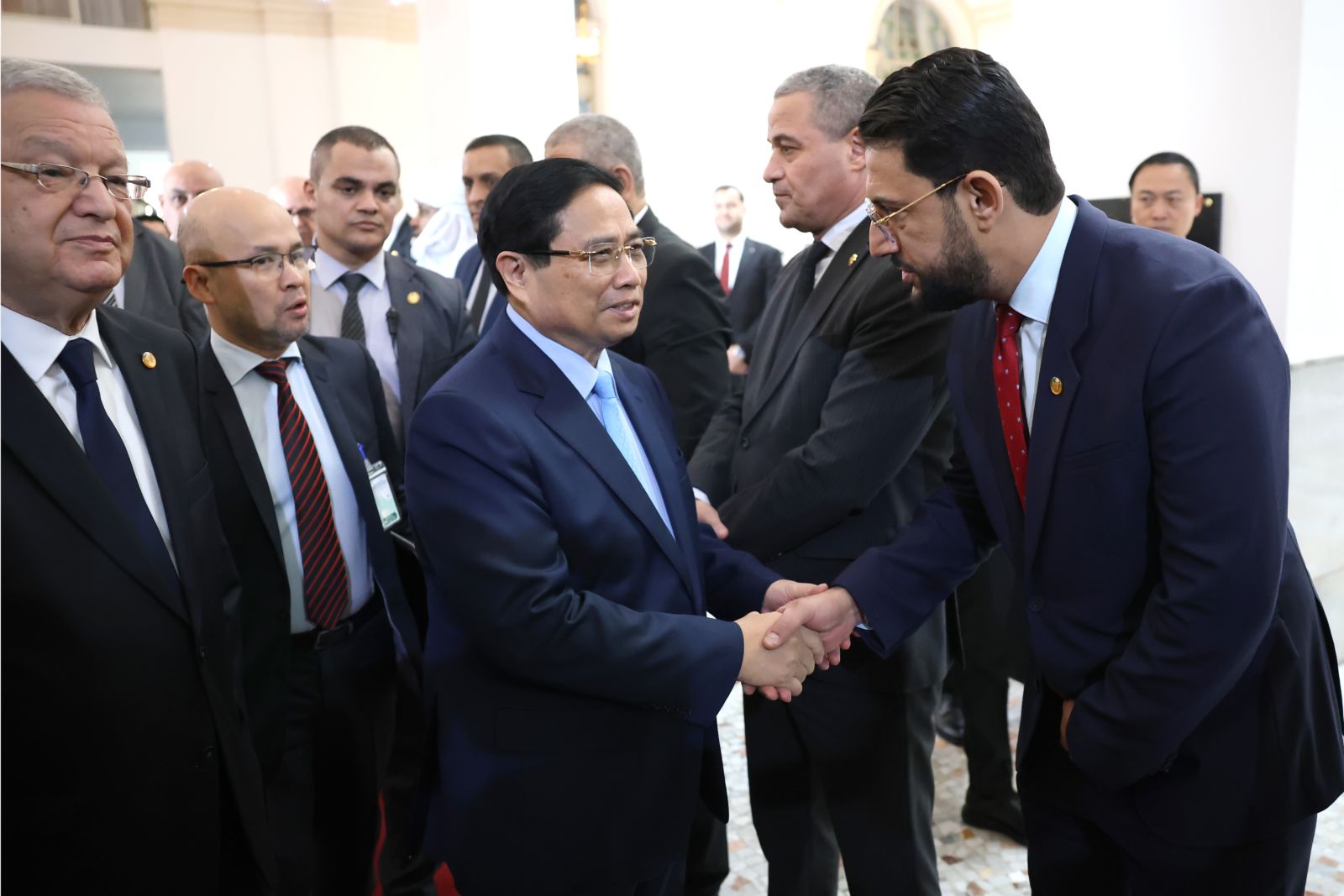 من جانبه، عبر السيد فام مينه شينه، رئيس وزراء جمهورية فيتنام الاشتراكية، عن شكره العميق لحفاوة الترحاب والاستقبال، وهو دليل على خصوصية العلاقات التاريخية التي تجمع الشعبين، سواء خلال فترة الكفاح ضد المستعمر، وما بعدها خلال فترة بناء الدولة المستقلة... وشدّد السيد الوزير الأول على الأهمية الاستراتيجية التي توليها فيتنام لتطوير تعاونها مع الجزائر في مجالات الفلاحة والصناعة والمجال الثقافي، ومجالات أخرى لا حدود لها، داعيًا إلى تحويل الإرادة السياسية القائمة إلى مشاريع واقعية قادرة على رفع مستوى المبادلات التجارية وتوسيع قاعدة الاستثمارات المشتركة.