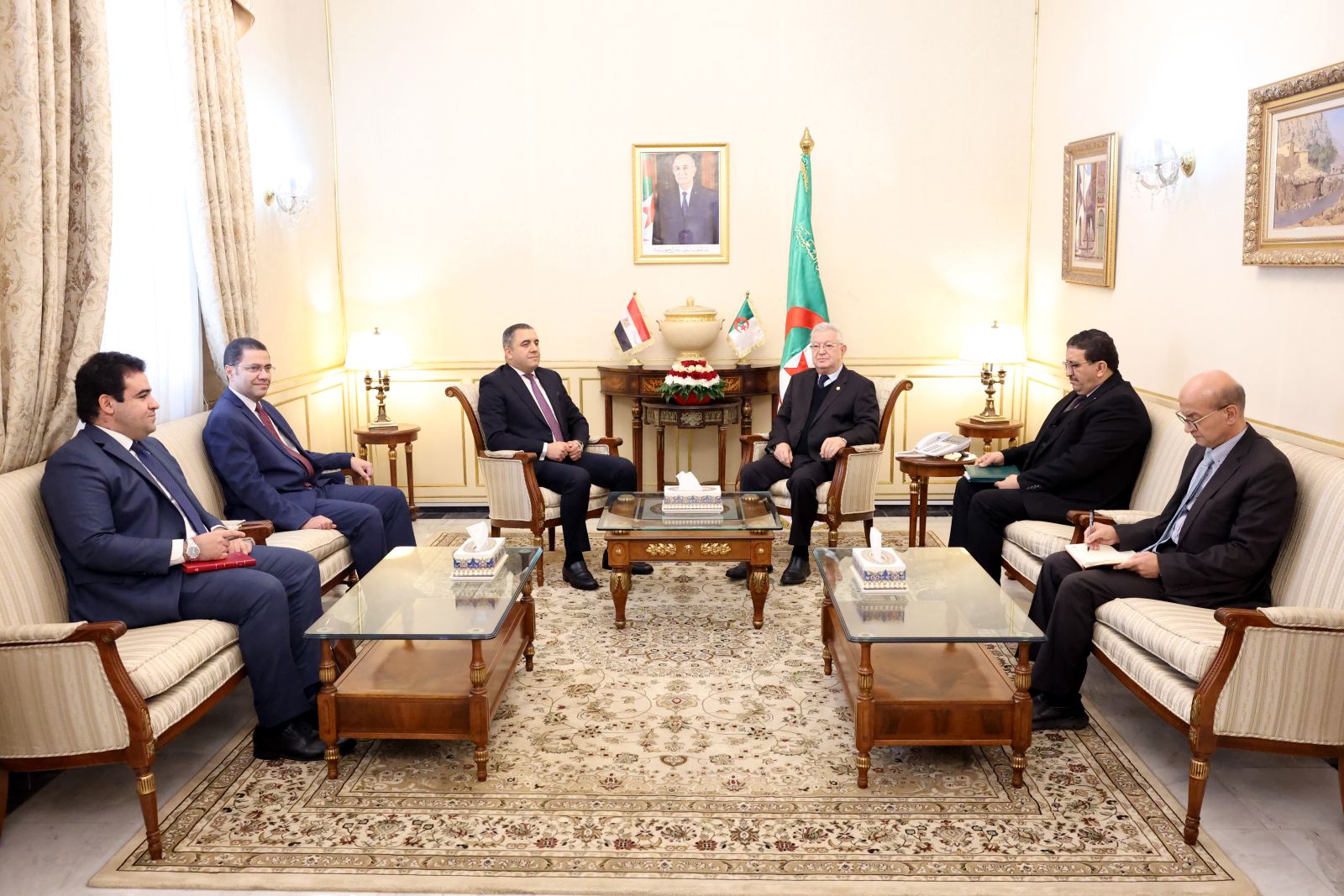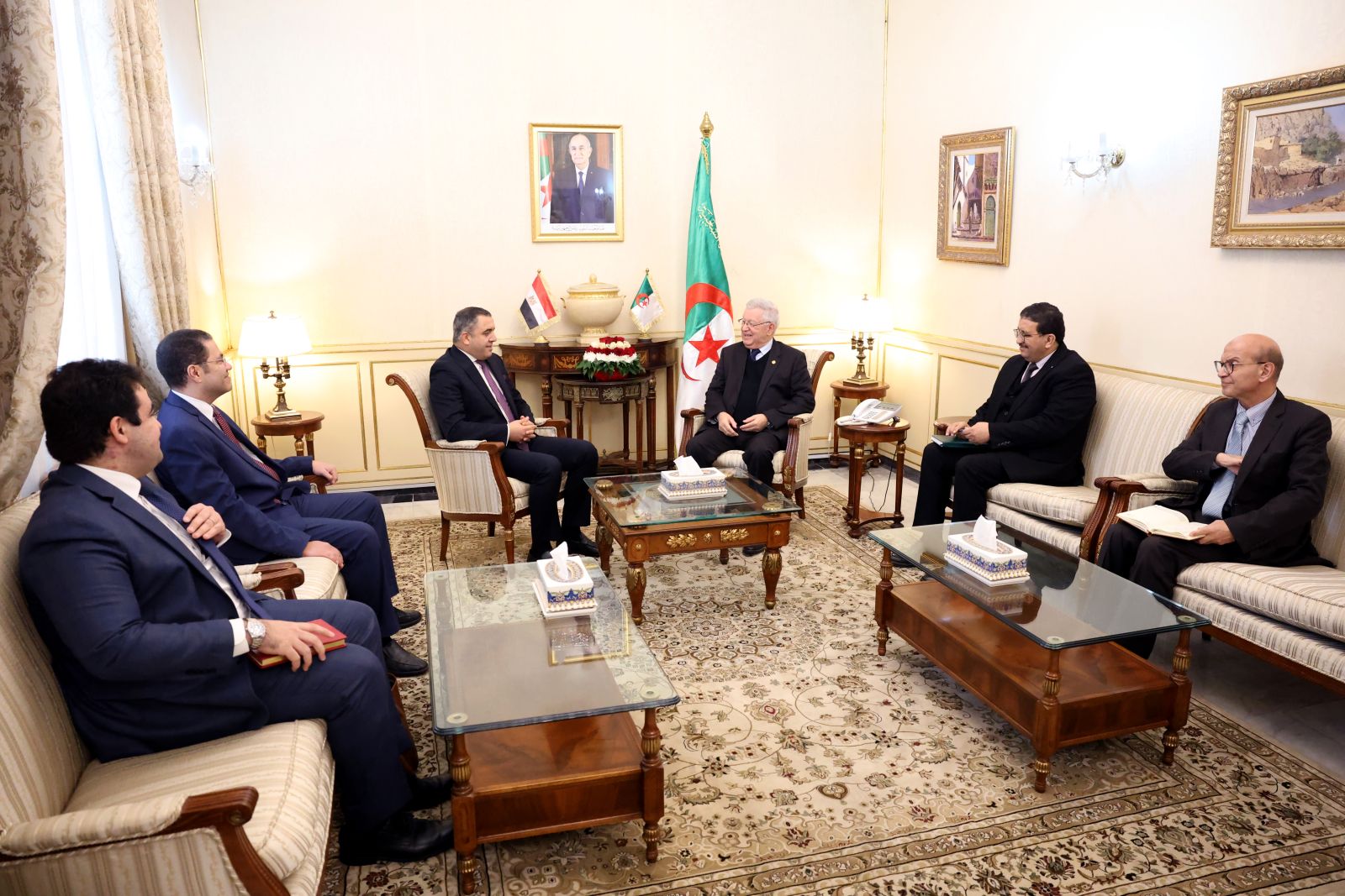 وعلى الصعيد الإقليمي والدولي، أكّد الطرفان تقارب مواقف الجزائر ومصر إزاء القضايا ذات الأولوية، وتمسّكهما بمبادئ ميثاق الأمم المتحدة، ولاسيما احترام سيادة الدول ووحدتها الترابية، ودعم الحلول السلمية للنزاعات. وفي هذا السياق، جدّد السيد رئيس مجلس الأمة التأكيد على الموقف الثابت للجزائر في دعم حقوق الشعب الفلسطيني غير القابلة للتصرّف، وعلى التزامها المبدئي بدعم حق الشعوب في تقرير مصيرها، كما تمّ تبادل الرؤى حول تطورات الأوضاع في ليبيا، والسودان، ومنطقة الساحل، مع التشديد على ضرورة تغليب الحلول السياسية الشاملة، وتعزيز الحوار، ورفض التدخلات الخارجية، بما يخدم الأمن والاستقرار في المنطقة العربية والإفريقية.