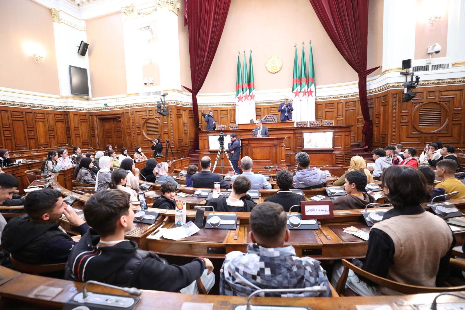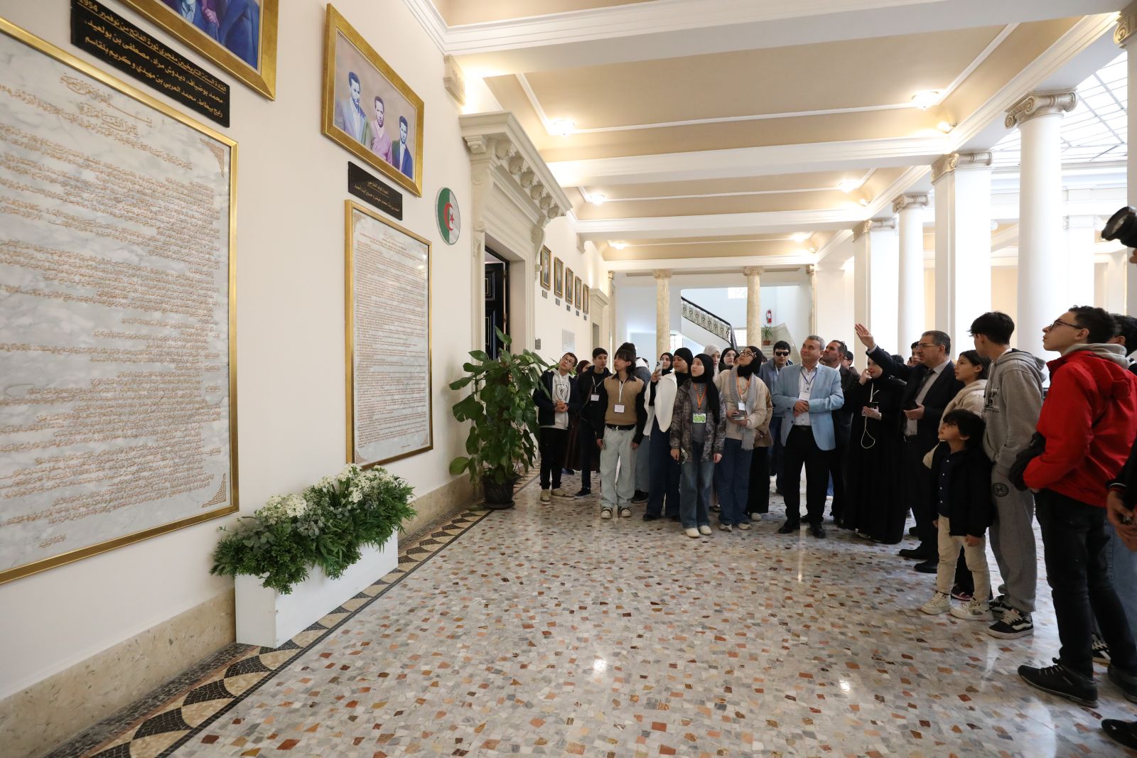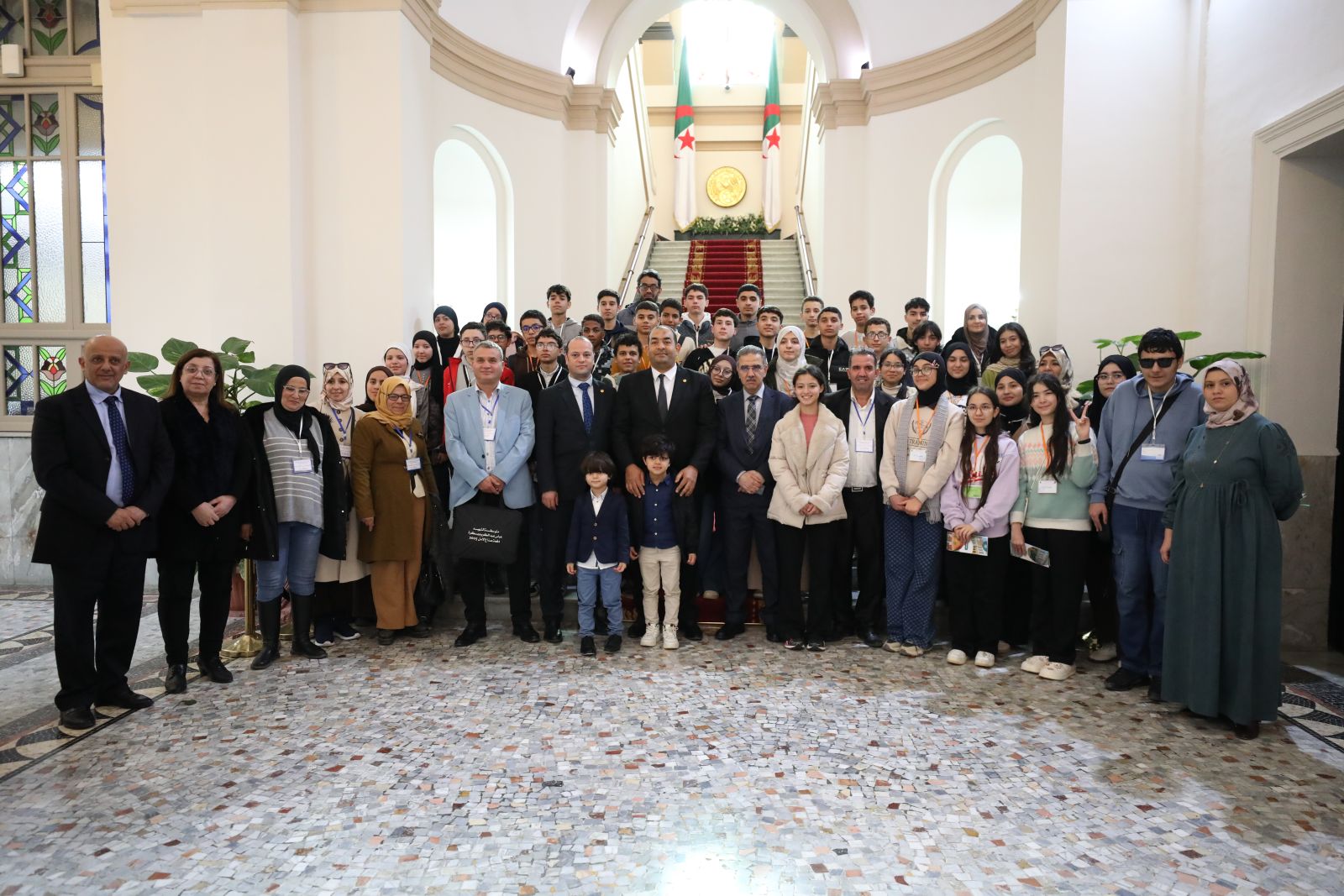 مجموعة من تلاميذ متوسطة الشهيد عباس عبد الكريم، وثانوية قروف محمد بن بلقاسم ولاية بسكرة، في زيارة إلى مقر مجلس الأمة