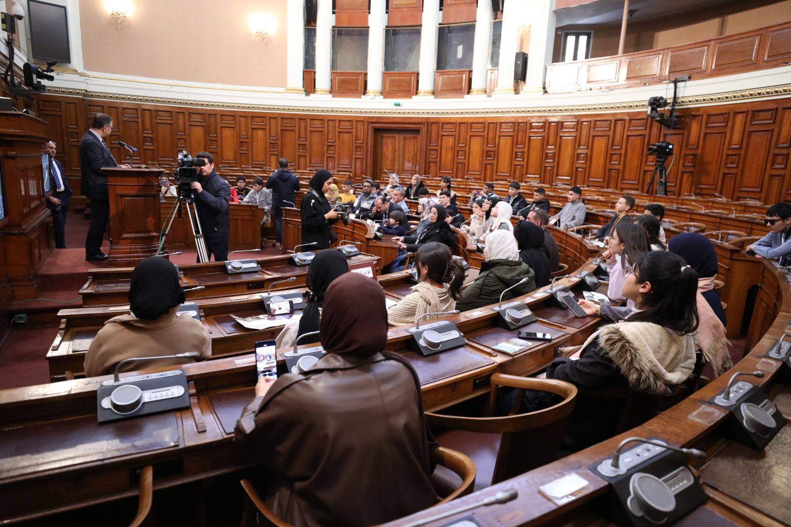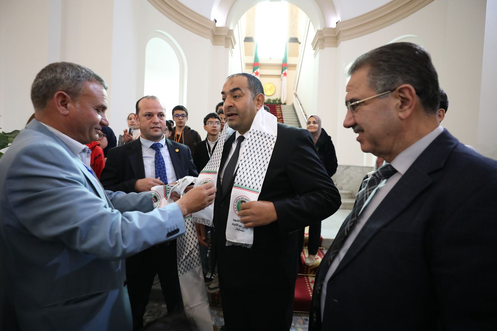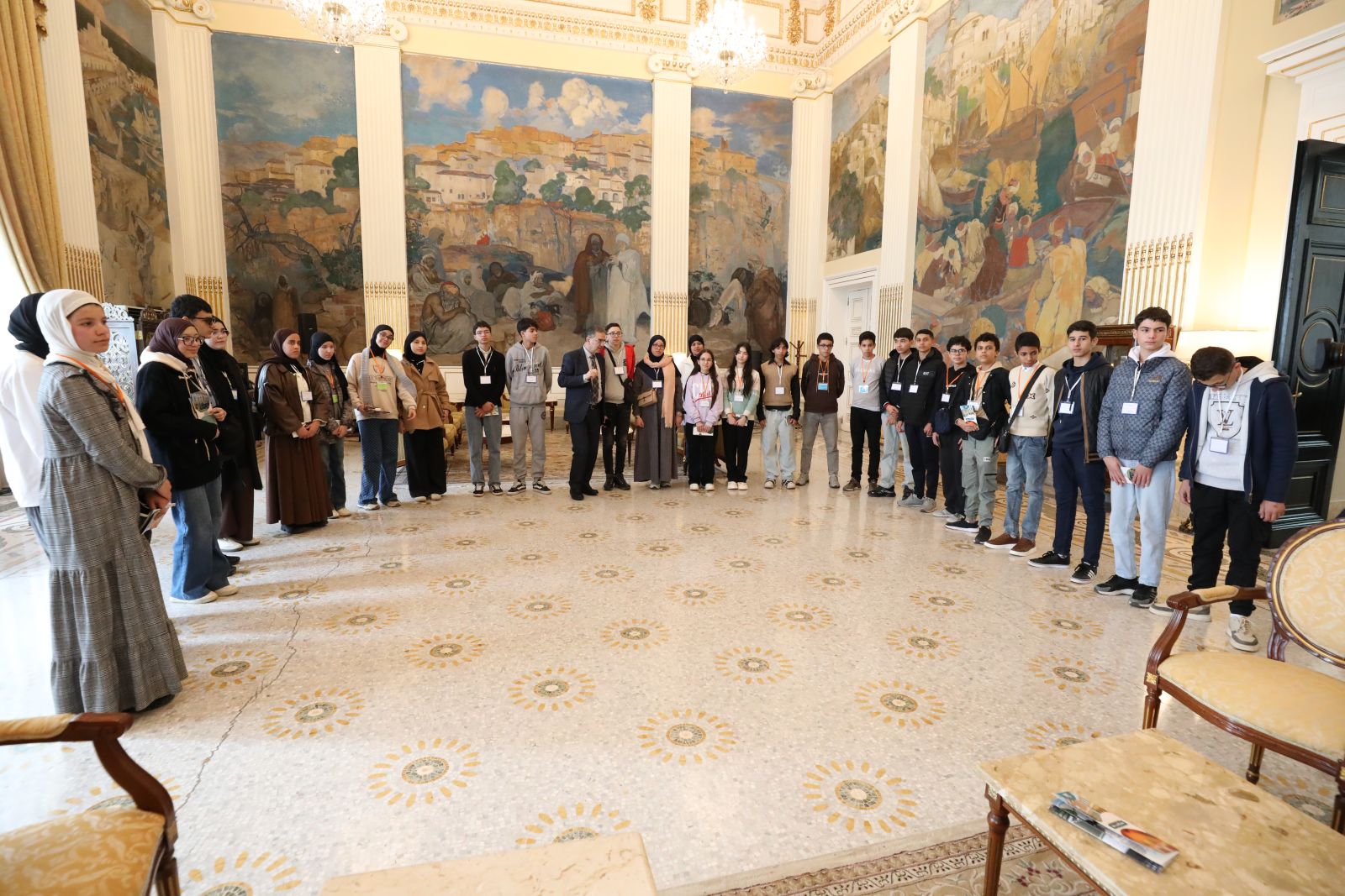 مجموعة من تلاميذ متوسطة الشهيد عباس عبد الكريم، وثانوية قروف محمد بن بلقاسم ولاية بسكرة، في زيارة إلى مقر مجلس الأمة