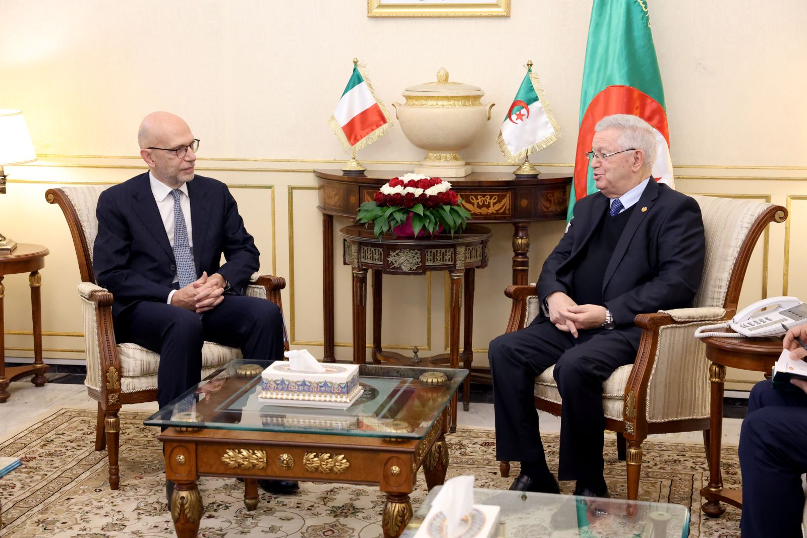 في خاتمة اللقاء، أكد الجانبان على ضرورة مواصلة ترقية الحوار والتشاور المنتظم على مختلف المستويات، وتعزيز التنسيق البرلماني بين الجزائر وإيطاليا، بما يكفل إضفاء بعدٍ برلماني مؤسساتي أعمق على العلاقات الثنائية، ويُرسّخ الشراكة الجزائرية – الإيطالية كنموذج متقدّم للتعاون المتوسطي القائم على الثقة المتبادلة، والاحترام المشترك، وتلاقي الرؤى من أجل بناء فضاء إقليمي أكثر استقرارًا وازدهارًا.