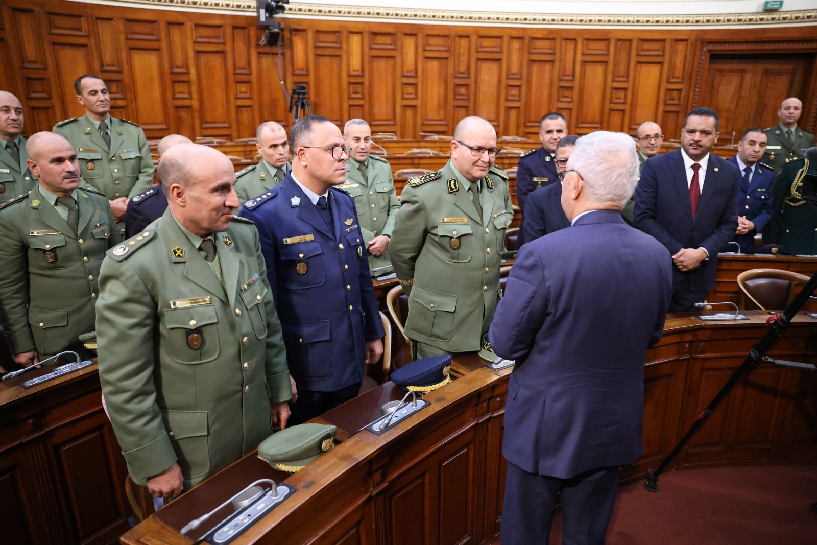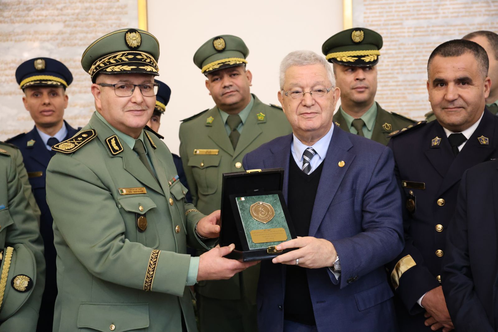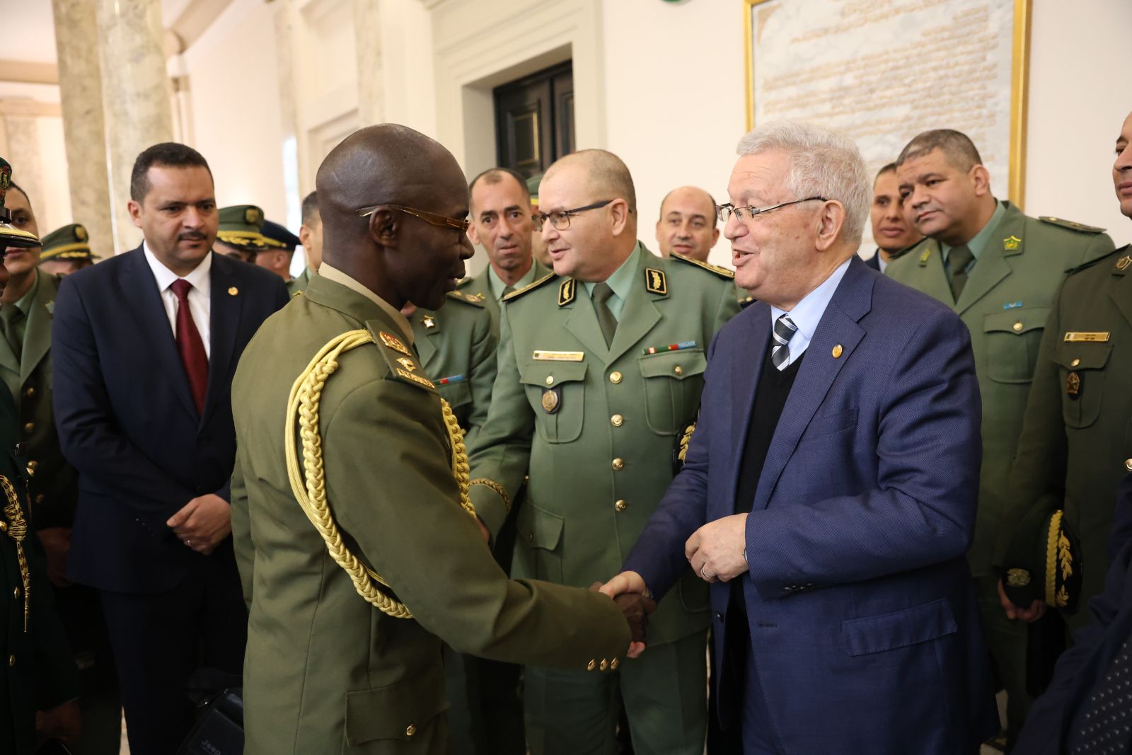 السيد عزوز ناصري، رئيس مجلس الأمة يستقبل وفدا من ضباط سامين مؤطرين وضباط سامين من بينهم أجانب متربصين بالمدرسة العليا الحربية بالناحية العسكرية الأولى