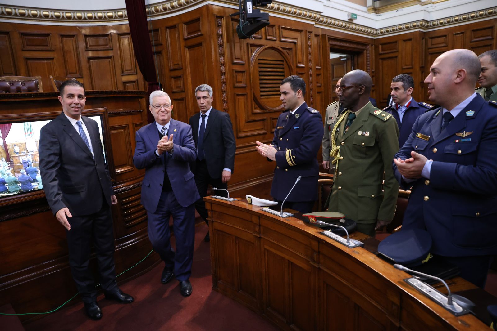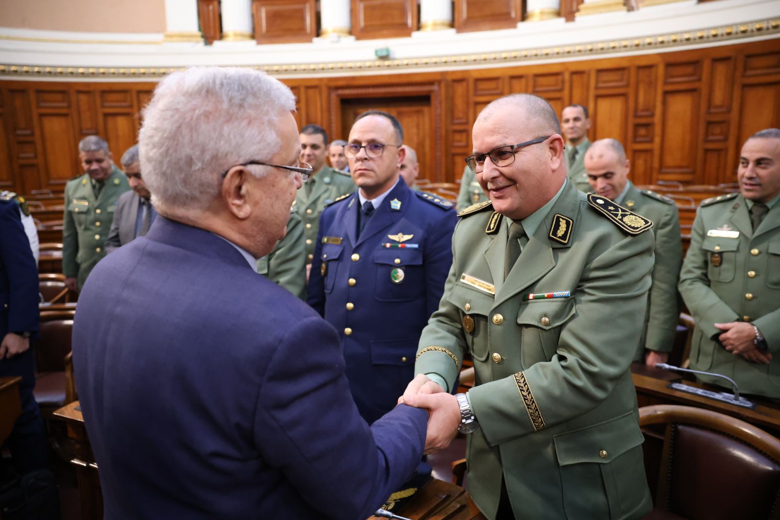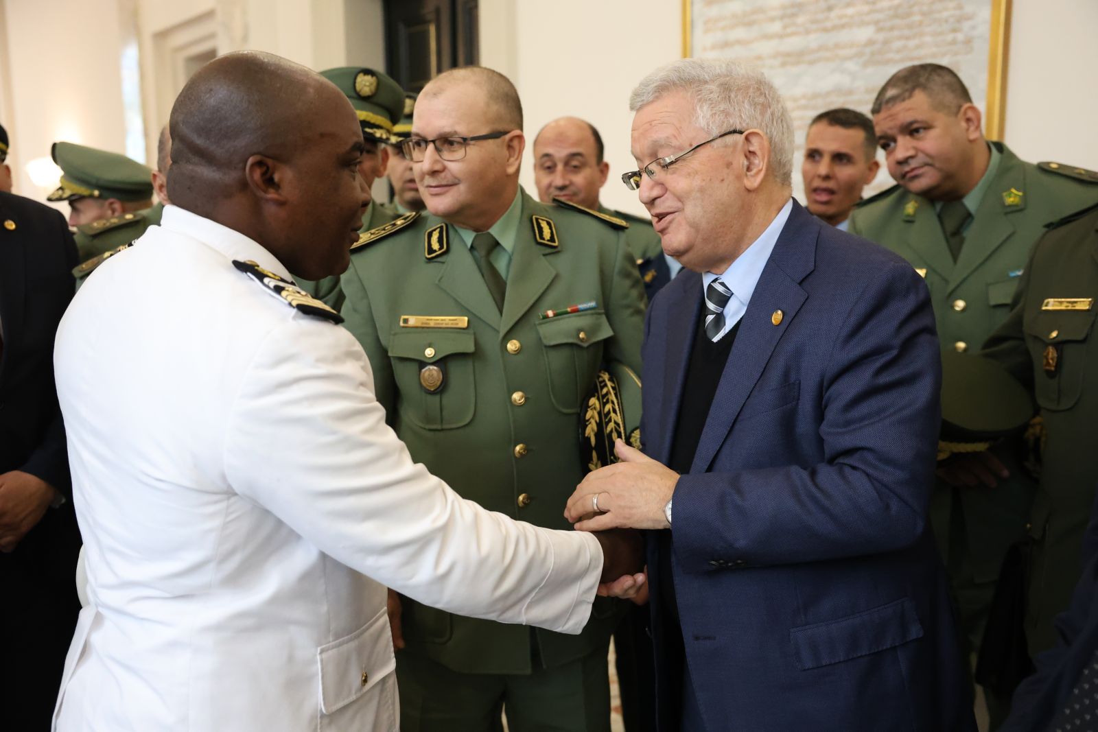 السيد عزوز ناصري، رئيس مجلس الأمة يستقبل وفدا من ضباط سامين مؤطرين وضباط سامين من بينهم أجانب متربصين بالمدرسة العليا الحربية بالناحية العسكرية الأولى