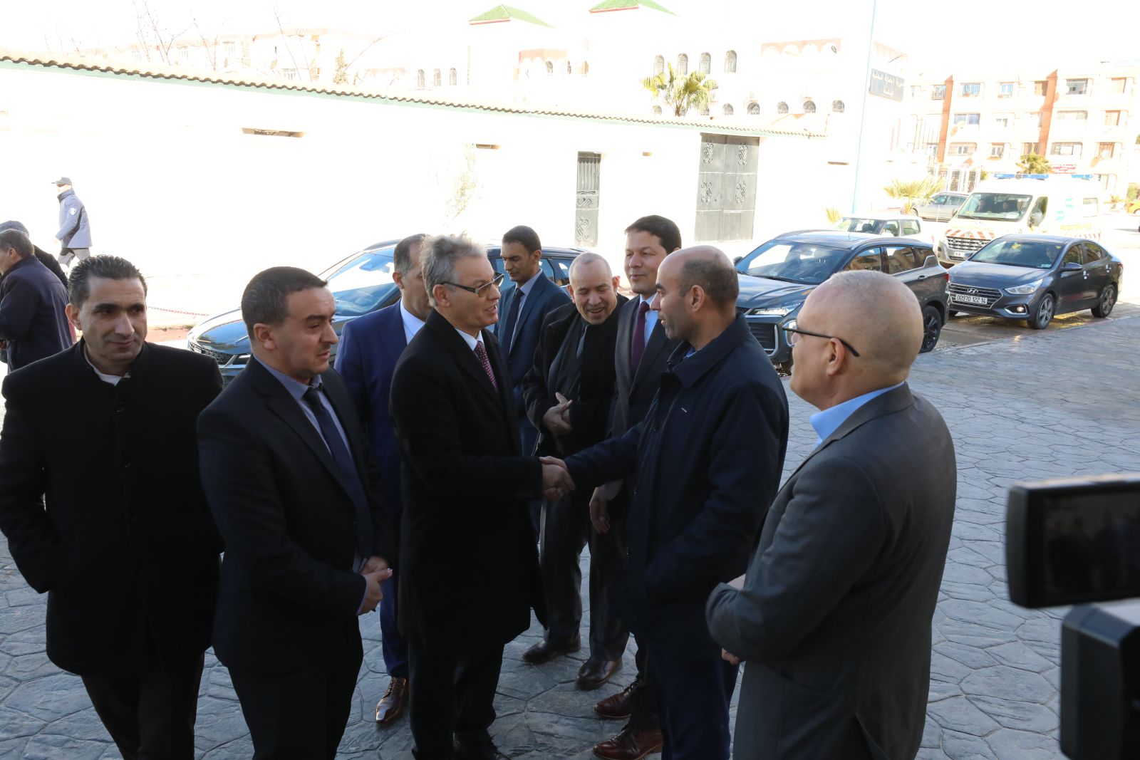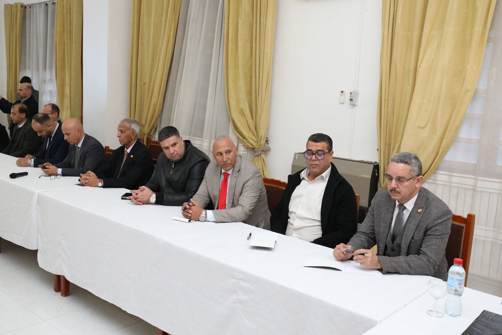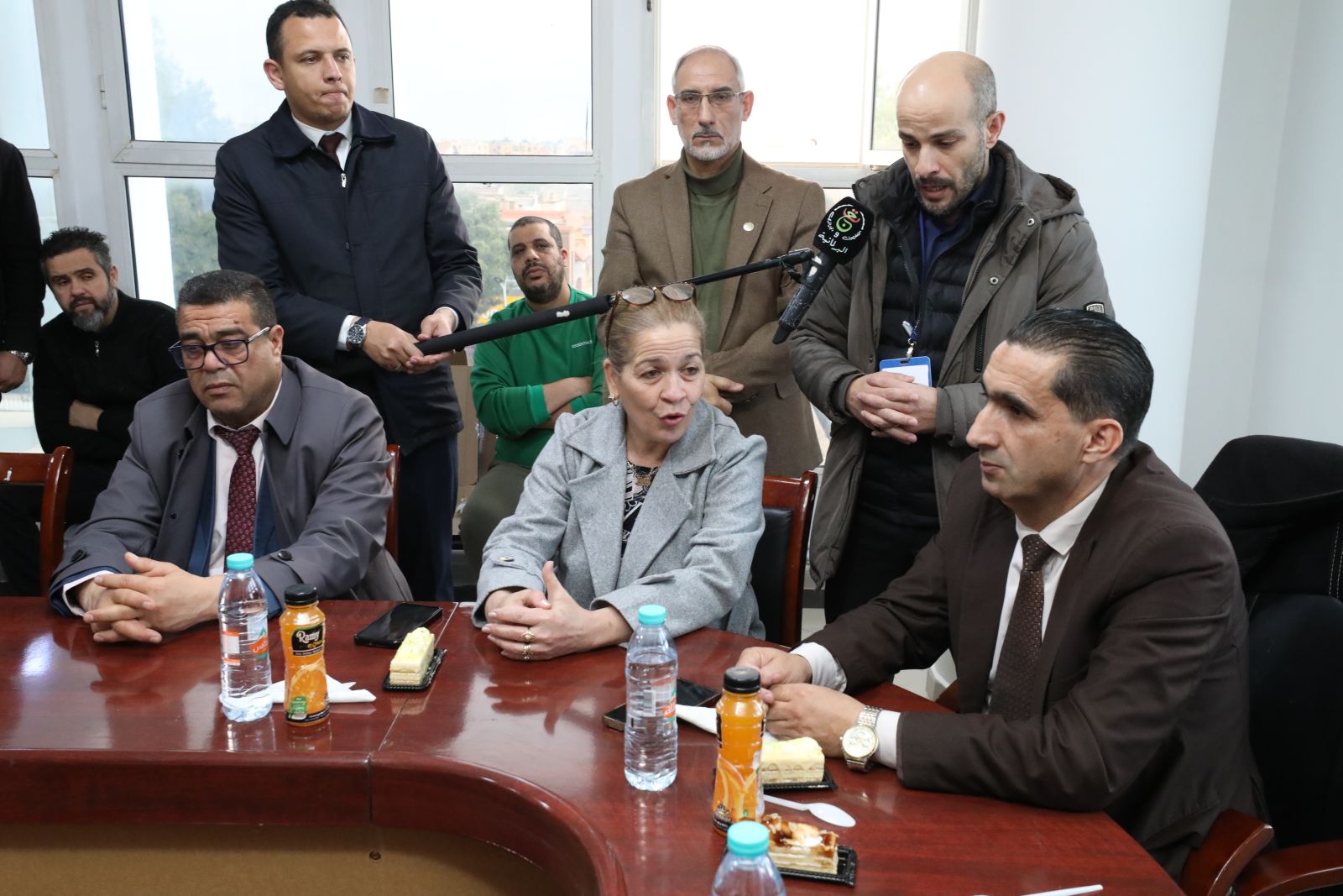 وعقب مراسم الاستقبال، عُقدت جلسة عمل موسعة بحضور أعضاء الوفد ومديري القطاعات المعنية، خُصصت لتقديم عروض مفصلة حول قطاعات الصحة والعمل والتضامن الوطني. وتضمنت العروض معطيات إحصائية دقيقة تتعلق بعدد الهياكل الصحية والاجتماعية، نسب التأطير الطبي وشبه الطبي، قدرات الاستيعاب، البرامج التنموية المسجلة، نسب تقدم المشاريع، إضافة إلى عرض موضوعي للصعوبات المسجلة ميدانيًا.