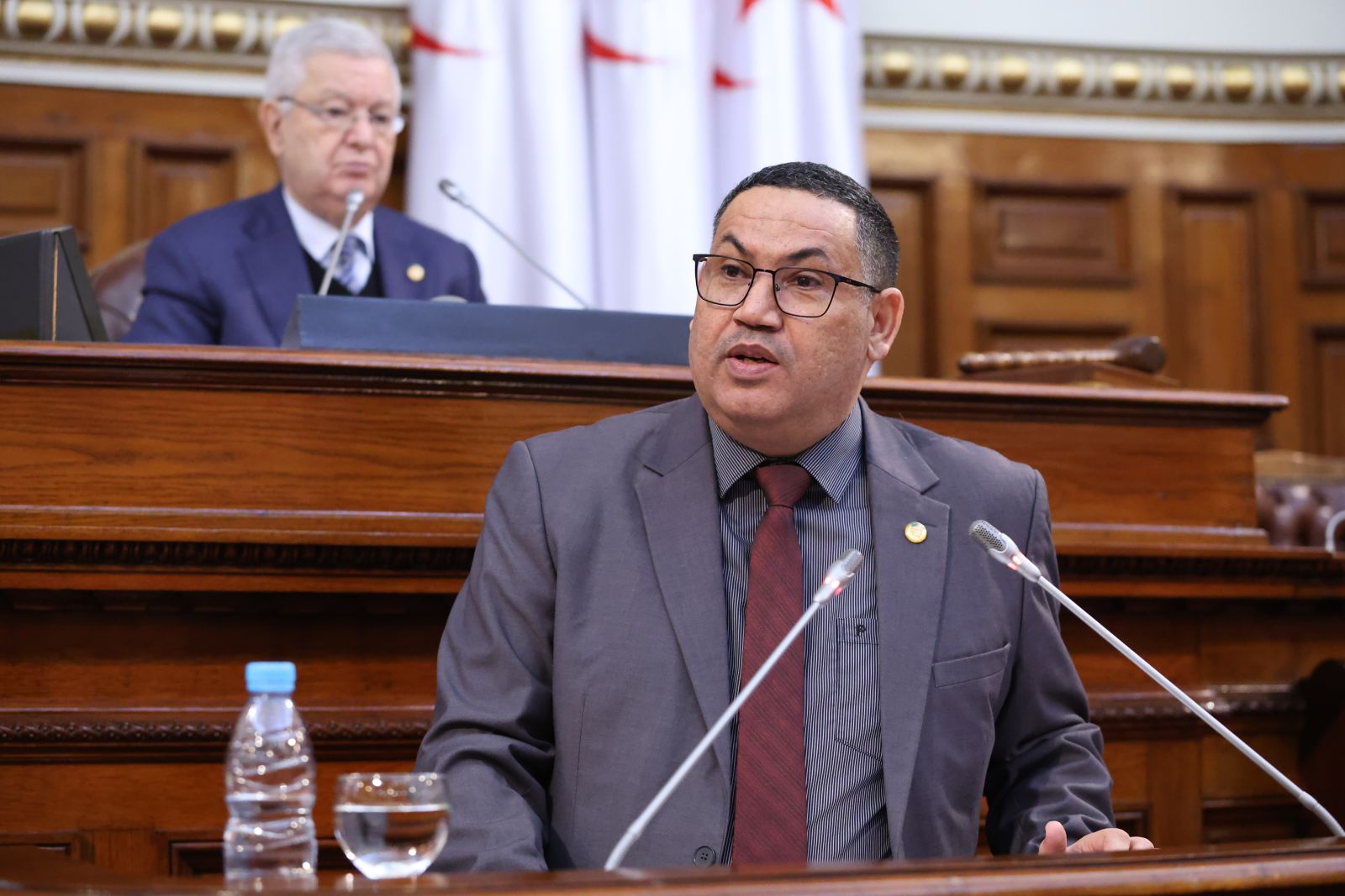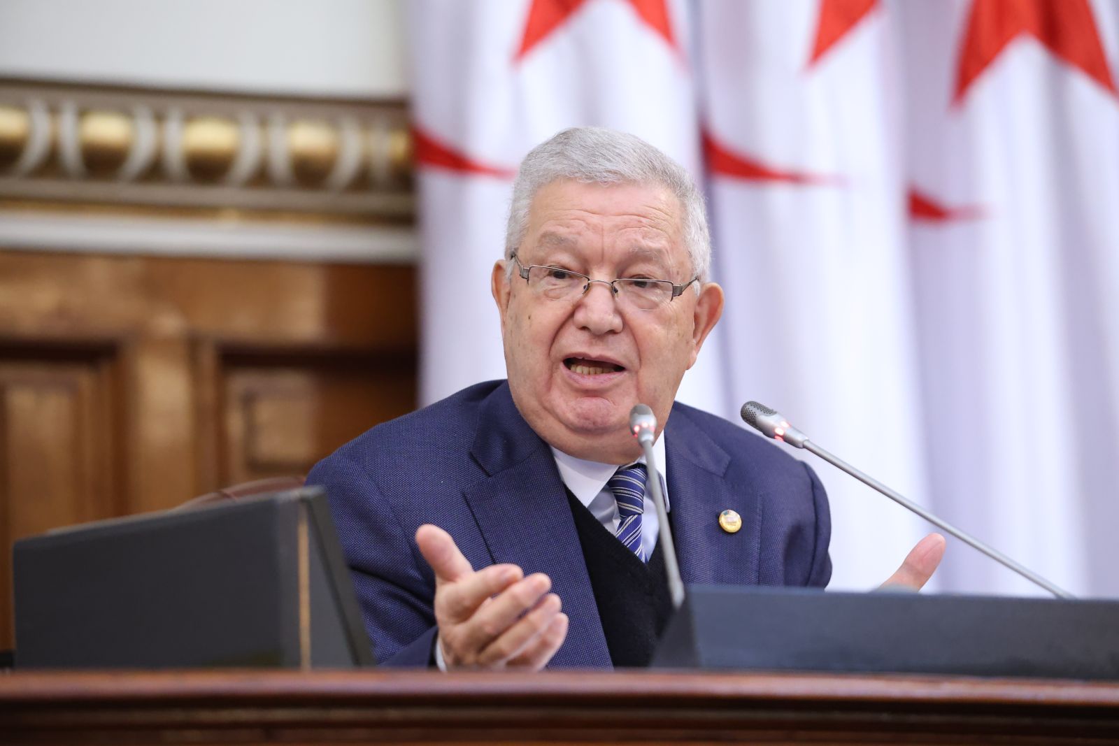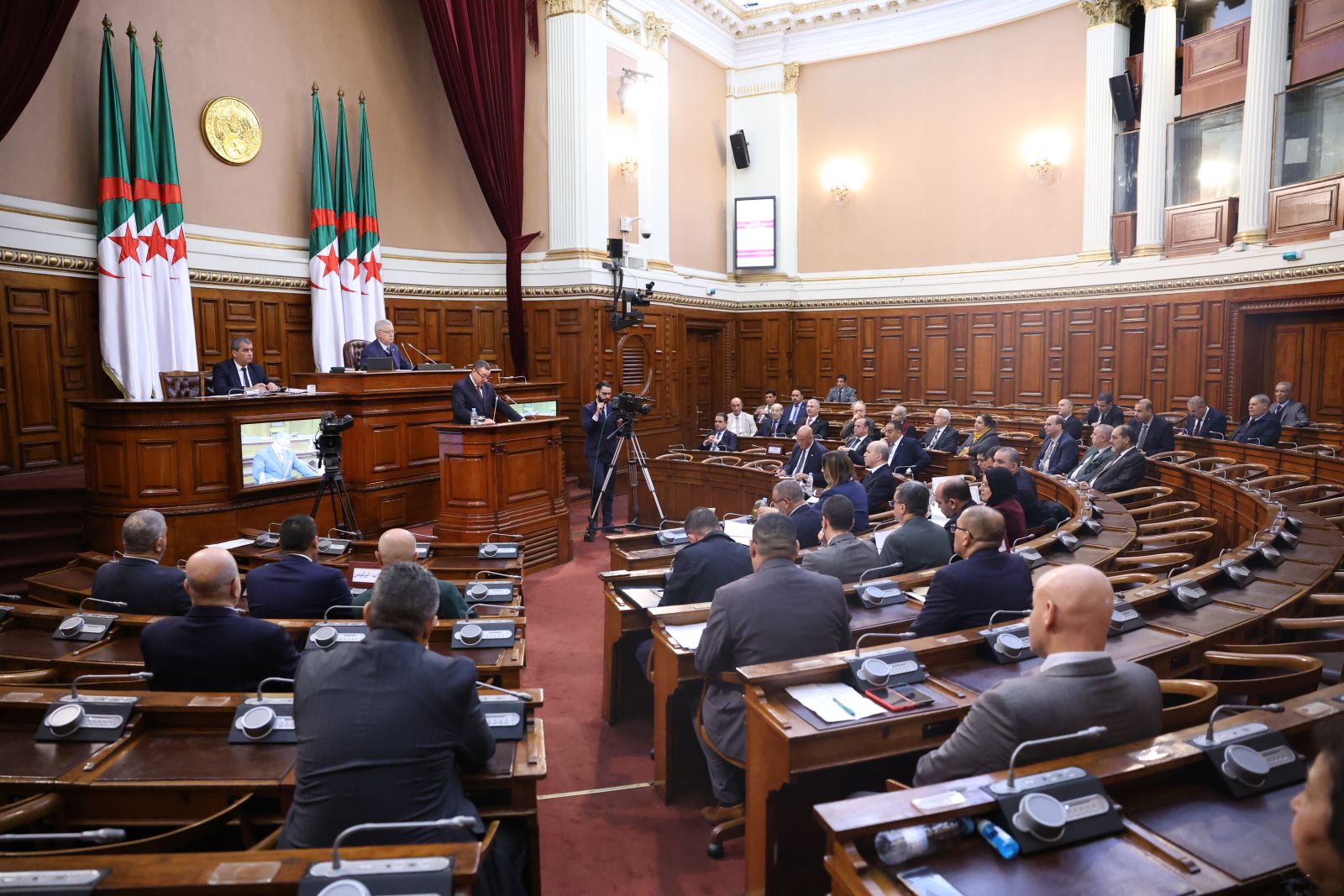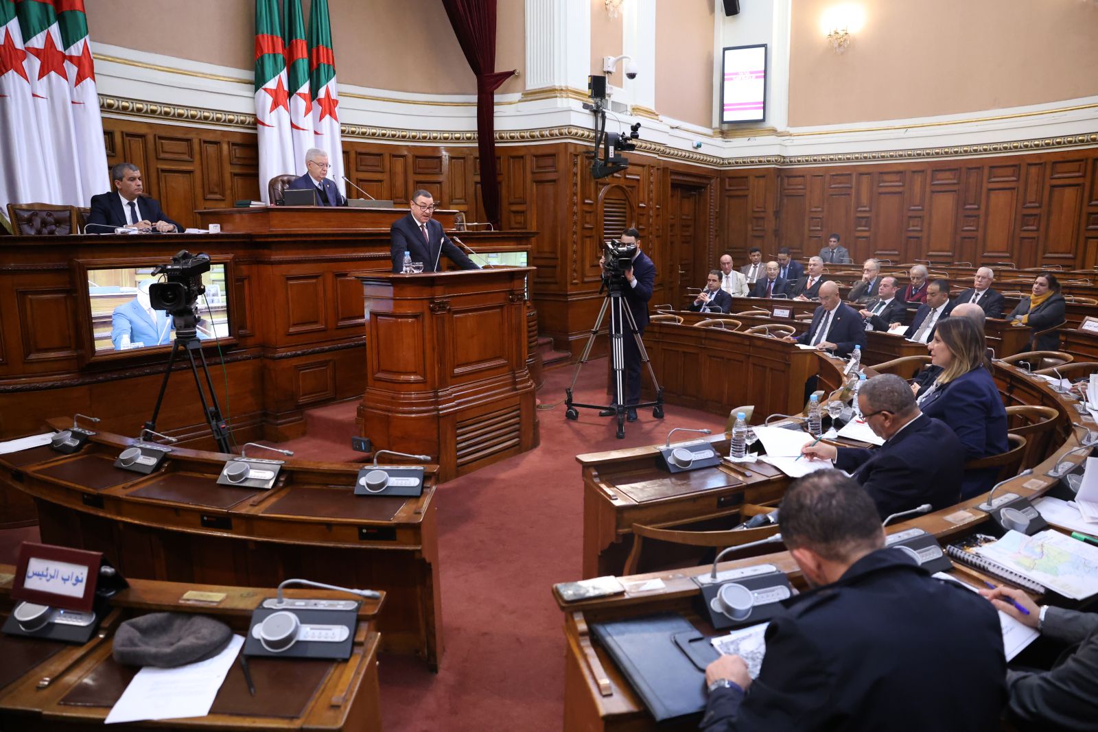 ترأّس السيد عزوز ناصري، رئيس مجلس الأمة، صبيحة اليوم الخميس 05 فيفري 2026، جلسة عامة، خُصصت لتوجيه تسعة (09) أسئلة شفوية إلى ثلاثة (3) أعضاء في الحكومة، تخصّ قطاعات: الداخلية والجماعات المحلية والنقل، الأشغال العمومية والمنشآت القاعدية، والعمل والتشغيل والضمان الاجتماعي، وذلك بحضور وزراء القطاعات المعنية ممثلين في السادة : السعيد سعيود، وزير الداخلية والجماعات المحلية والنقل، وعبد القادر جلاوي، وزير الأشغال العمومية والمنشآت القاعدية، وعبد الحق سايحي، وزير العمل والتشغيل والضمان الاجتماعي، وكذا السيدة نجيبة جيلالي، وزيرة العلاقات مع البرلمان؛ وقد جاءت الأسئلة الموجّهة من السادة أعضاء المجلس، على النحو التالي: