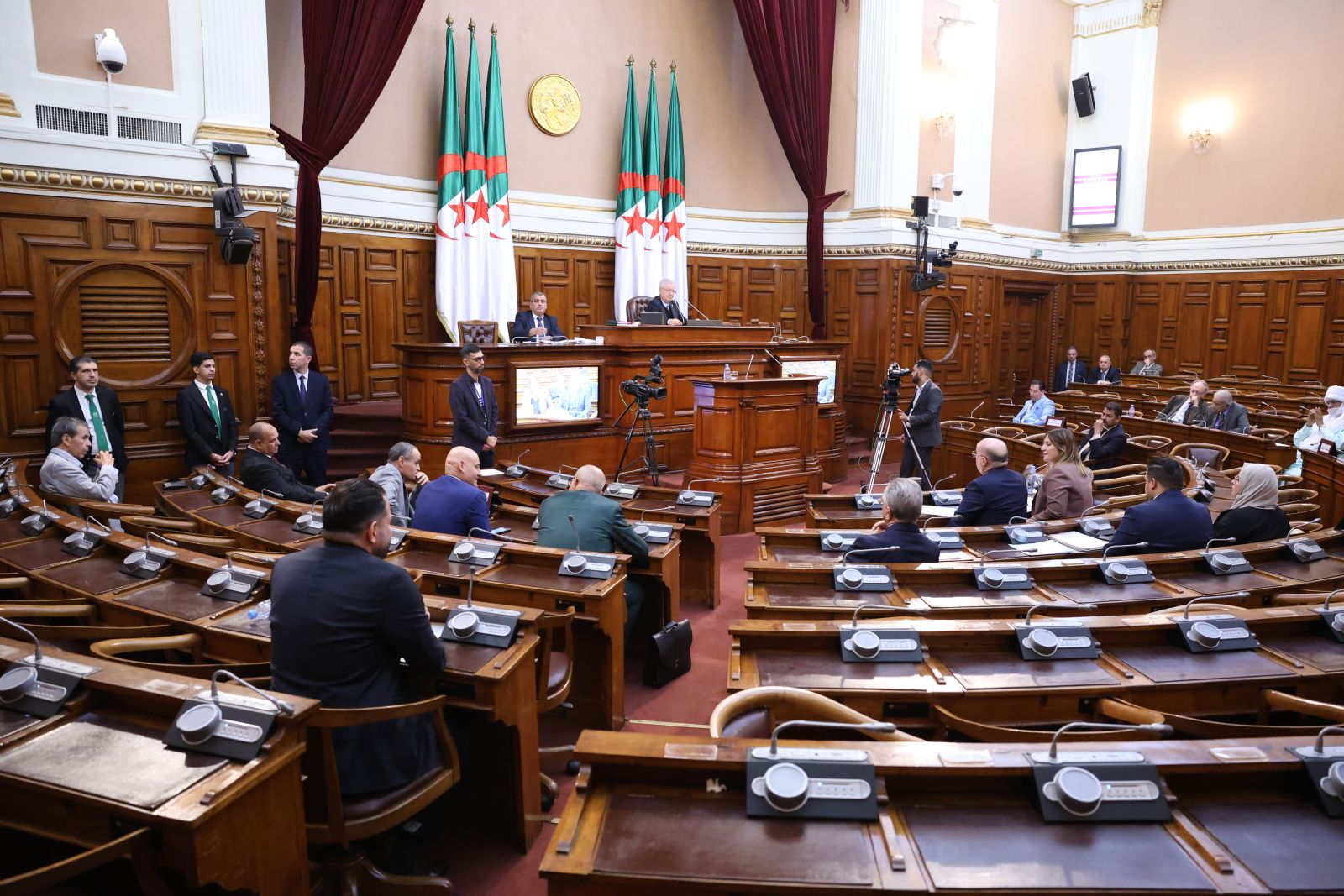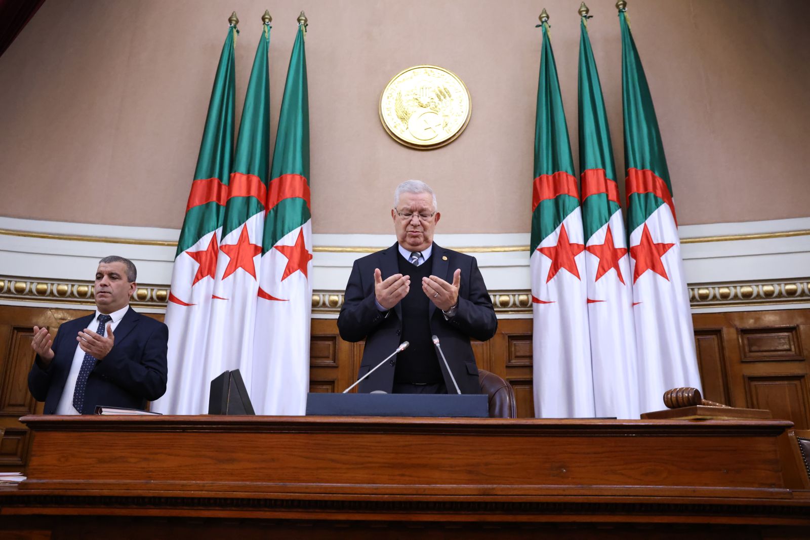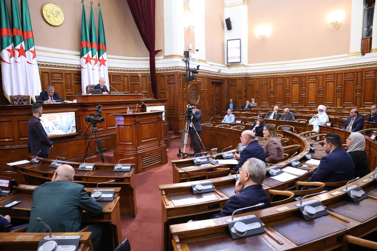 ترأّس السيد عزوز ناصري، رئيس مجلس الأمة، الجلسة العامة التي عقدها مجلس الأمة، صبيحة اليوم الخميس 11 ديسمبر 2025، والتي خُصصت لتوجيه ستة (06) أسئلة شفوية إلى عضوين (2) في الحكومة، تخصّ قطاعات: الصحة، والشؤون الدينية والأوقاف، وذلك بحضور وزراء القطاعات المعنية ممثلين في السّادة محمد الصديق آيت مسعودان، وزير الصحة، يوسف بلمهدي، وزير الشؤون الدينية والأوقاف، وكذا السيدة نجيبة جيلالي، وزيرة العلاقات مع البرلمان؛ وقد جاءت الأسئلة الموجّهة من السادة أعضاء المجلس، كما يلي: