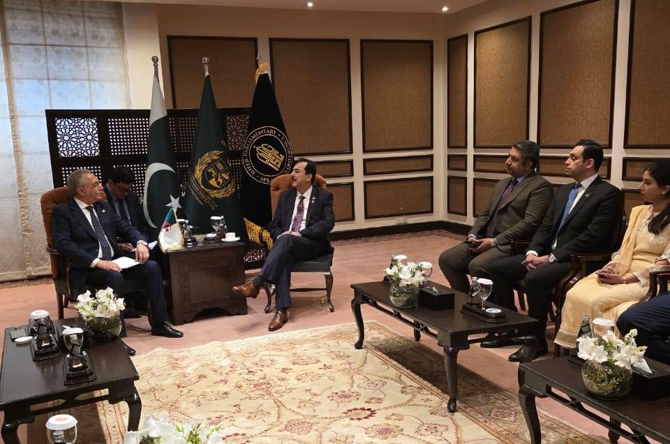 يواصل موفد مجلس الأمة السيد ساعد عروس، رئيس المجموعة البرلمانية للثلث الرئاسي بمجلس الأمة، ممثلاً للسيد عزوز ناصري، رئيس مجلس الأمة، مشاركاته في أشغال المؤتمر البرلماني الدولي لرؤساء المجالس، المنعقد بالعاصمة الباكستانية إسلام أباد، وقد استقبل اليوم الأربعاء 12 نوفمبر 2025, من طرف السيد يوسف رضا جيلاني، رئيس مجلس الشيوخ لجمهورية باكستان الإسلامية.