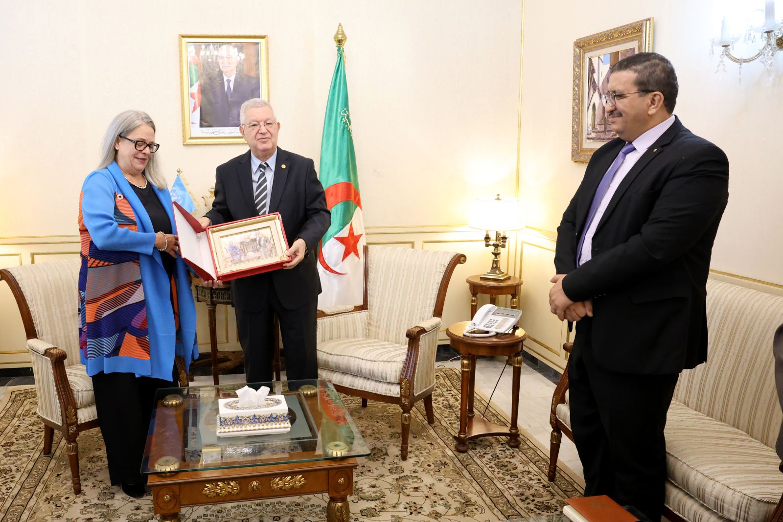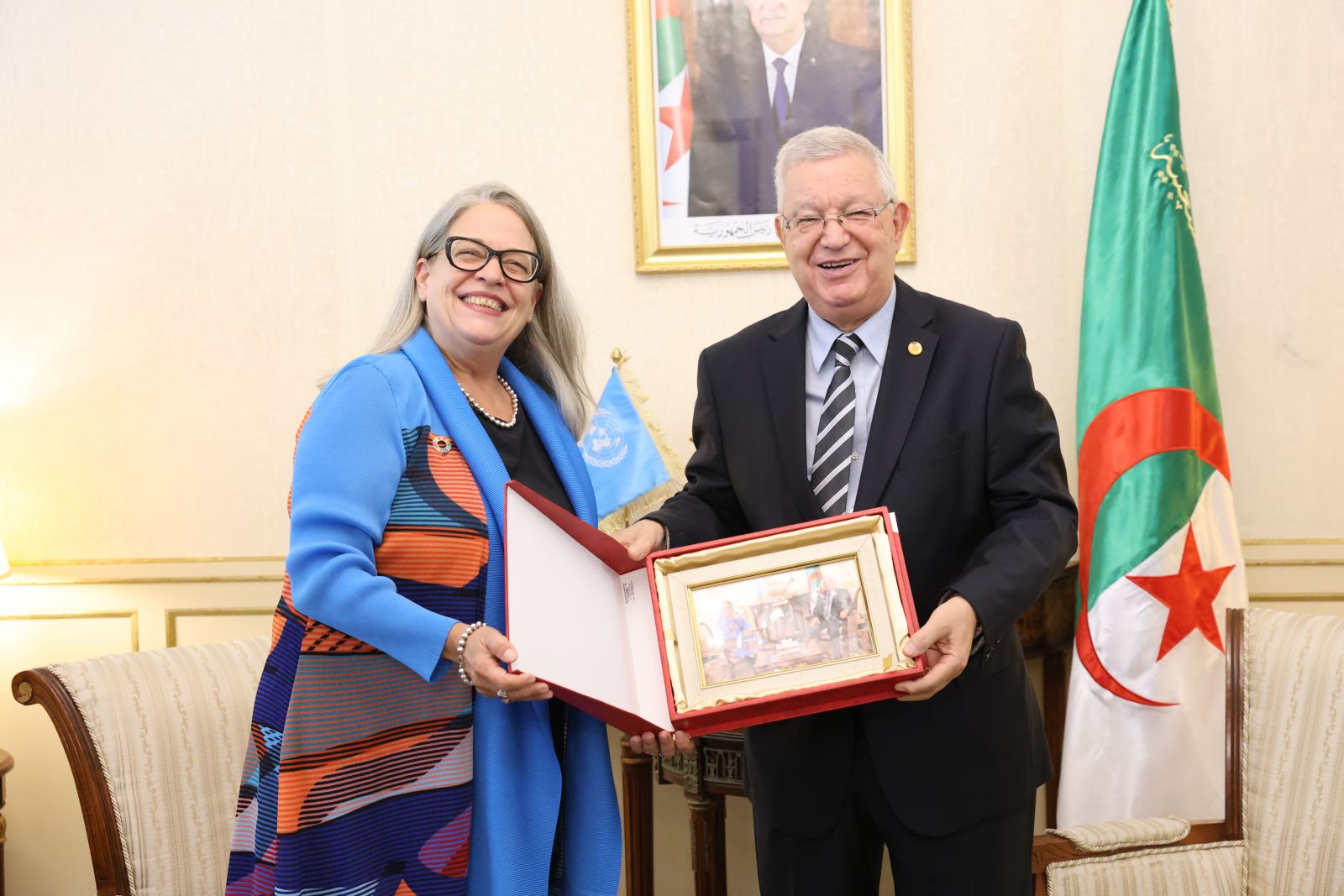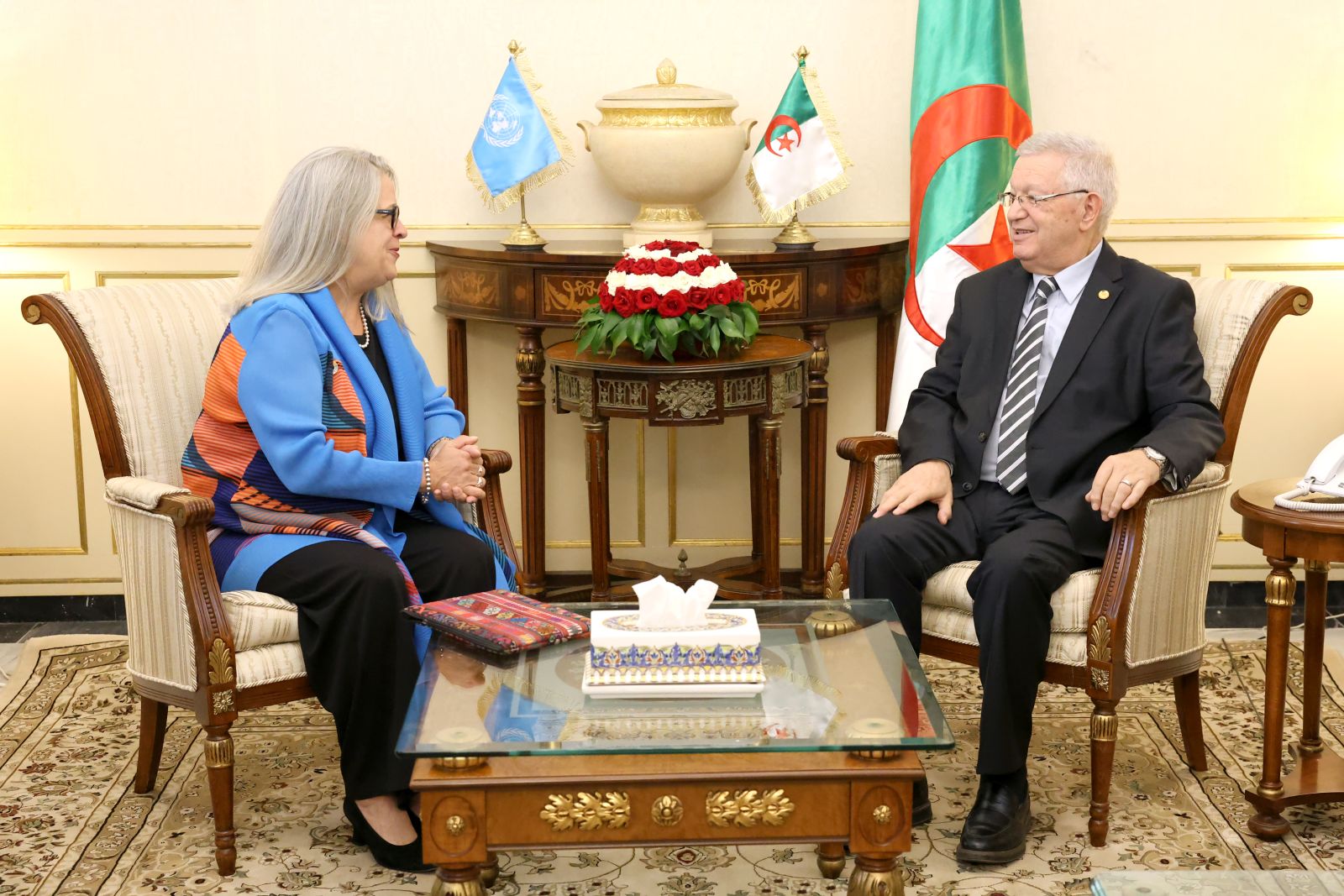 السيد عزوز ناصري، رئيس مجلس الأمة، يستقبل السيدة سافينا كلوديا أماصاري، السفيرة المنسقة المقيمة لمنظمة الأمم المتحدة بالجزائر