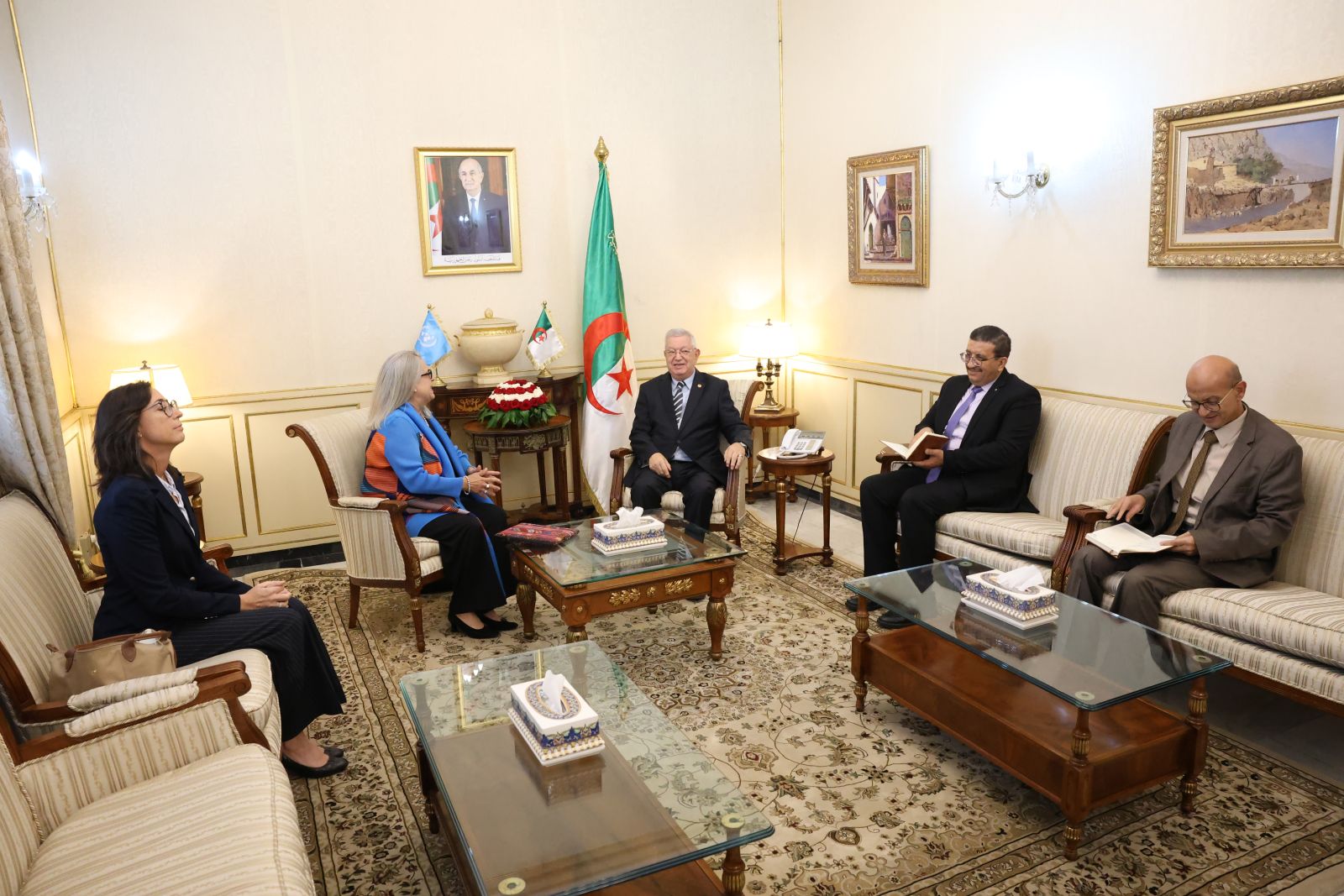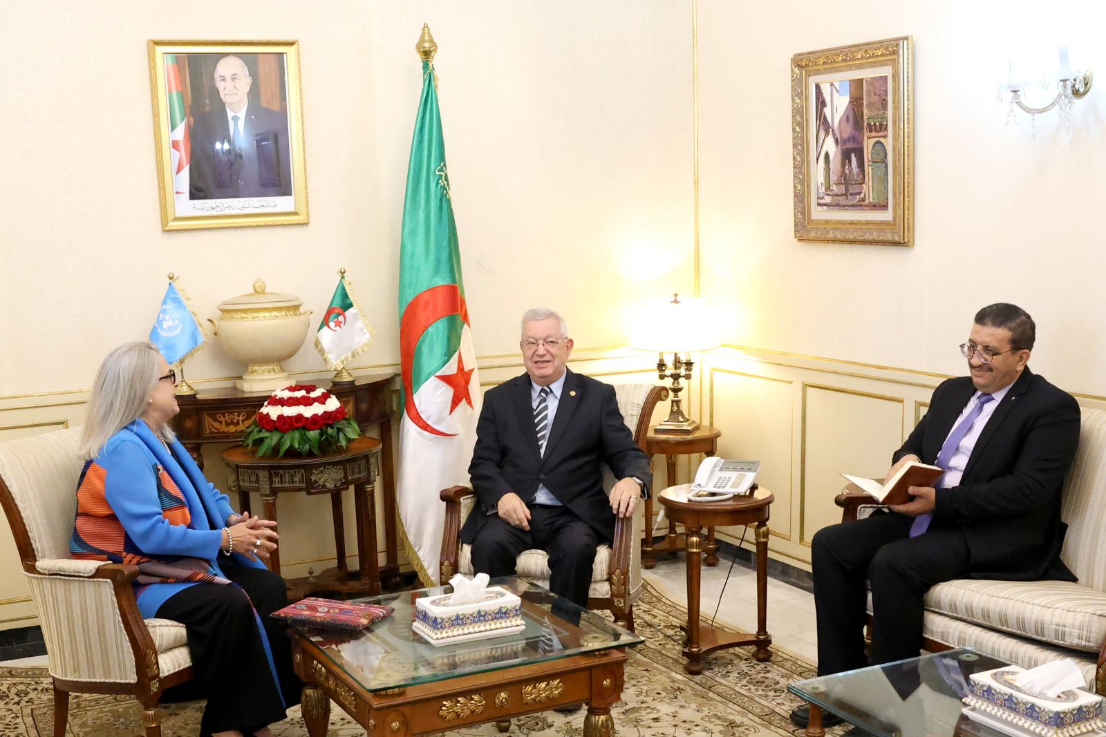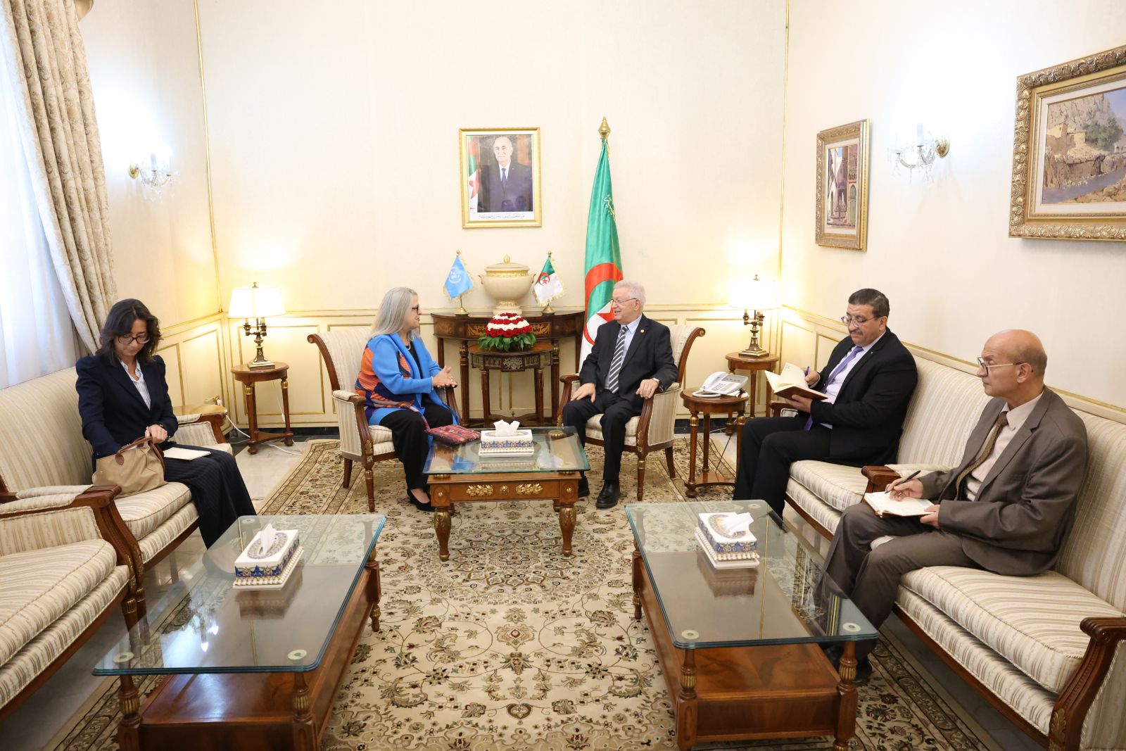 السيد عزوز ناصري، رئيس مجلس الأمة، يستقبل السيدة سافينا كلوديا أماصاري، السفيرة المنسقة المقيمة لمنظمة الأمم المتحدة بالجزائر