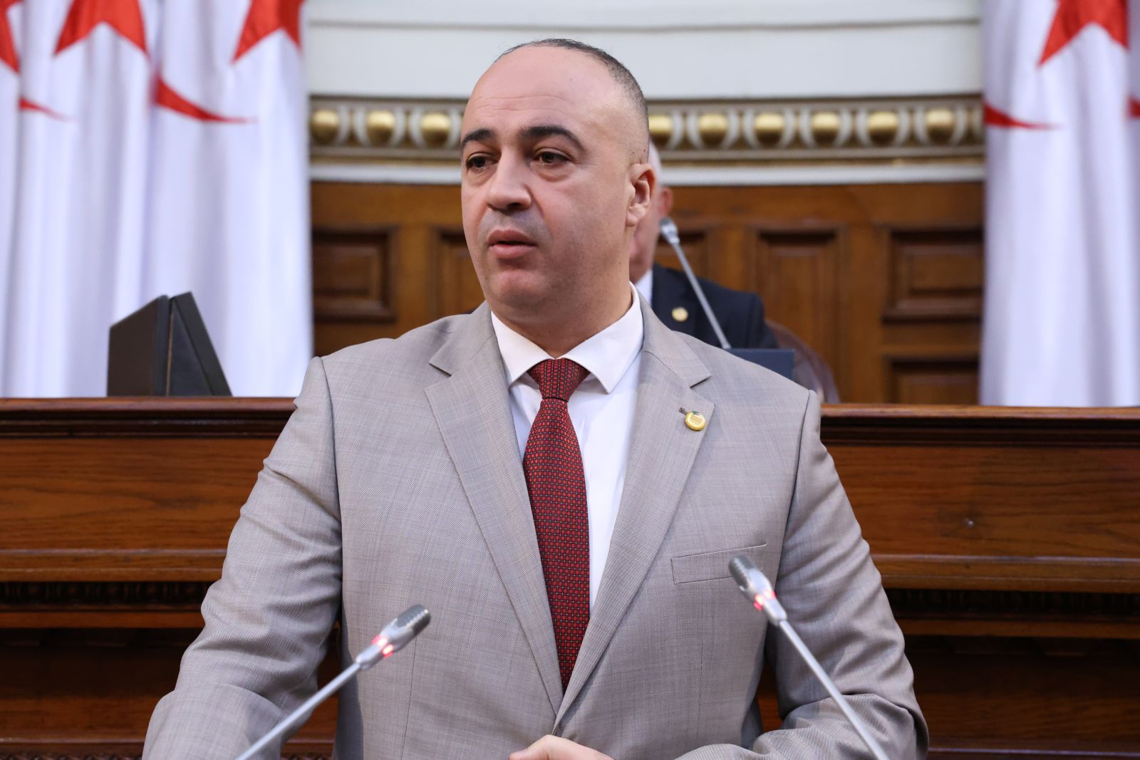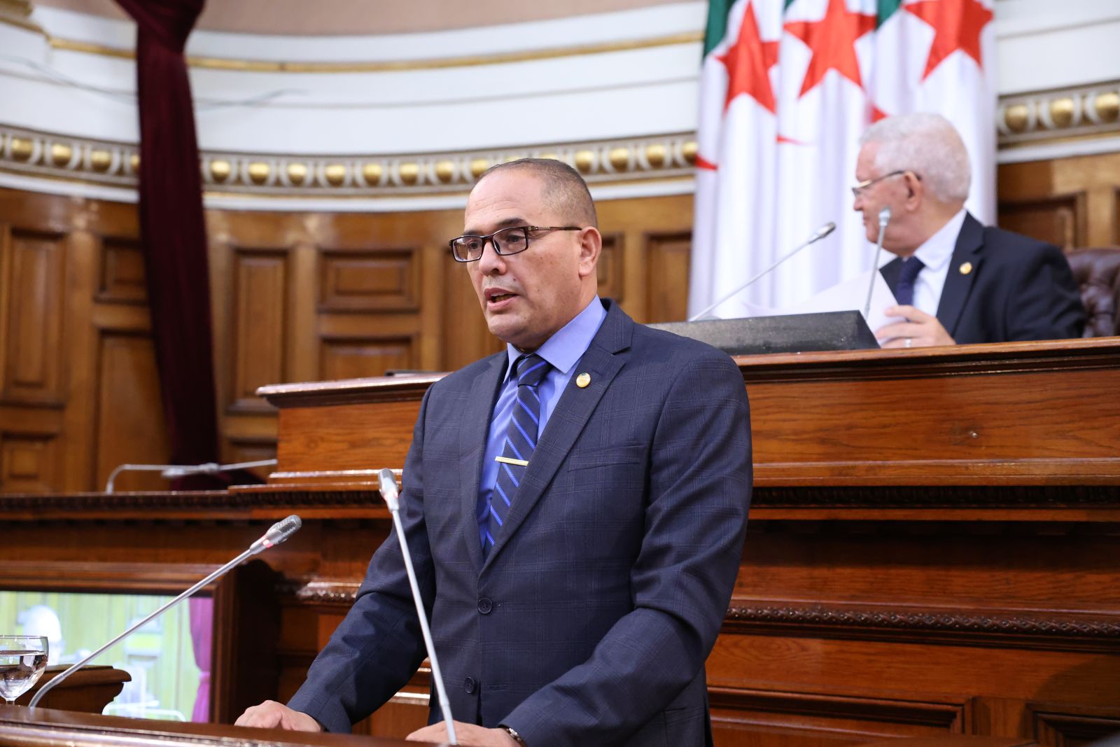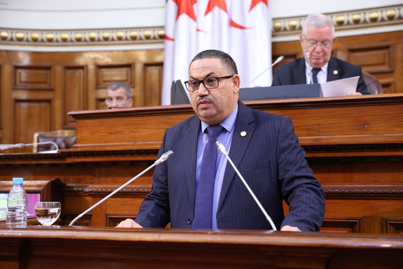 ترأّس السيد عزوز ناصري، رئيس مجلس الأمة، الجلسة العامة التي عقدها المجلس، صبيحة اليوم الخميس 13 نوفمبر 2025، والتي خُصصت لتوجيه خمسة عشر (15) سؤالاً شفوياً إلى خمسة (5) أعضاء في الحكومة، تخصّ قطاعات: الداخلية والجماعات المحلية والنقل، الصحة، المجاهدين وذوي الحقوق، الصناعة، والسياحة والصناعة التقليدية، وذلك بحضور وزراء القطاعات المعنية ممثلين في السيدة والسّادة، السعيد سعيود، وزير الداخلية والجماعات المحلية والنقل، محمد الصديق آيت مسعودان، وزير الصحة، عبد المالك تاشريفت، وزير المجاهدين وذوي الحقوق، يحيى بشير، وزير الصناعة، حورية مداحي، وزيرة السياحة والصناعة التقليدية، وكذا السيدة نجيبة جيلالي، وزيرة العلاقات مع البرلمان؛ وقد جاءت الأسئلة الموجّهة من السيدة والسادة أعضاء المجلس، على النحو التالي: